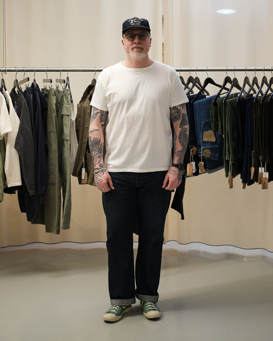 Fremstillet i Japan af premium slubby-bomuld indfanger Warehouse Lot 4601 T-shirts følelsen af ægte vintage. Med særlige samarbejder, som Yusuke Hanais artwork, forener hver tee klassisk konstruktion med tidløs karakter. Et basisstykke, der kombinerer komfort, arv og hverdagsbrugbarhed.