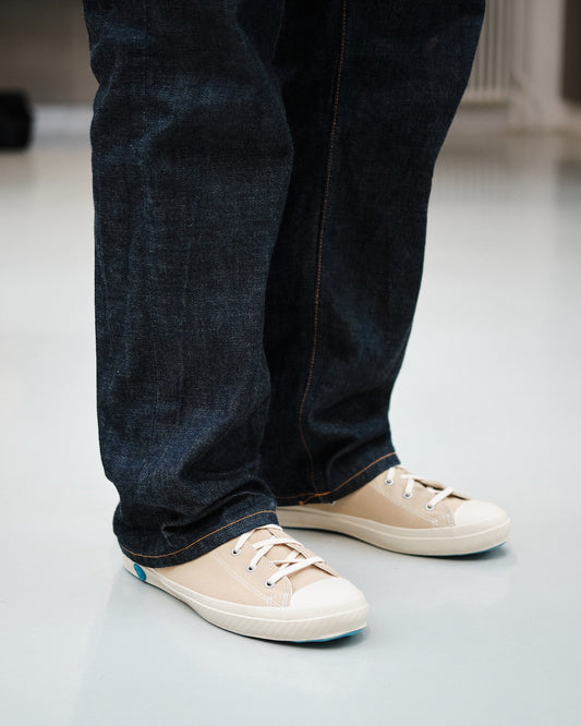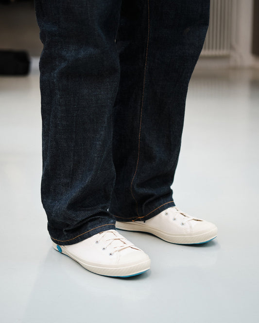 Mød SKO SOM POTTERI, et japansk fodtøjsmærke, der tager håndværk til næste niveau. Hvert par er omhyggeligt håndlavet i Kurume, Japan, ved brug af den unikke "Kiln-Firing" vulkaniseringsproces, hvilket giver gummisålen enestående holdbarhed og fleksibilitet. Med en minimalistisk æstetik, premium lærred og håndforseglede detaljer, ældes disse sneakers smukt over tid.