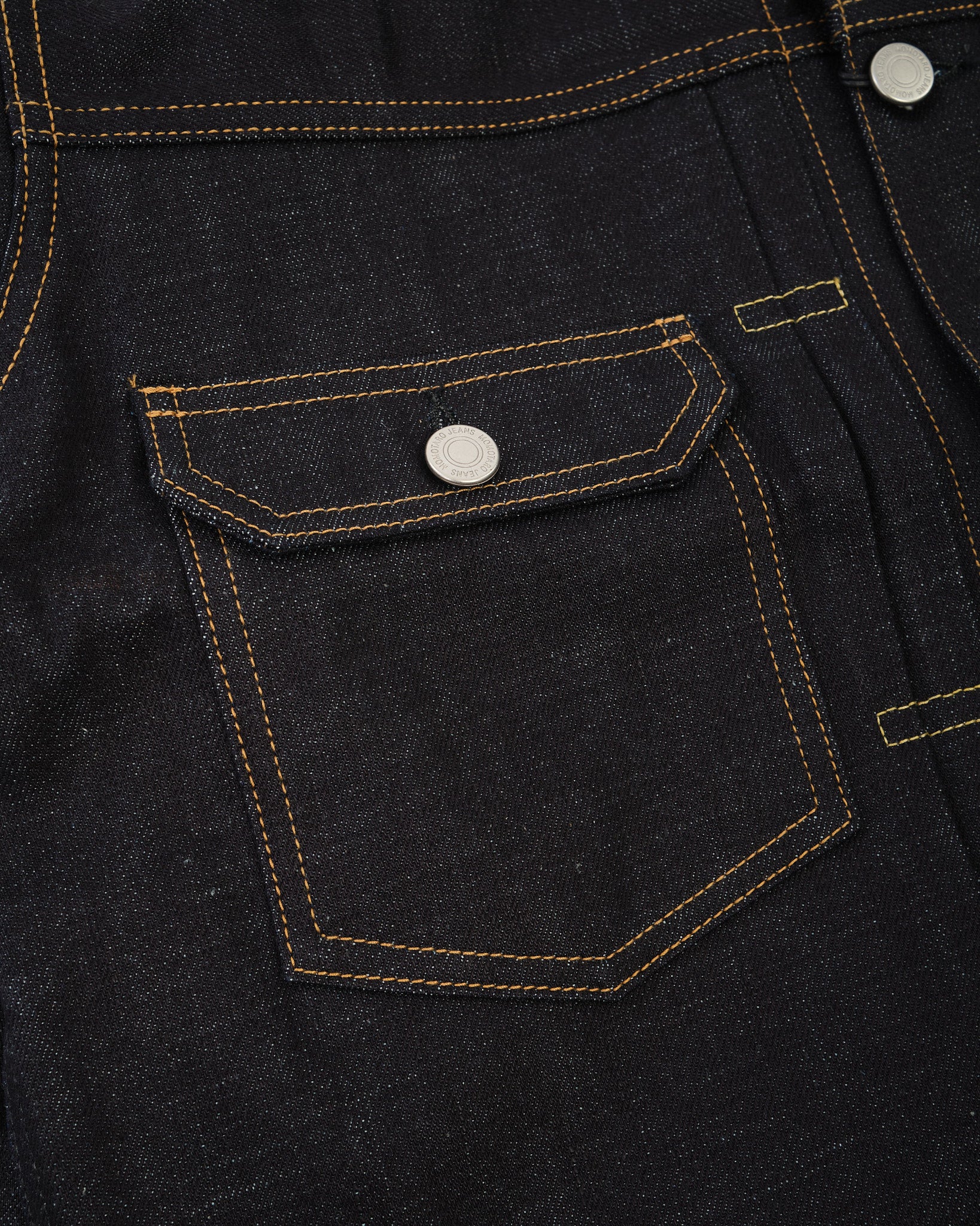 #002 Denimjakken i 14,7 oz Tokuno Blue fra Momotaro er en raffineret version af en klassisk silhuet, fremstillet af stift, uvasket denim vævet af 100% Zimbabwe bomuld. Farvet i mærkets signatur Tokuno Blue, tilbyder dette stof en slående dyb indigotone og twill tekstur, der vil udvikle sig smukt med brug. Pasformen er ren og afbalanceret, med en afslappet kropsbredde og moderat længde for komfort uden at være klodset. Funktionelle sidelommer forbedrer dagligdags nytteværdi, mens jakkens mønster er skræddersyet til yndefuld bevægelse og en skarp silhuet. Behandlet for at reducere krympning efter vask, tilbyder dette uvaskede stykke klassisk denimrenhed med en tankevækkende moderne opdatering.