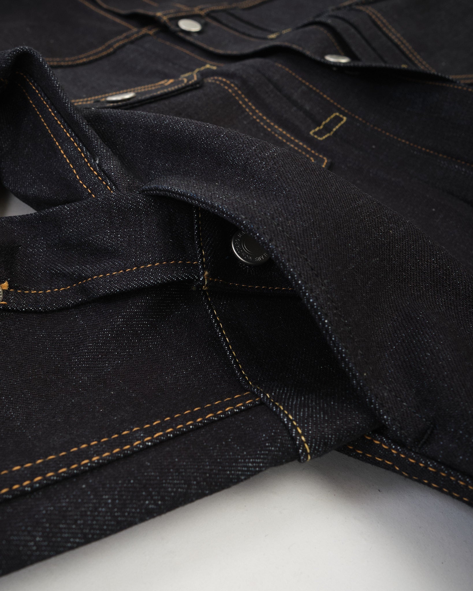 #002 Denimjakken i 14,7 oz Tokuno Blue fra Momotaro er en raffineret version af en klassisk silhuet, fremstillet af stift, uvasket denim vævet af 100% Zimbabwe bomuld. Farvet i mærkets signatur Tokuno Blue, tilbyder dette stof en slående dyb indigotone og twill tekstur, der vil udvikle sig smukt med brug. Pasformen er ren og afbalanceret, med en afslappet kropsbredde og moderat længde for komfort uden at være klodset. Funktionelle sidelommer forbedrer dagligdags nytteværdi, mens jakkens mønster er skræddersyet til yndefuld bevægelse og en skarp silhuet. Behandlet for at reducere krympning efter vask, tilbyder dette uvaskede stykke klassisk denimrenhed med en tankevækkende moderne opdatering.
