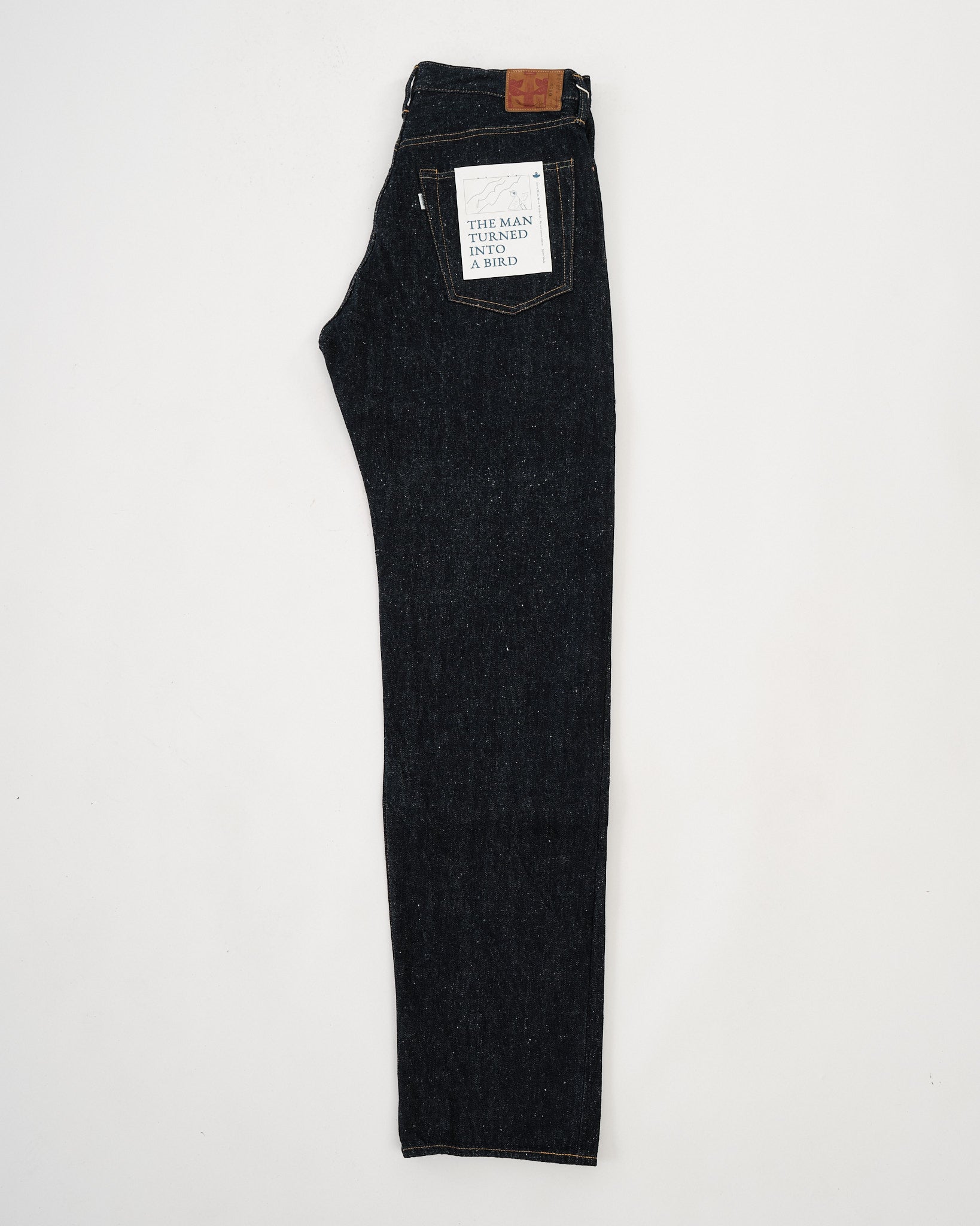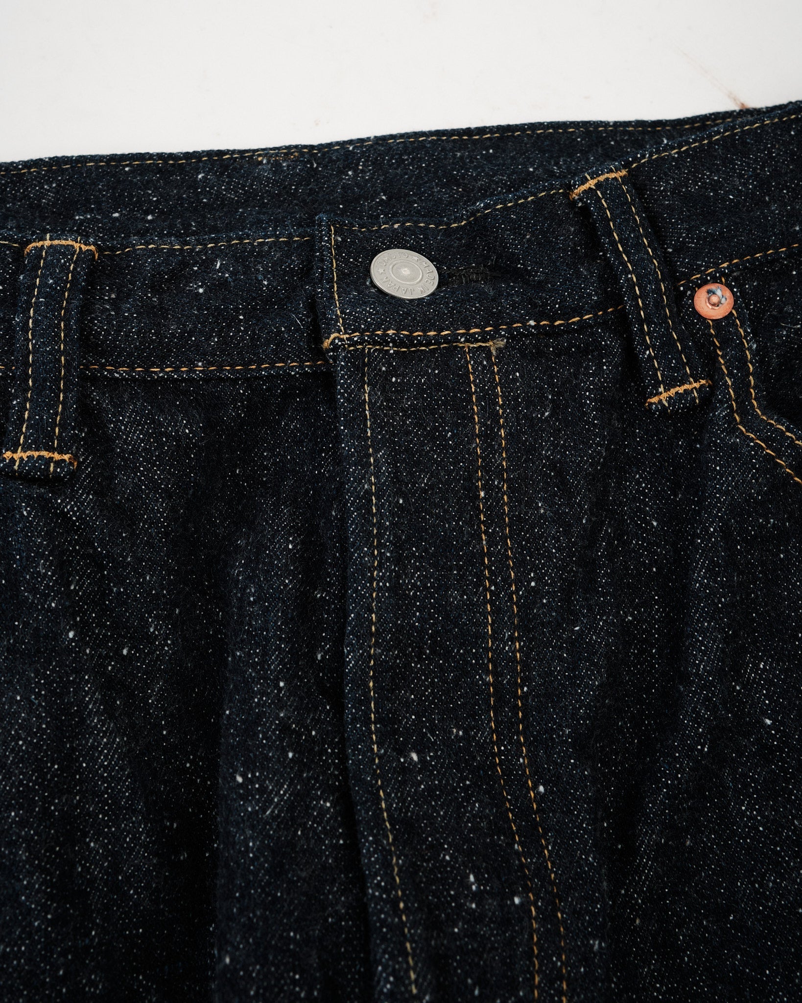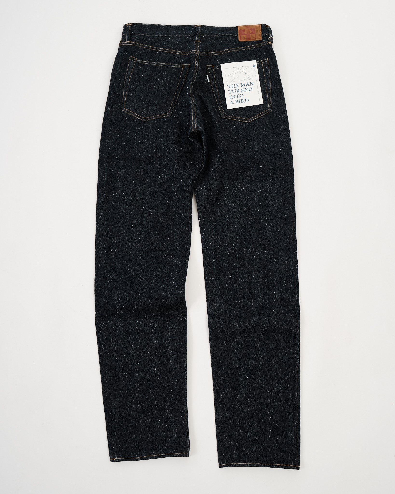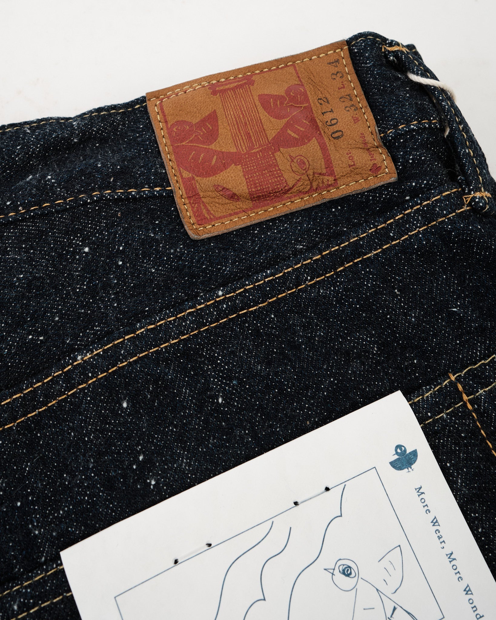 The OMOTO 0612 Relax Jeans tilbyder en perfekt balance mellem komfort og håndværk, lavet af 16oz nep denim med en karakteristisk tekstureret finish. De kædegarner blander korte bomuldsfibre (27mm eller mindre) for et uregelmæssigt, robust udseende, mens skudgarner er spundet ved hjælp af den traditionelle “gara-bo” teknik, hvilket skaber en rustik, håndspundet tekstur med en luftig, åndbar fornemmelse.