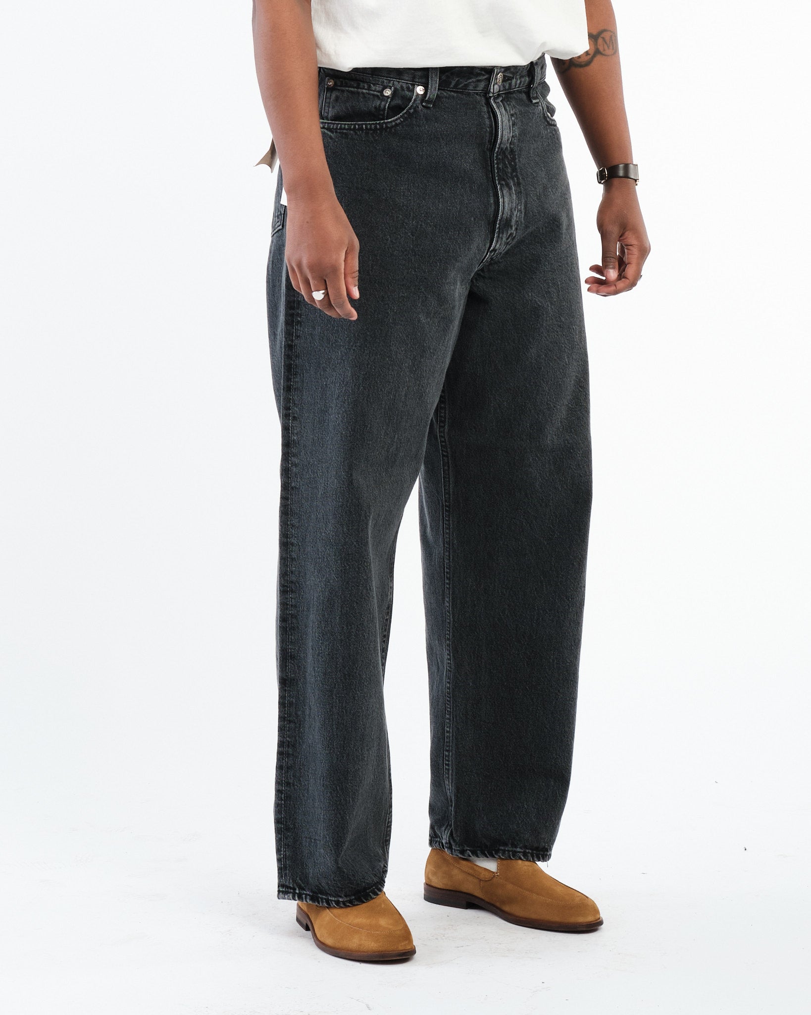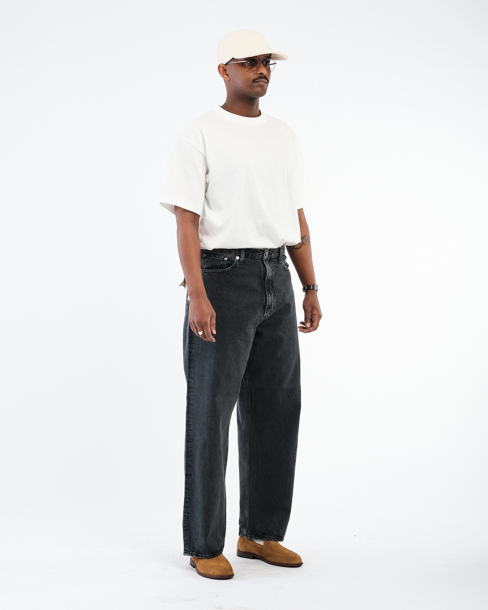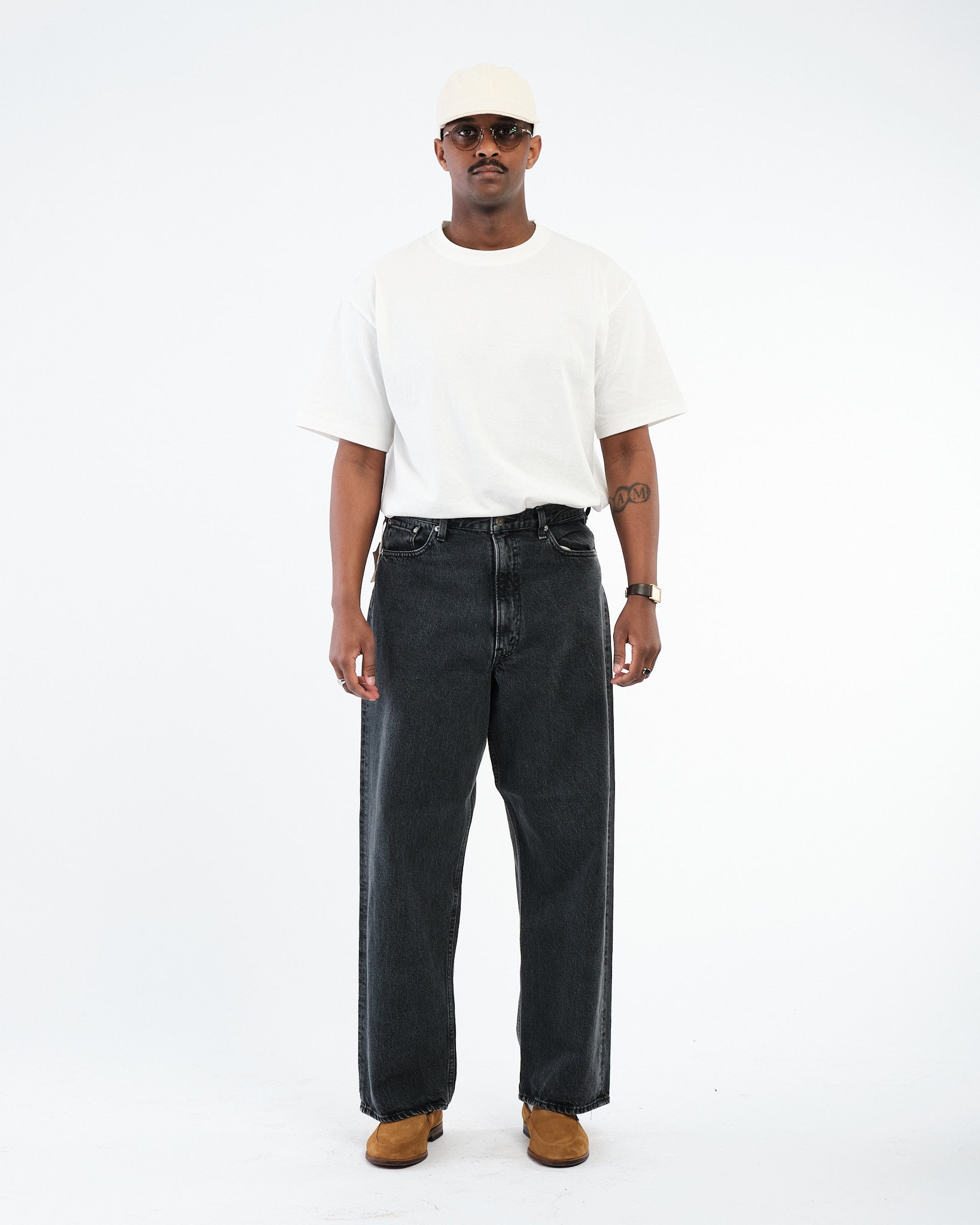 Designet med en højtaljet og en generøs pasform gennem sædet og lårene, overgår de til en bredbenet silhuet, hvilket sikrer både komfort og stil. Det forvaskede stof leverer en blød, indkørt fornemmelse fra første brug, minimerer krympning og forbedrer holdbarheden.