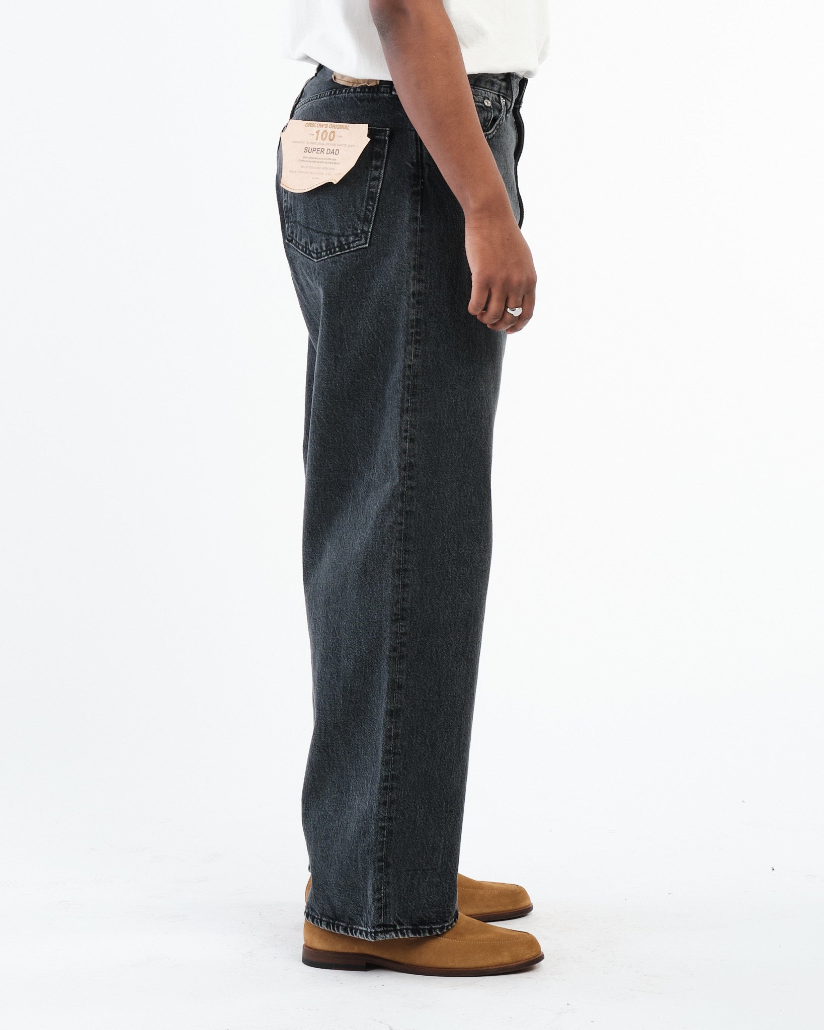 De orSlow 100 Super Dad's Denim Bukser i Sort Denim Stone tilbyder et moderne twist på de klassiske afslappede jeans, der kombinerer komfort med et moderne æstetik. Fremstillet af premium japansk denim, har disse bukser en sten-vasket sort finish, hvilket giver et unikt, slidt udseende, der tilføjer karakter til ethvert outfit.