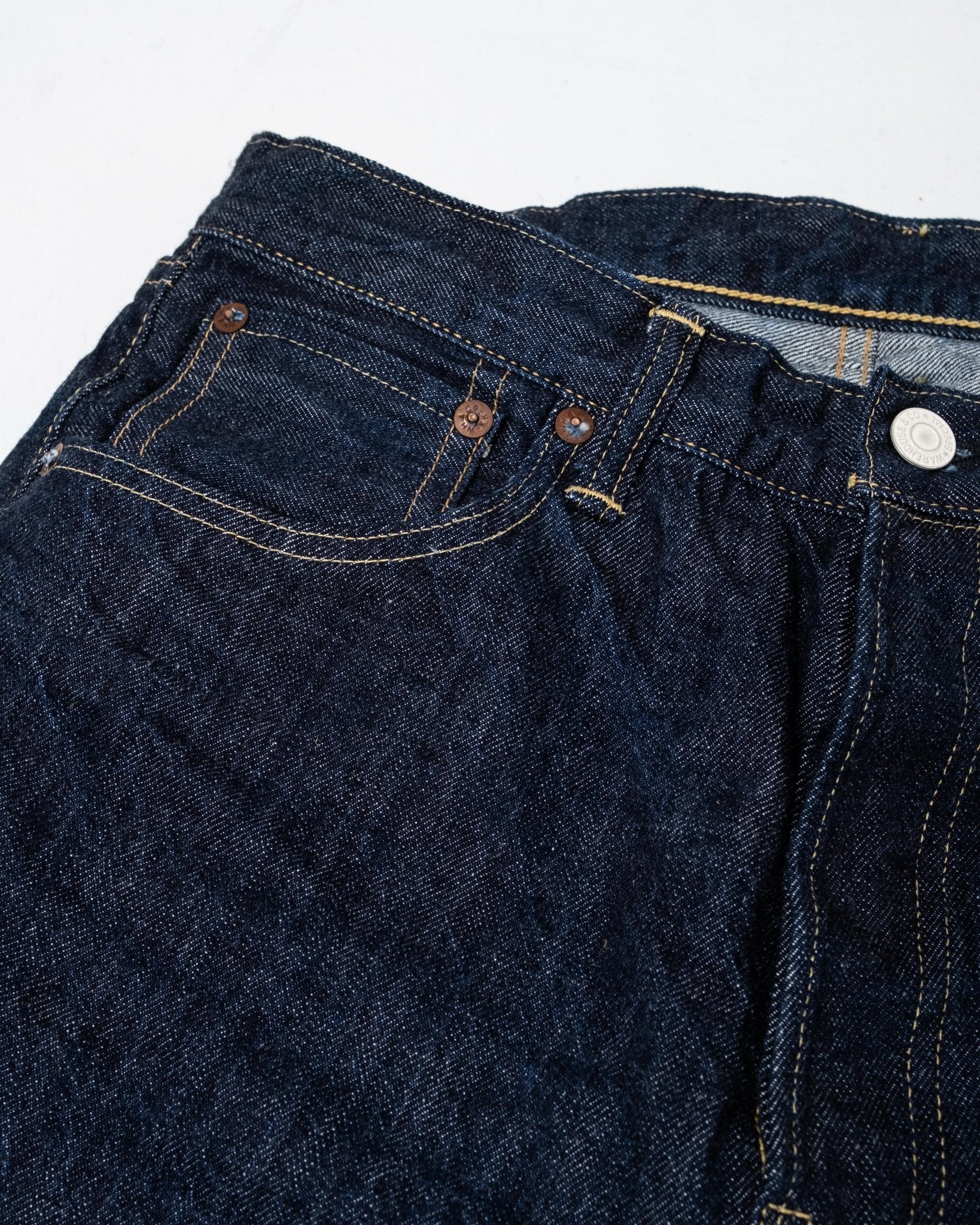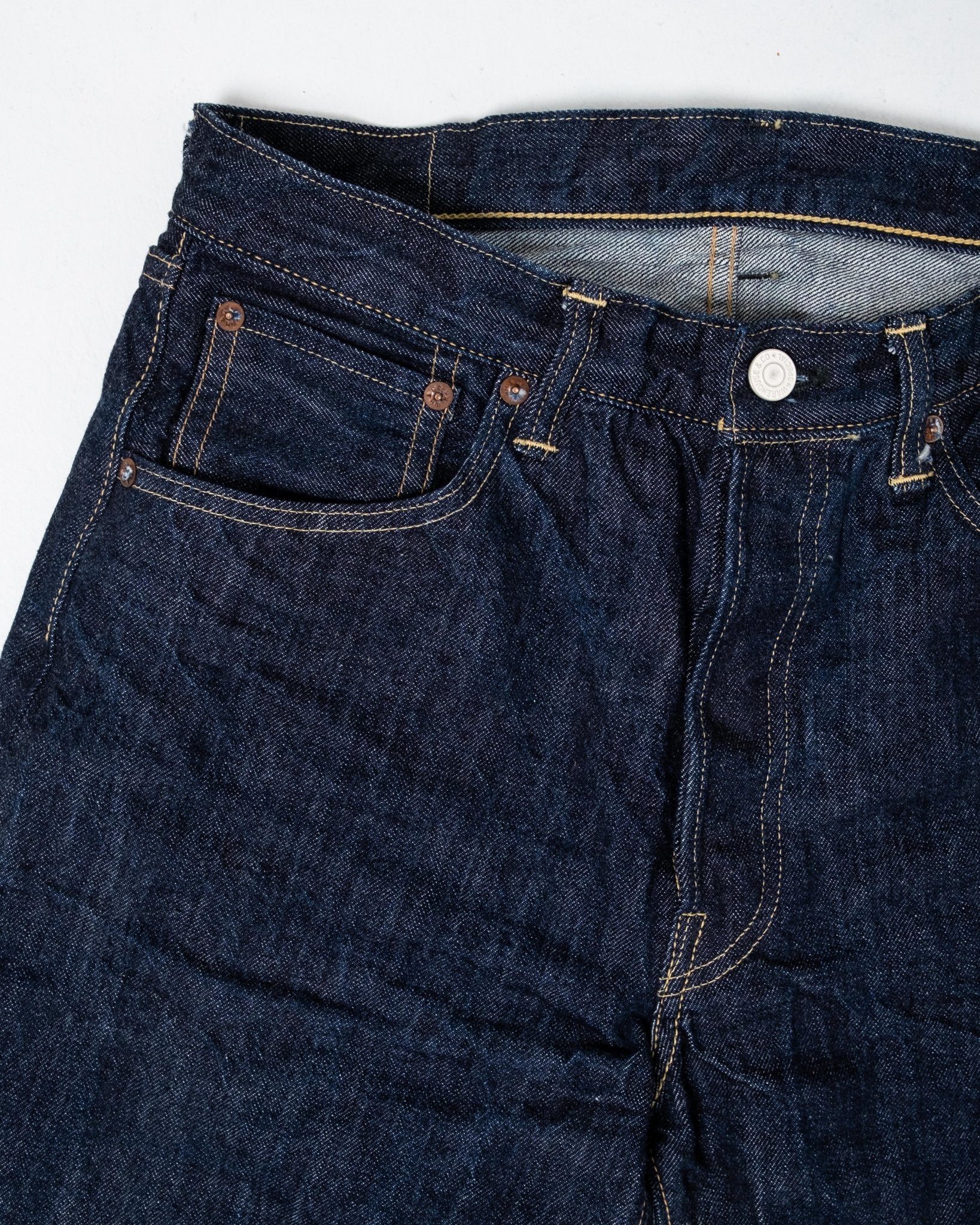 1001XX One Wash fra Warehouse & Co. Dette er en af Warehouses signaturpasninger. Warehouse adskilte et bannerreklame fra 1930'erne og genskabte garnet fra det vintage denim. Det er et 13,5 oz usanforiseret denim, der er blevet vasket én gang for et flot vintage look, plus at det befrier dig for alt besværet med krympning. Yay!