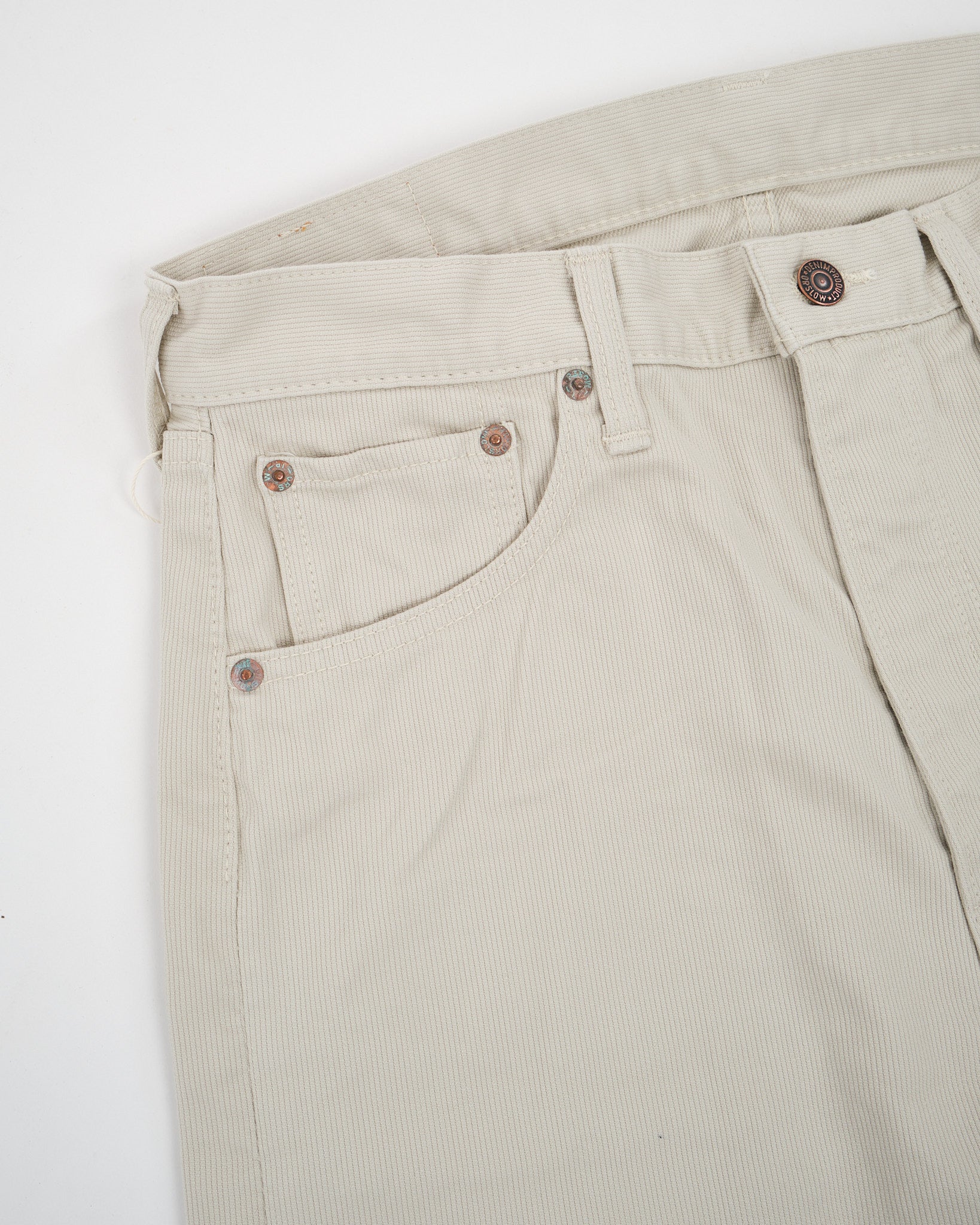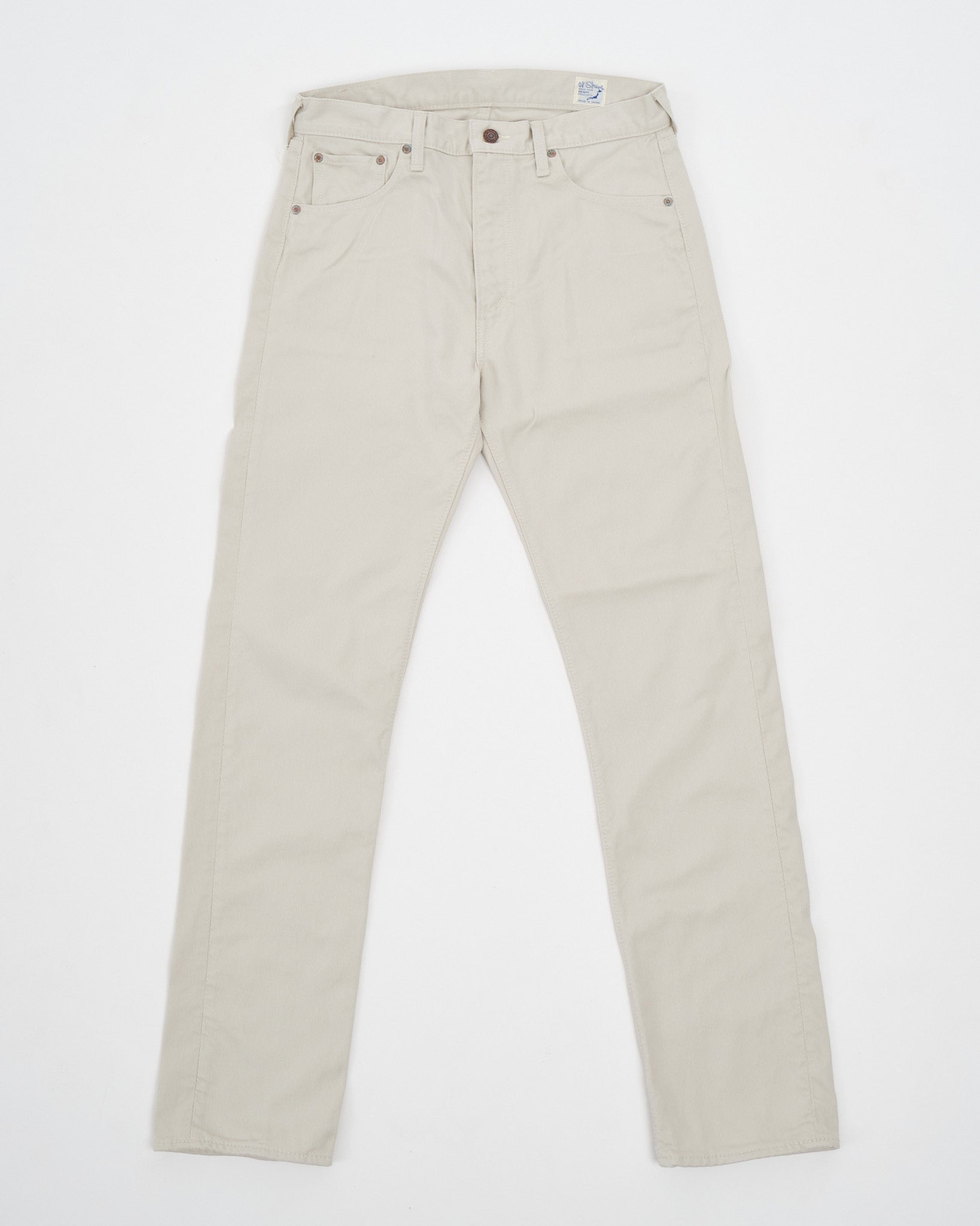 Produktkode: 01-0107W-65 Materiale: 100% bomuld Bedford cord for tekstur og holdbarhed. Pasform: Slank, lige pasform med en let tilspidsning fra knæ til søm. Design: Klassisk fem-lomme opsætning for funktionalitet. Lukning: Lynlås for bekvemmelighed. Farve: Elfenben—en alsidig nuance egnet til forskellige outfits. Håndværk: Fremstillet i Japan, hvilket sikrer høj kvalitetskonstruktion. Alsidiighed: Ideel til både afslappede og semi-formelle lejligheder. Vedligeholdelse: Maskinvaskbar for nem vedligeholdelse. Stil Inspiration: Inspireret af 1960'ernes Ivy League mode.