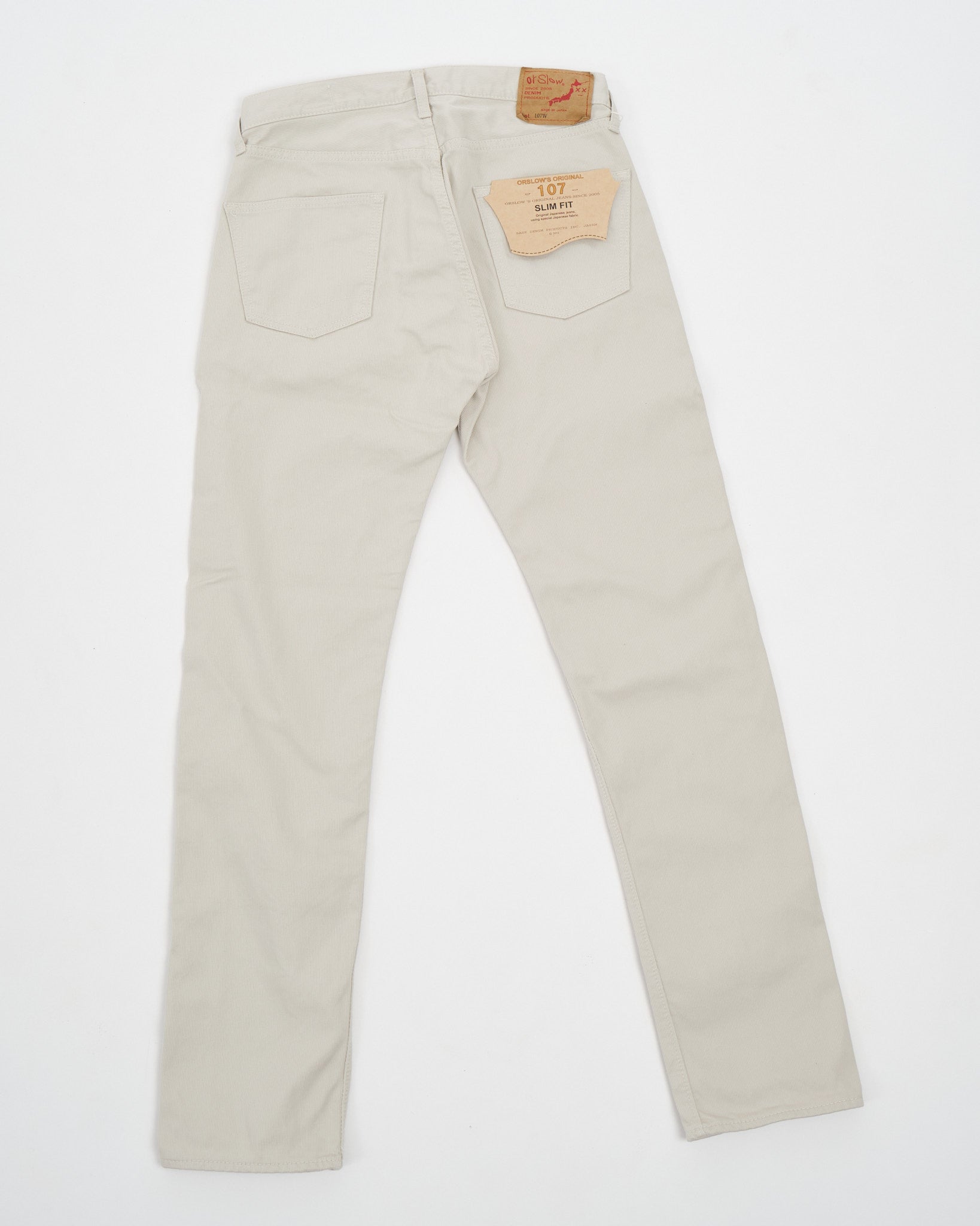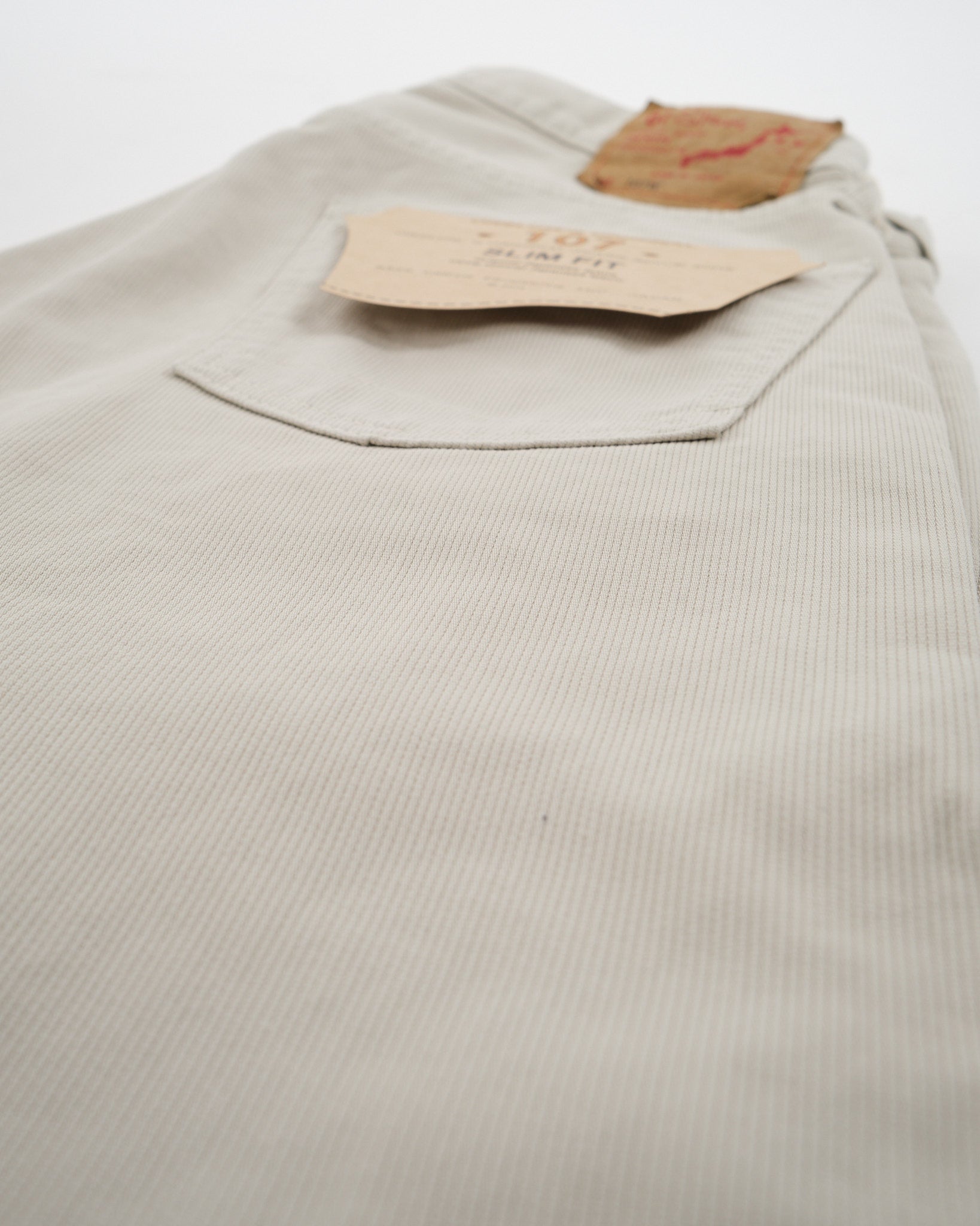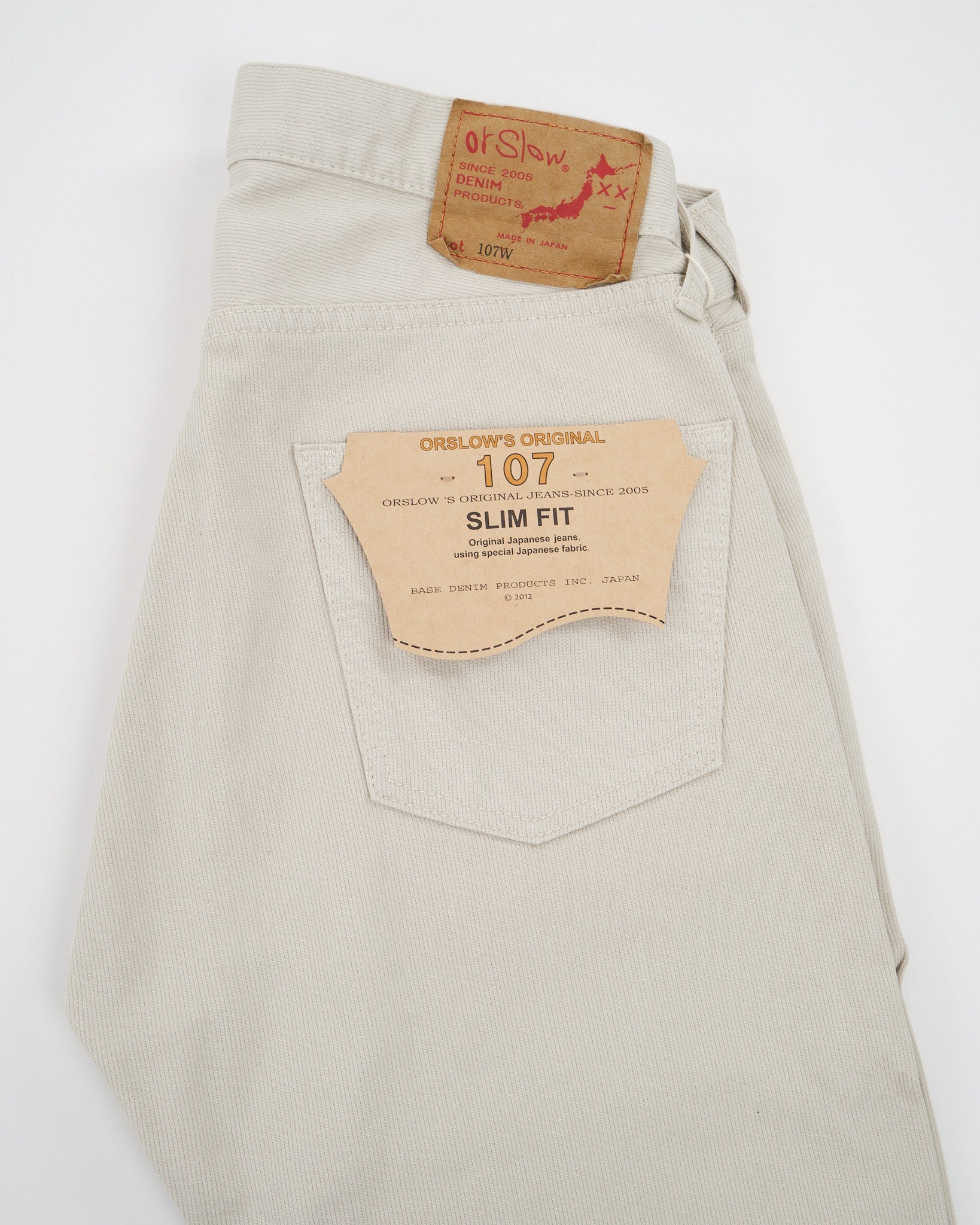 De orSlow 107 Cotton Pique Ivy Fit Pants in Ivory er en raffineret fortolkning af den klassiske Ivy League-stil, der blander traditionel æstetik med moderne håndværk. Fremstillet af 100% bomuld Bedford cord stof, tilbyder disse bukser en tekstureret fornemmelse og ekstraordinær holdbarhed. 107 Ivy fit har en slank, lige silhuet, der indsnævres let fra knæet til sømmen, hvilket giver et strømlinet, men komfortabelt look. Det klassiske fem-lomme design tilføjer funktionalitet, mens lynlåsen sikrer nem påklædning. Fremstillet i Japan, disse bukser er et eksempel på orSlows forpligtelse til kvalitet og tidløst design.