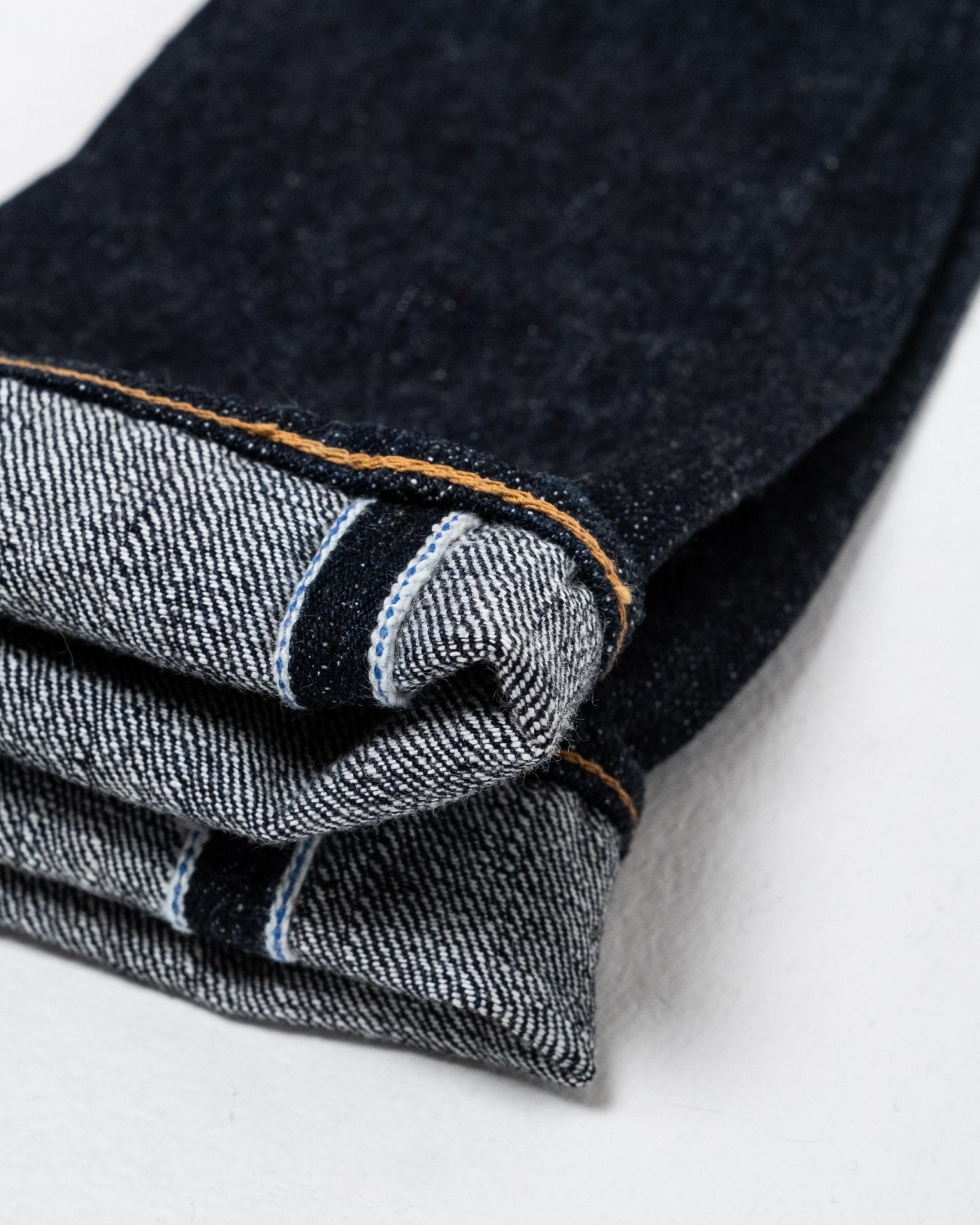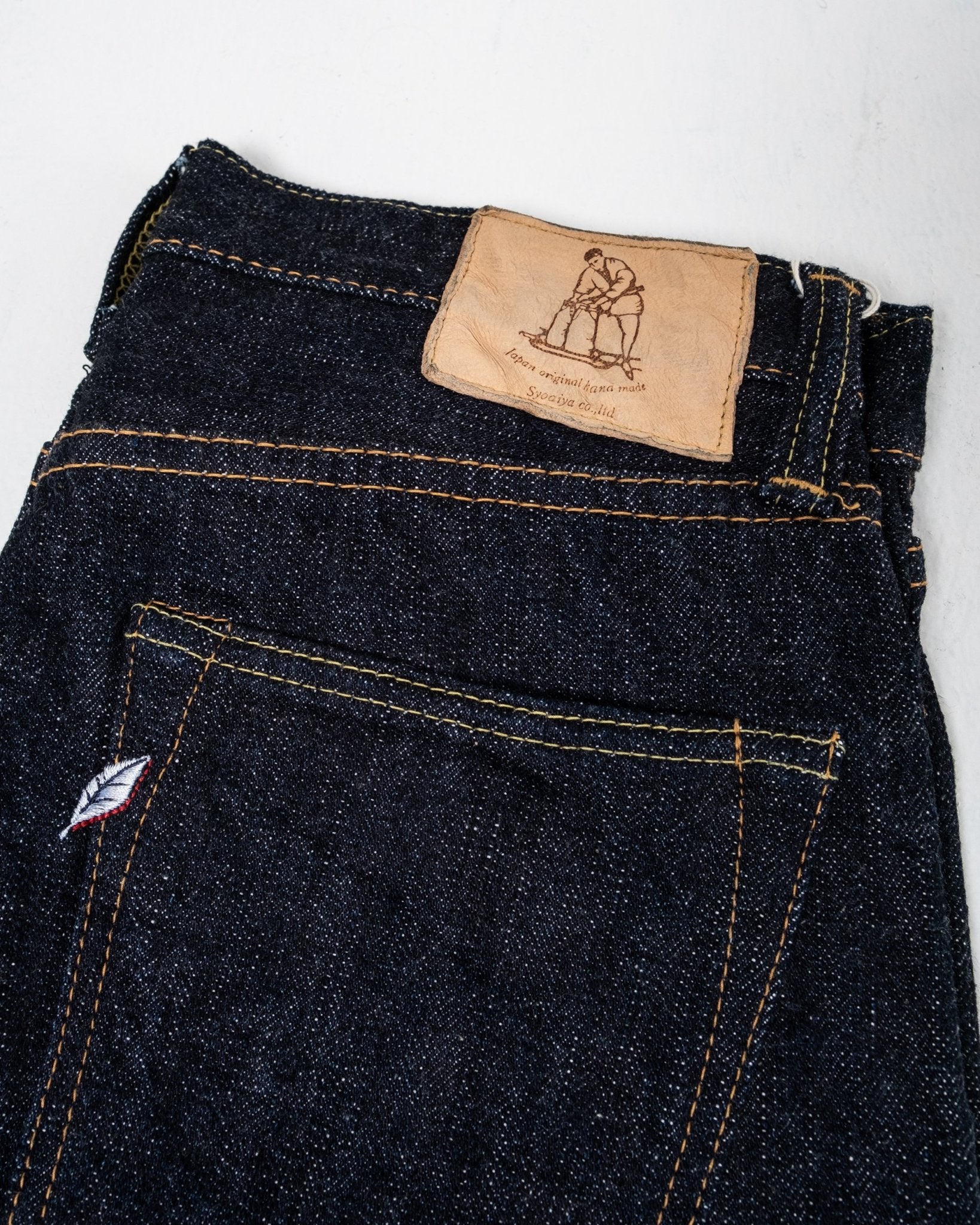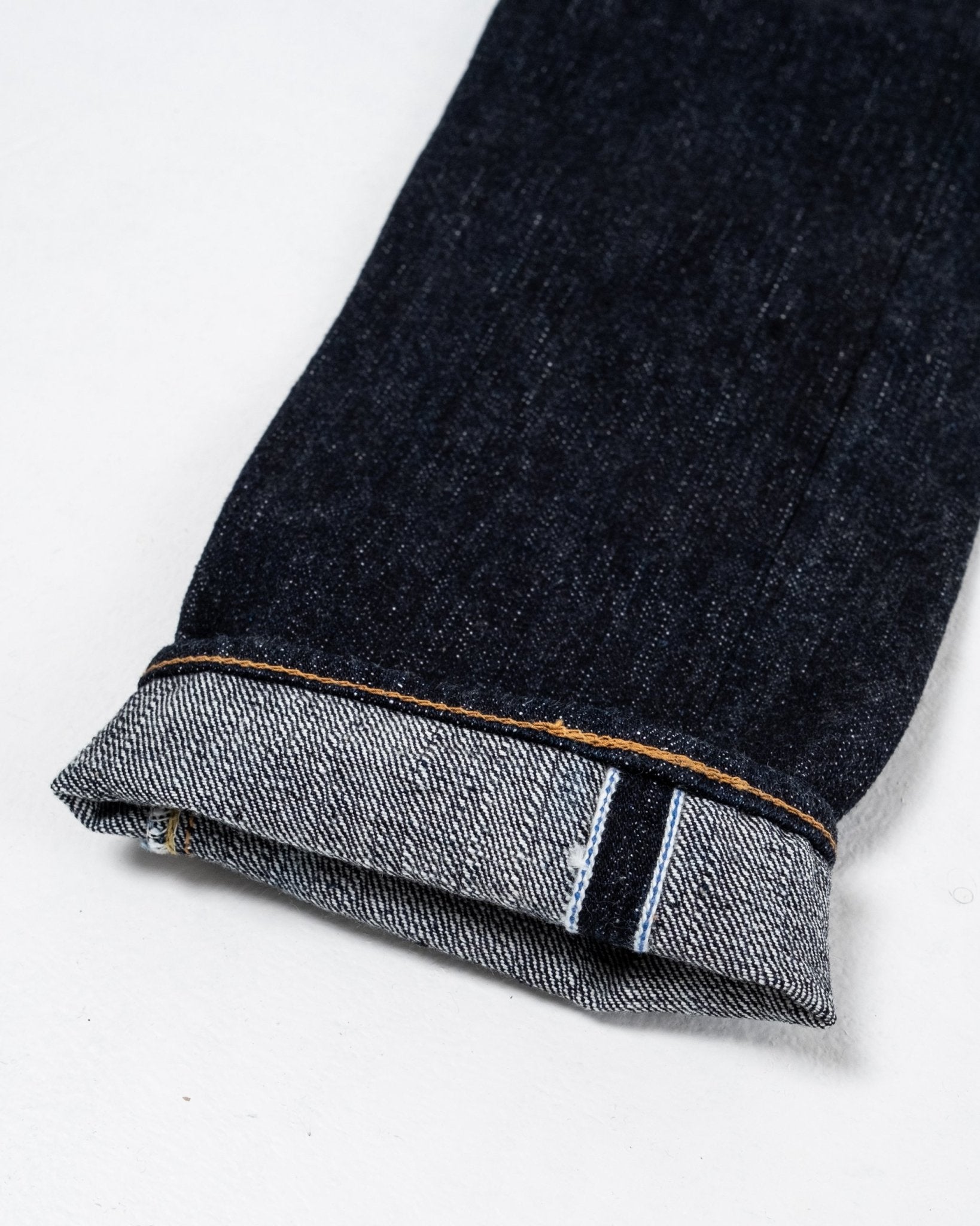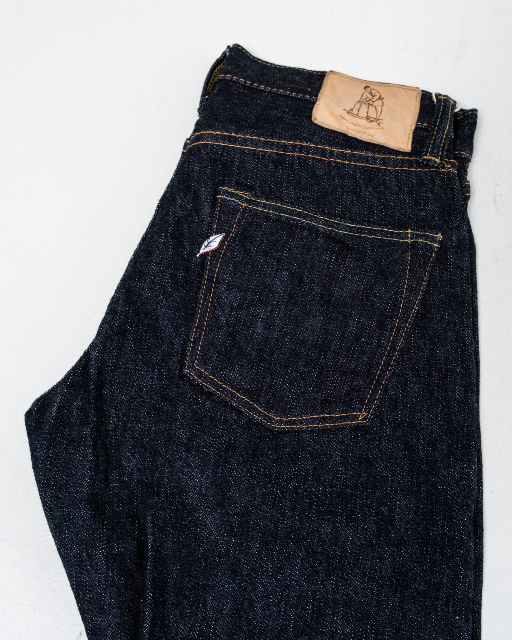 14 Oz Tapered Slim Wash Indigo XX-013 fra Pure Blue Japan. Stoffet, der er brugt, er et 14 oz råt denim, som er blevet vasket én gang for en mere behagelig pasform, og også fordi så behøver du ikke bekymre dig om krympning, når du vasker dem. Fremstillet med et modificeret lavspændings-skyttelvæv og rebfarvet med rent indigo. Resultatet er stoffets smukke slubstruktur. Alle Pure Blue Japans klassiske jeans er lavet af denim fremstillet fra en enkelt væv, hvilket betyder, at den årlige produktion er utrolig begrænset. Fremstillet i Japan.