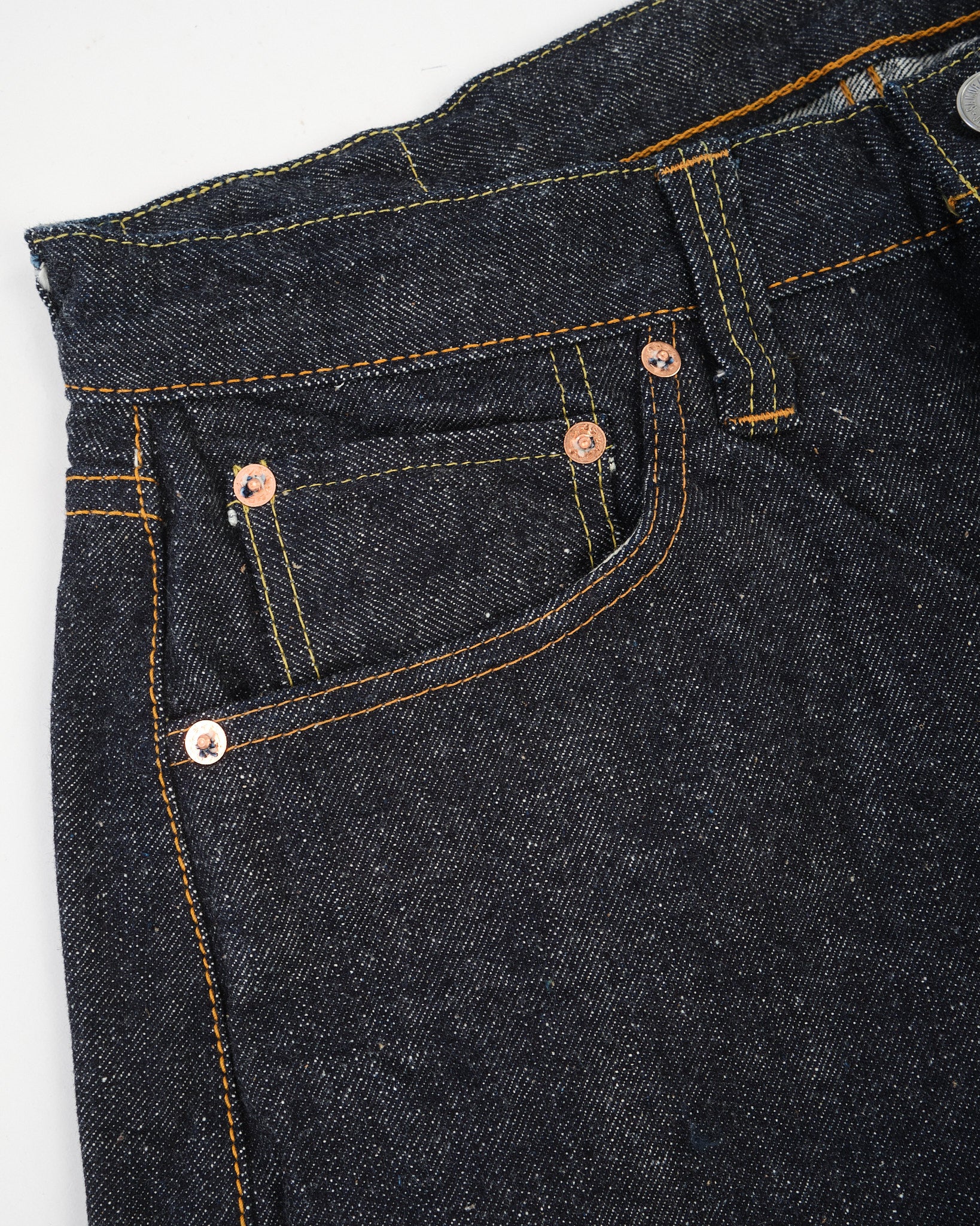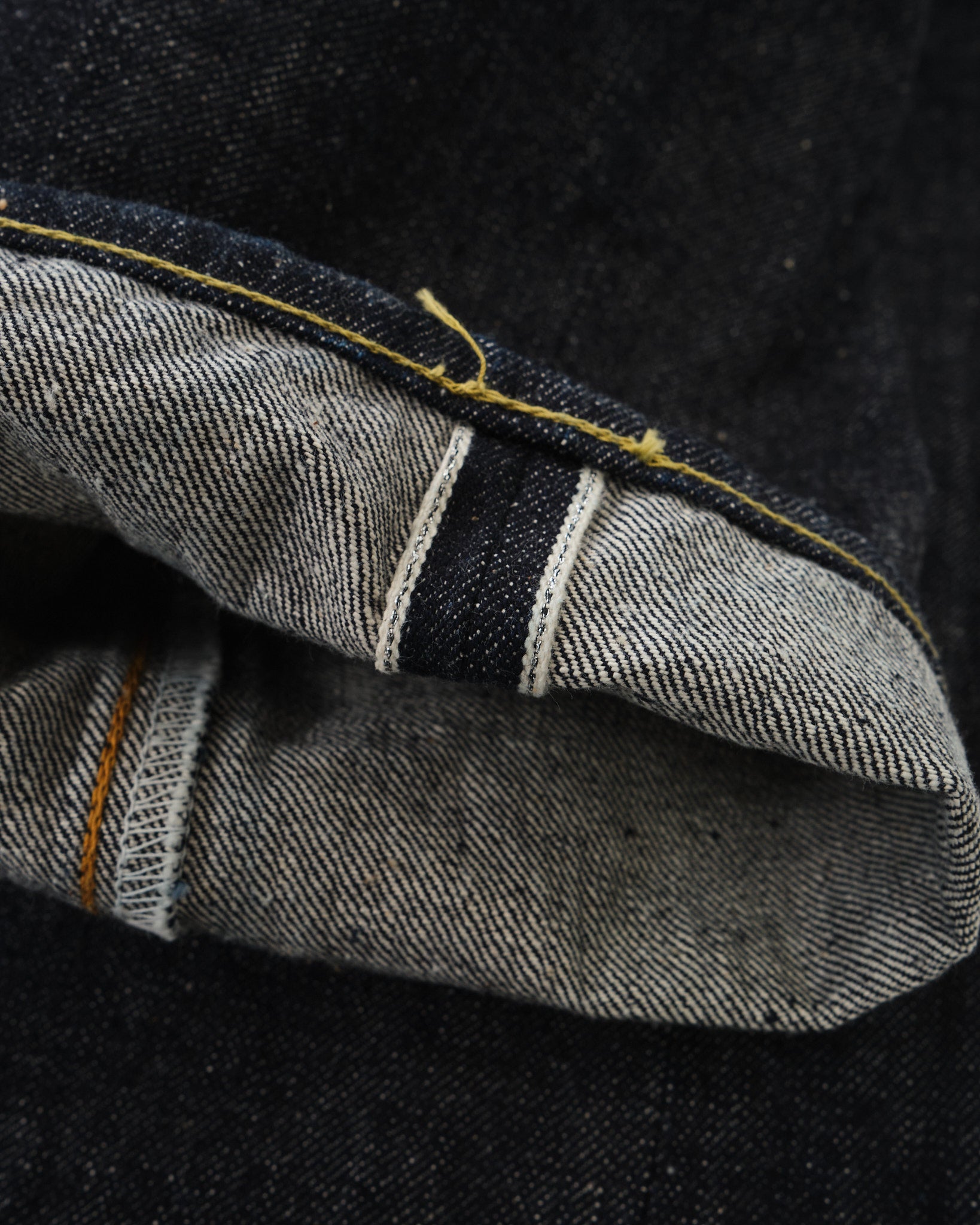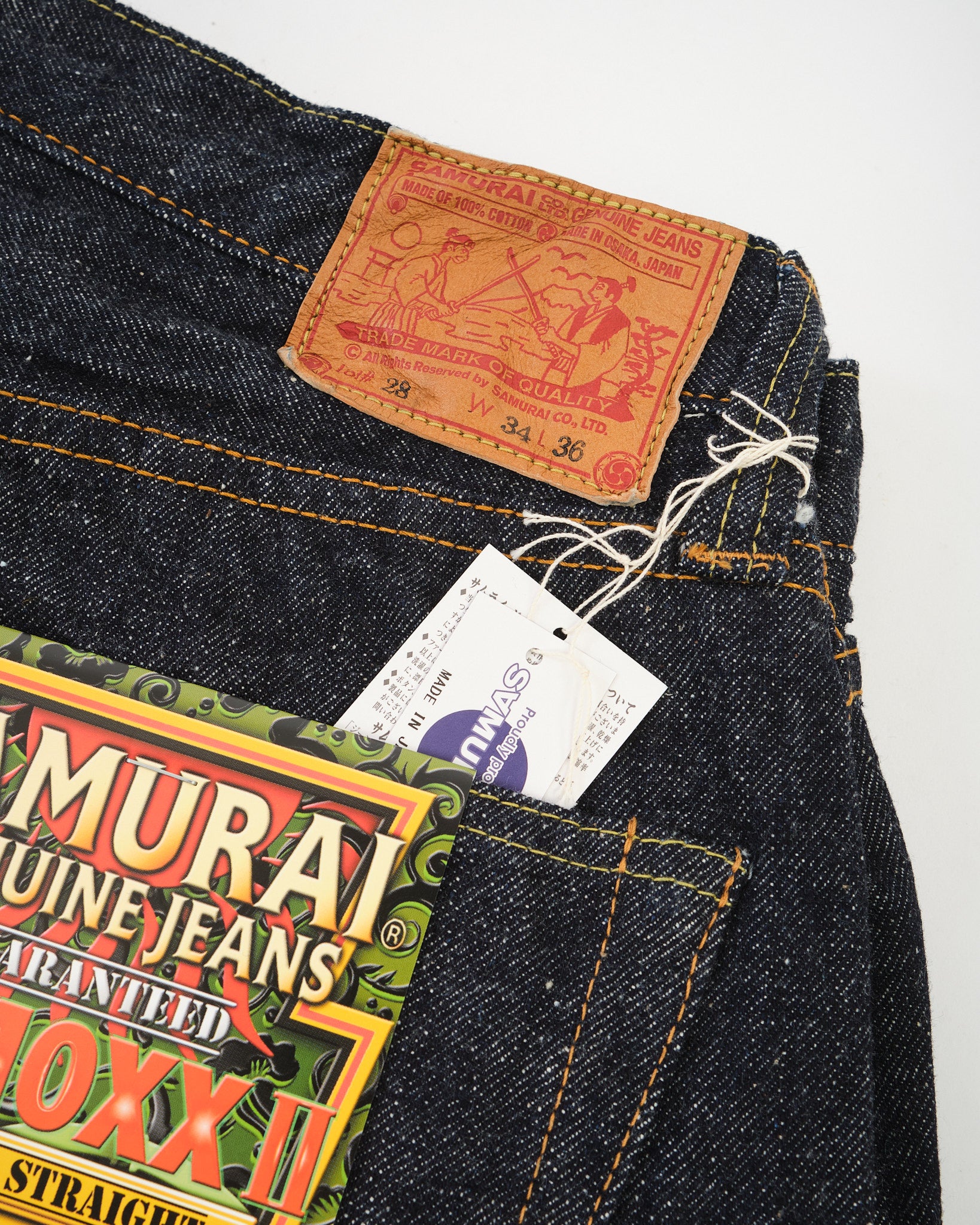 Den S0510XXII står som en sand repræsentant for Samurai Jeans: en 15oz regulær straight cut lavet af mærkets ikoniske Otokogi selvedge denim. Vævet af slubbede #6 bomuldstråde med stykker af bomuldsaffald efterladt i blandingen, skubber dette stof vintage væve til deres grænser, hvilket producerer en robust, ujævn tekstur, der udvikler sig til skarpe, højkontrast fades.