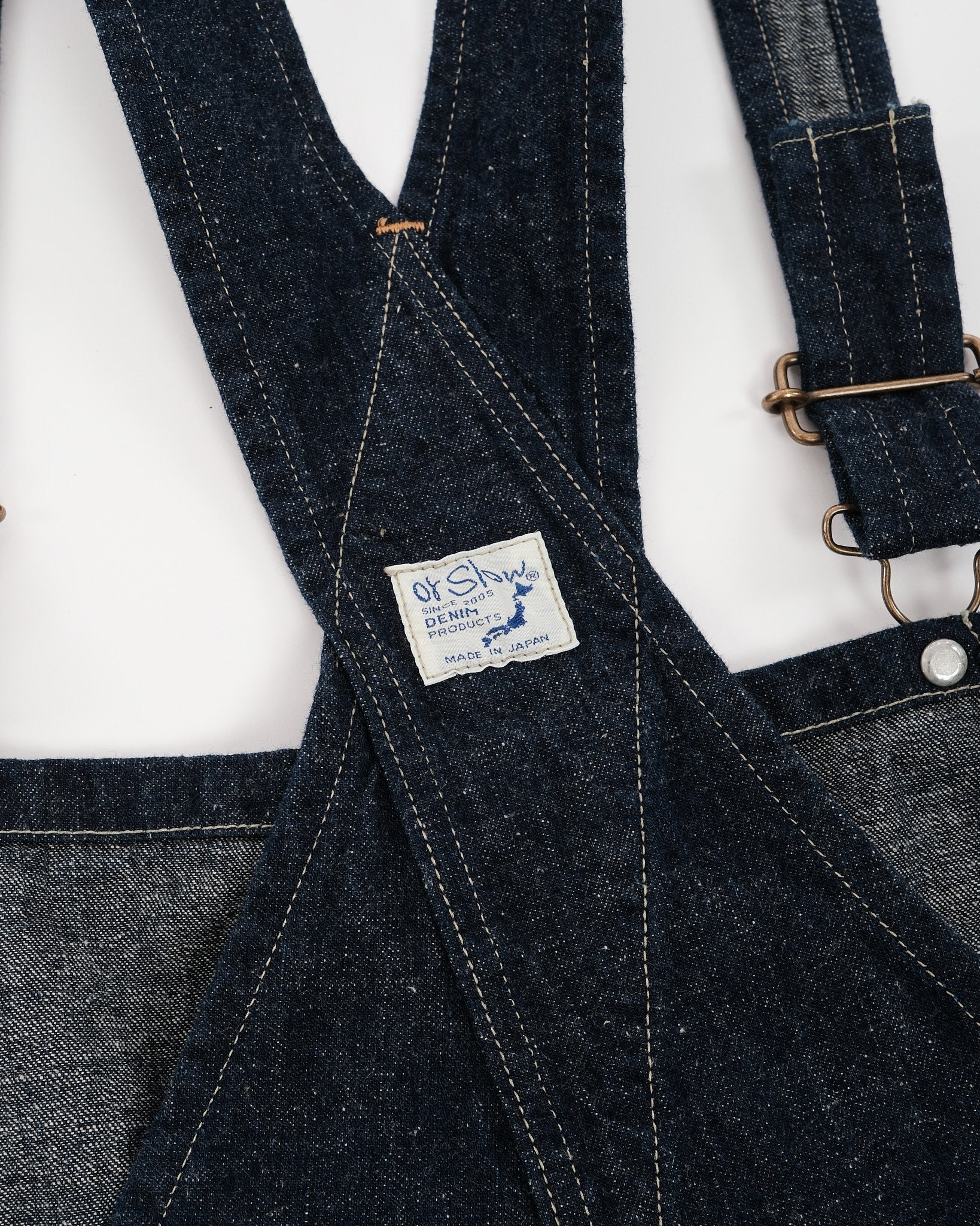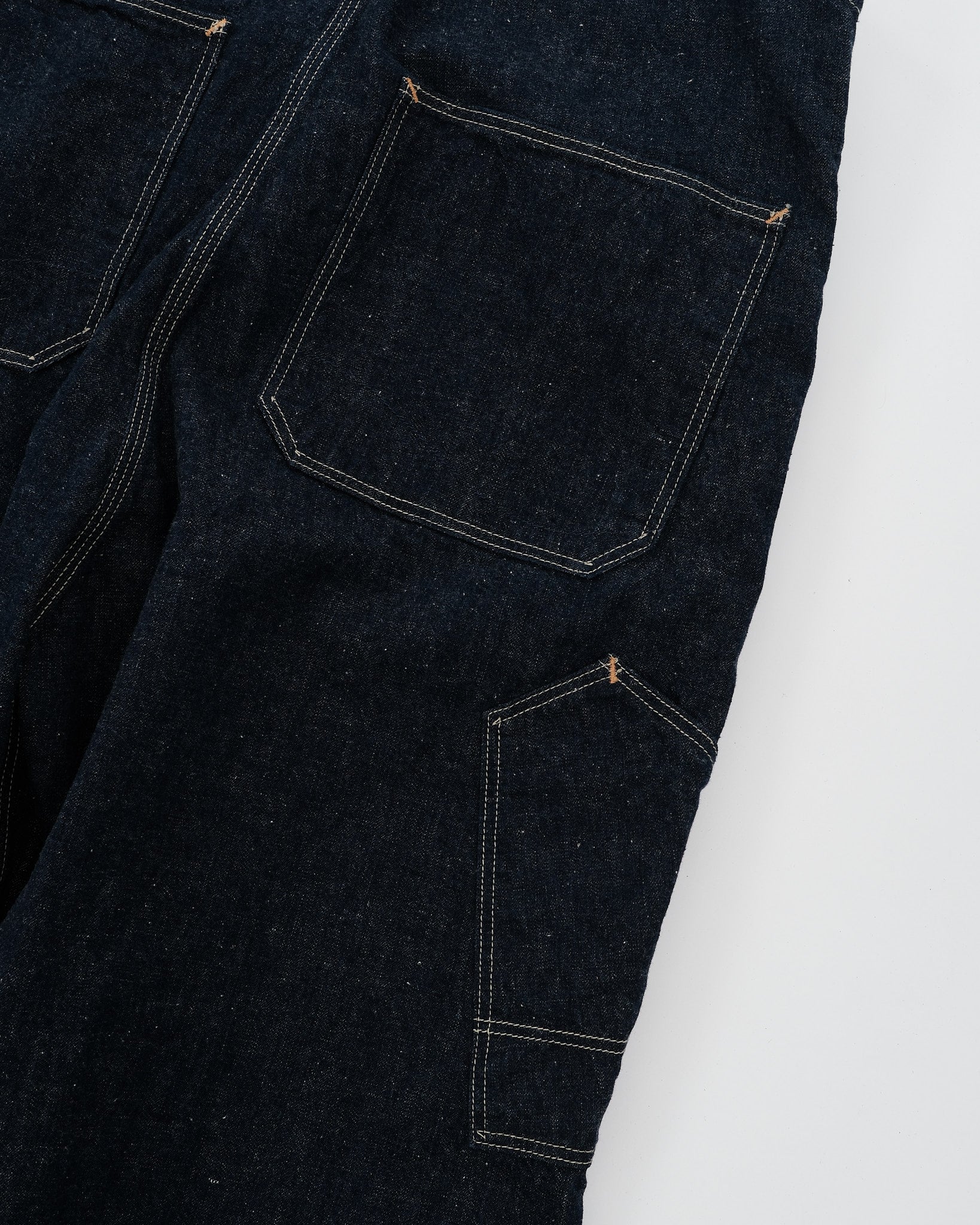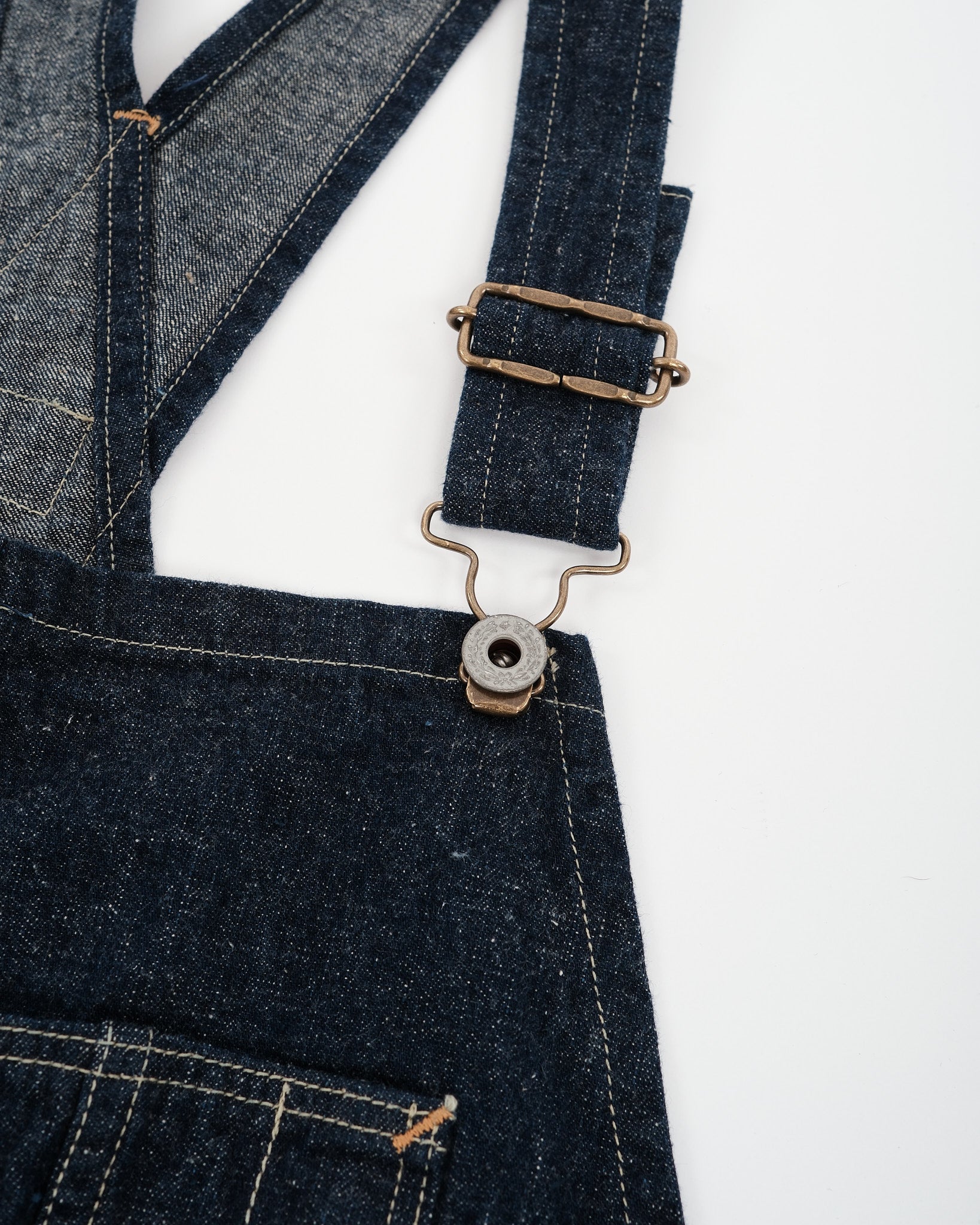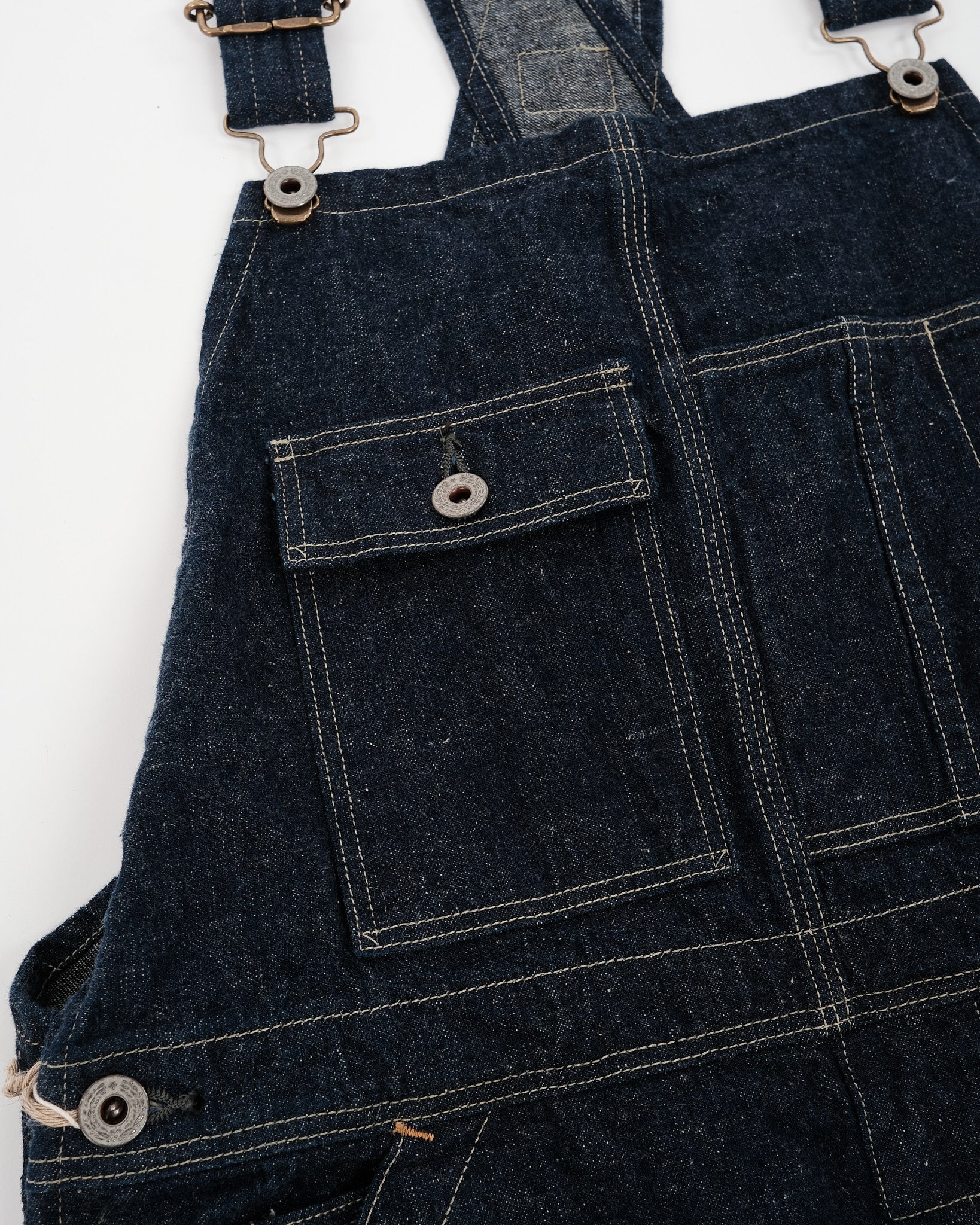 Præsentation af orSlow 1930'ernes Denim Overall i One Wash stilnummer 03-9000-81. Dette særlige stykke er ret sjældent at finde. En absolut skat for denim-entusiaster. Fremstillet i Osaka, Japan, er disse overalls lavet af 100% bomuld original selvedge denim, der vejer 9 ounces. Stoffet er kendt for sin teksturerede og hårde fornemmelse, som orSlow er velkendt for. Disse overalls overgår arbejdstøj ved at kombinere stil og funktionalitet problemfrit. Stoffets lave spænding bidrager til komforten, mens de unikke hardware-elementer såsom krans- og stjerneknapper sammen med messing spænder forbedrer den samlede æstetiske appel. Med dobbelt/trippel nålestikning overalt er disse overalls designet til at modstå slid og muligvis overleve det stof, de er lavet af. Med i alt 9 lommer tilbyder disse overalls orSlows opmærksomhed på detaljer og urokkelig forpligtelse til ekstraordinær kvalitet.