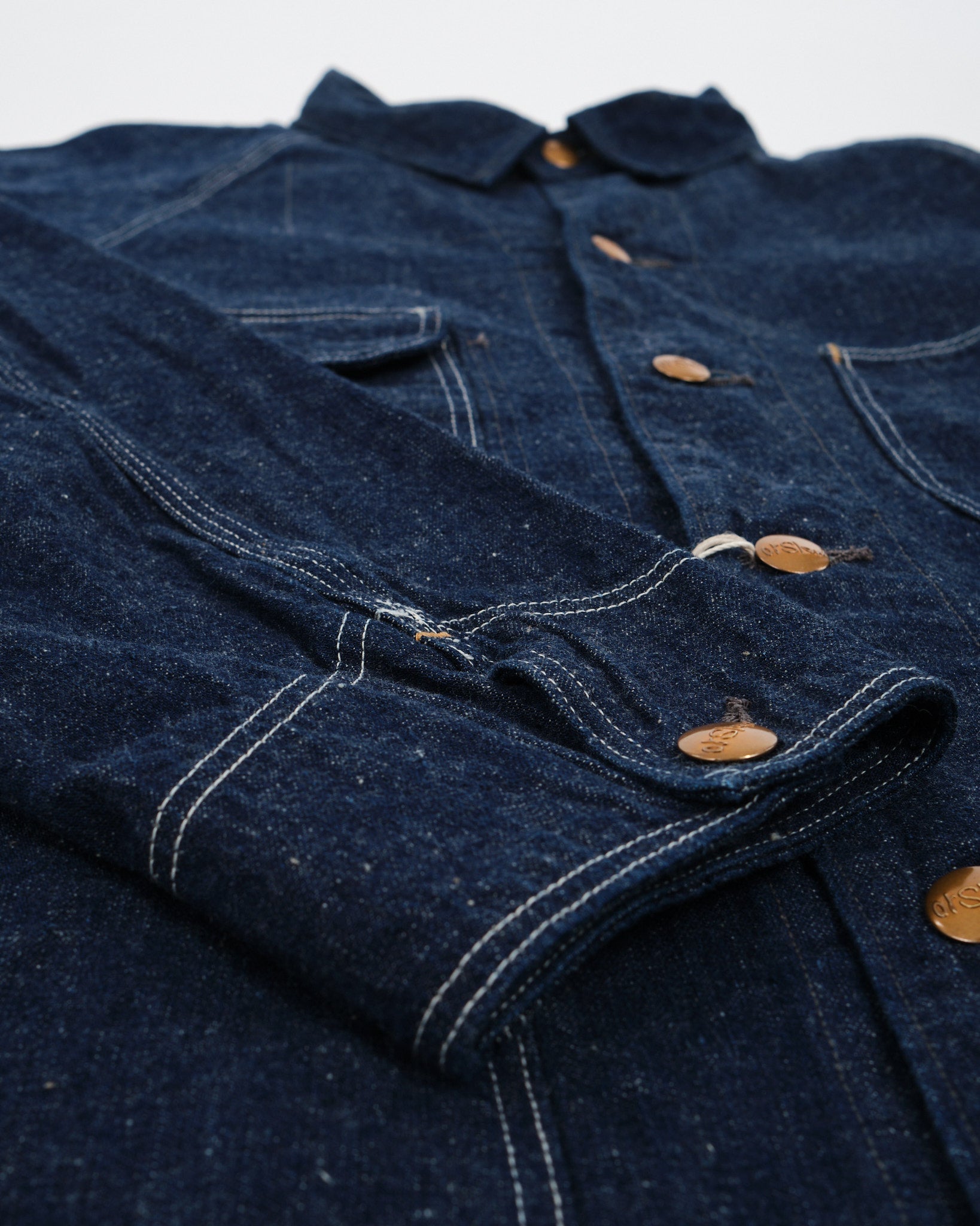 Omarm robust elegance med orSlow 1950's Coverall i en one-wash finish. Fremstillet i Japan af premium 9oz indigo-farvet denim, er denne kedeldragt en moderne fortolkning af efterkrigsarbejdsjakker. Designet både med henblik på form og funktion, den har brugerdefinerede orSlow messingknapper og en række praktiske lommer. Med sin afslappede pasform, lægger dette stykke sig ubesværet over t-shirts, flannelshirts eller sweatshirts. Forvasket for at minimere krympning og farvetab, vil det unikke indigo falme med ynde over tid og tilbyde en personlig patina.