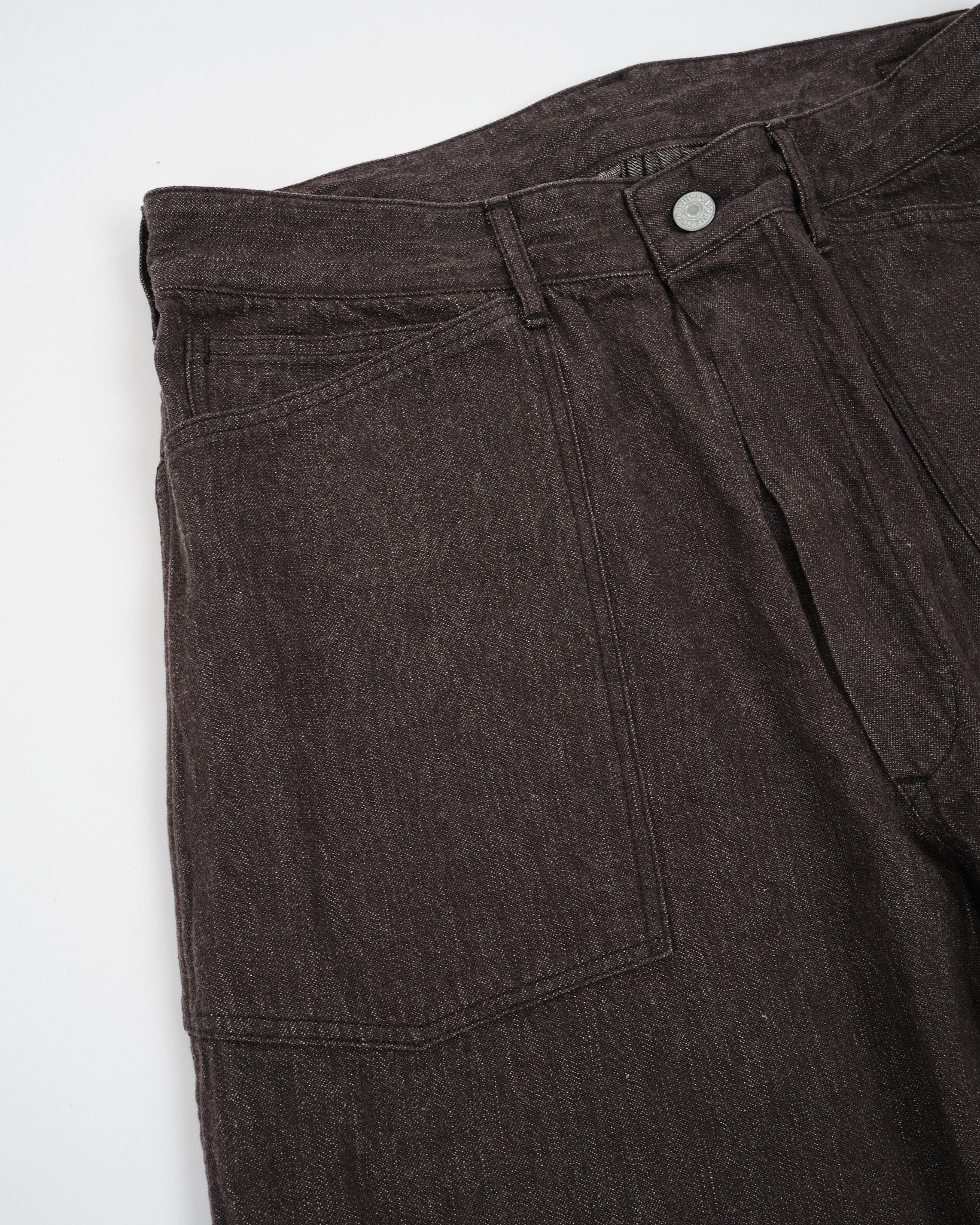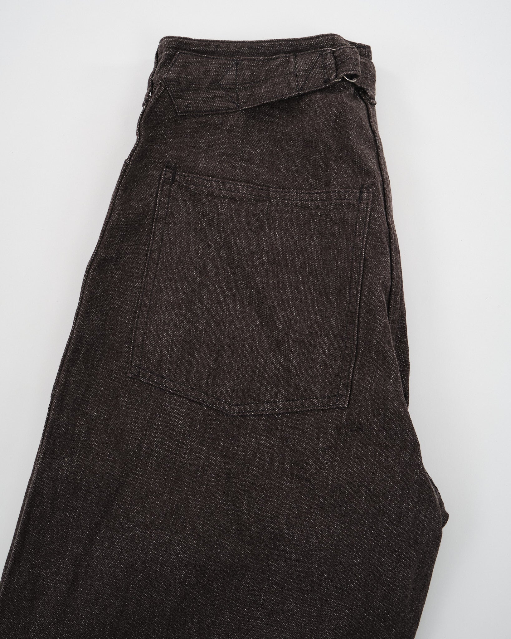 Afsløring af de 35 Backleback Baker bukser fra Kaptain Sunshine — hvor vintage møder moderne. Skabt med 10,5 oz denim, er disse bukser vævet på en gammel shuttle væv ved brug af ujævn garn og bomuld med høj twist. Den unikke indigo nuance? Det skyldes specielle farvningsteknikker, der giver det det mørke vintage look. Og glem ikke om den oversized pasform og den store spænde bagtil for at stramme taljen. Klar til at opgradere din stil? Søg ikke længere.