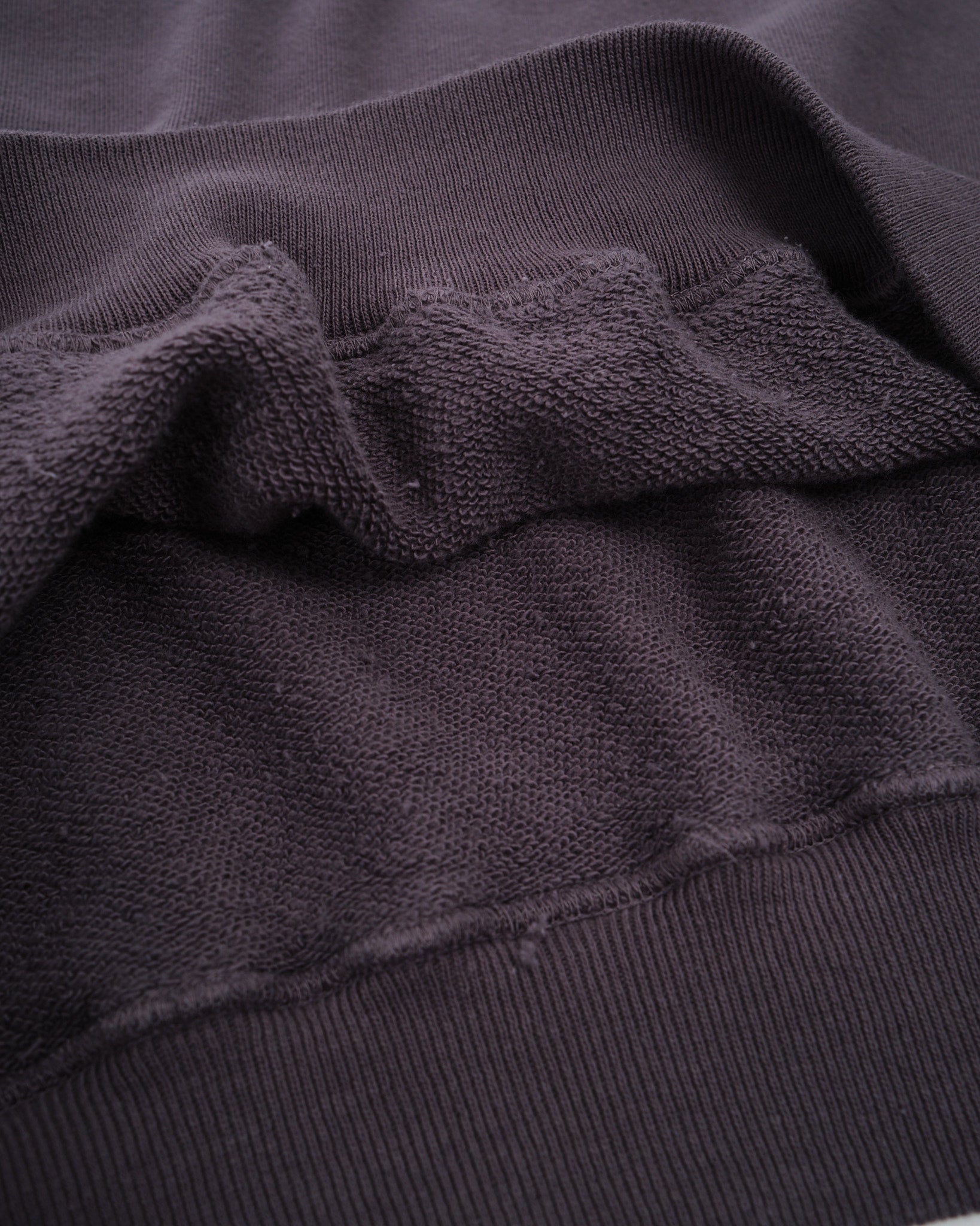 Med udnyttelse af viden om second-hand tøj er avancerede trykteknikker blevet anvendt til at genskabe vintage genstandes imperfektioner, såsom stofskævhed og trykforvrængninger. Tøjets karakteristiske størrelse spejler perfekt de sværtfangede proportioner af vintage tøj. Unikt har dette stykke ikke en børstet finish på sit loop-hjulede stof, hvilket tilbyder en forfriskende fornemmelse, som især værdsættes i Japans klima.