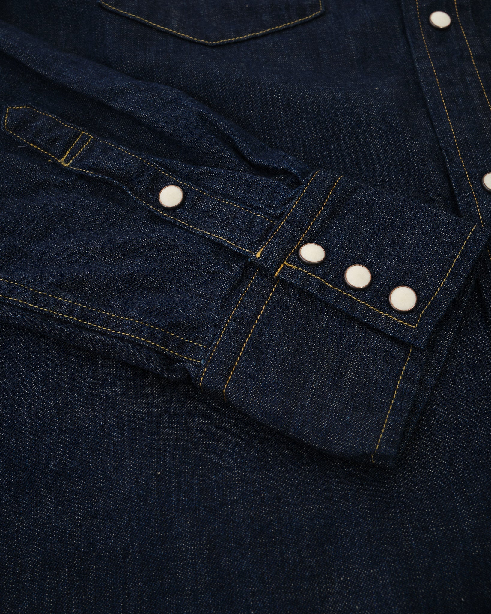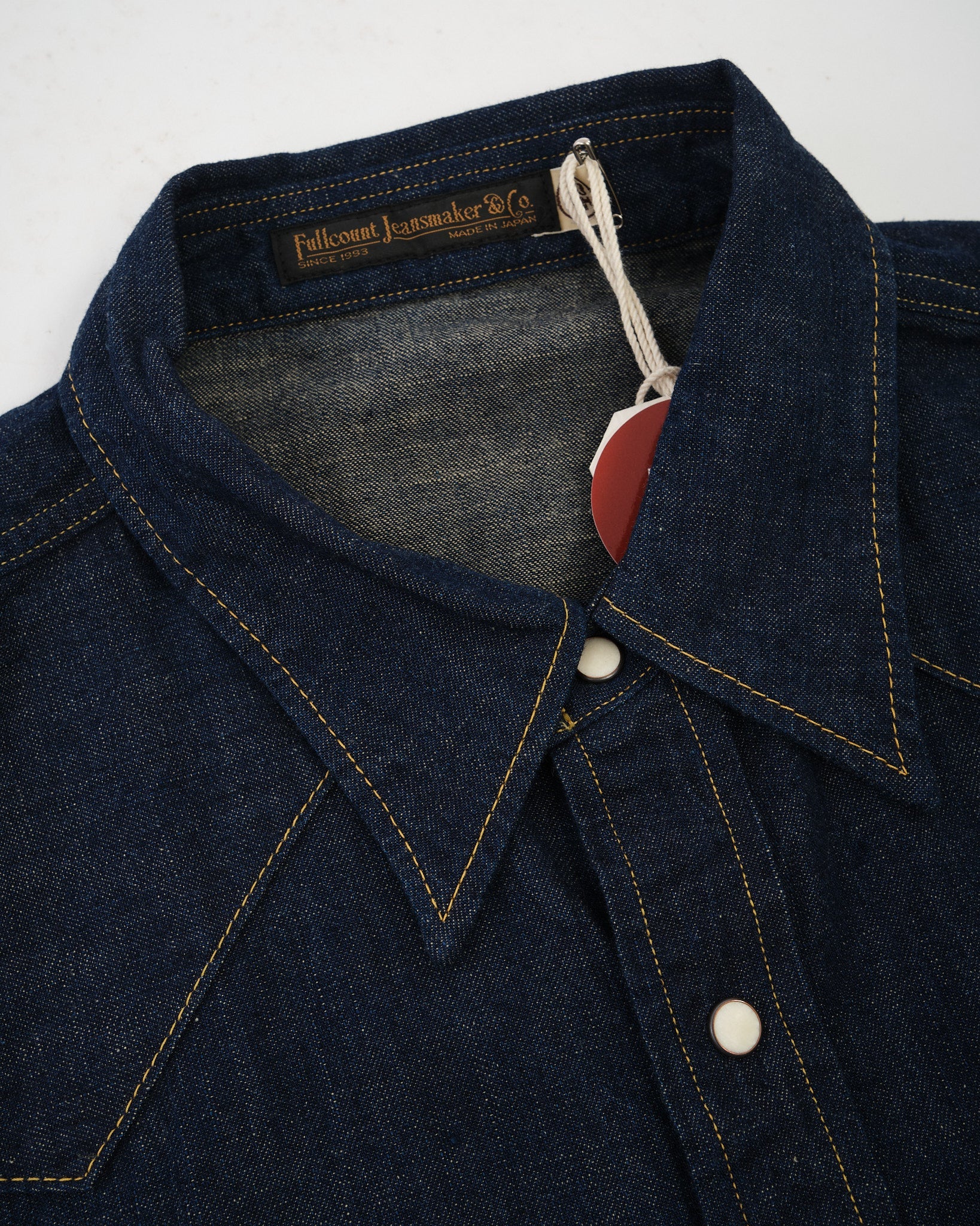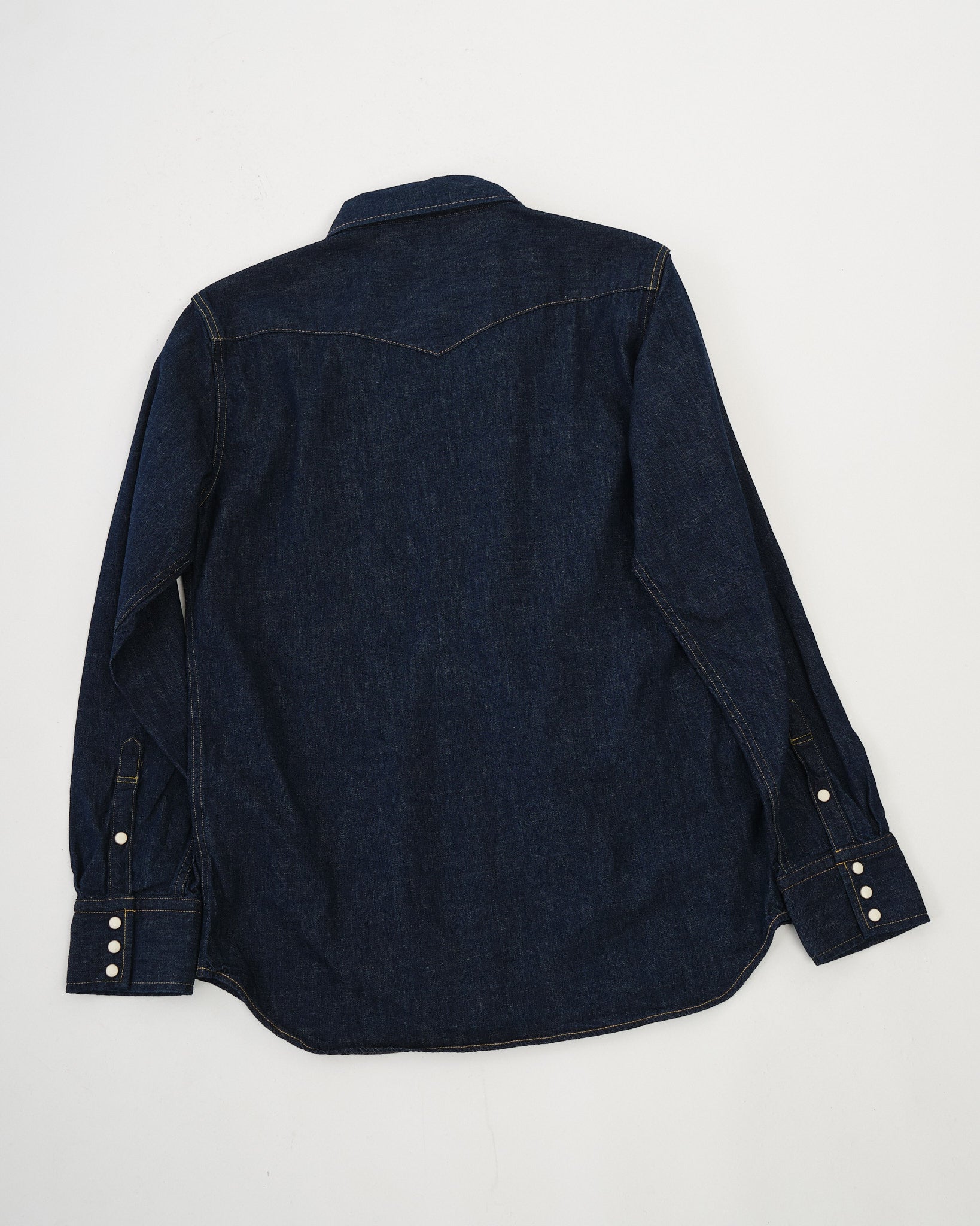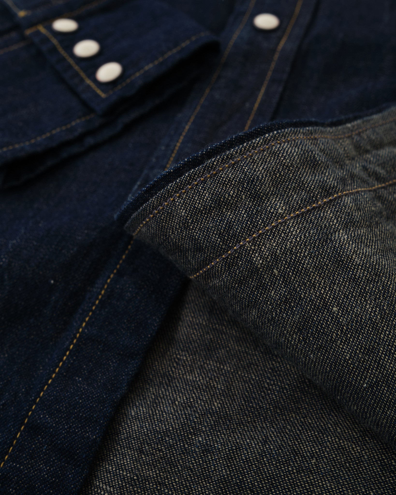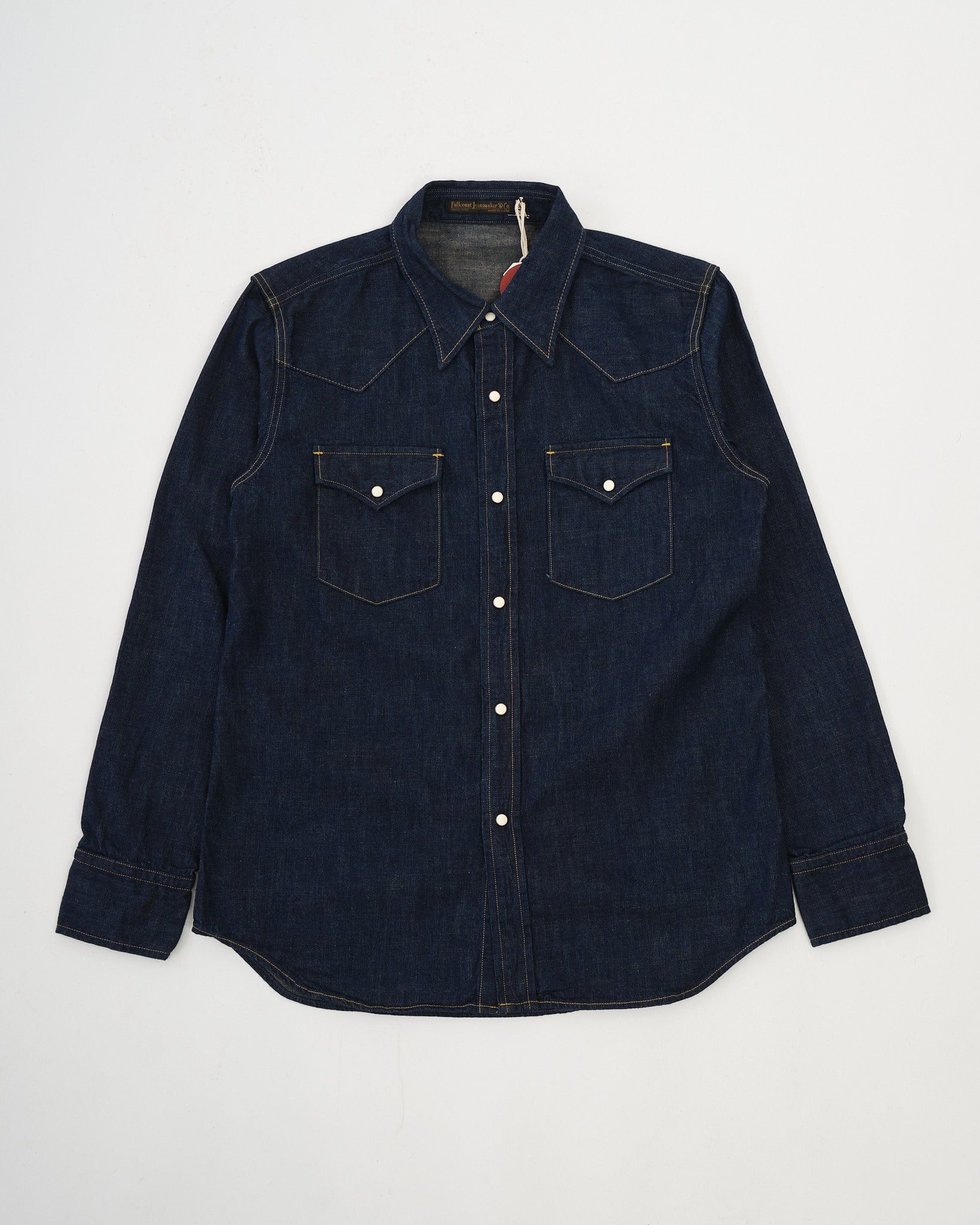 The Full Count 4894 Denim Western Shirt celebrates the iconic Western silhouette with Japanese precision. Cut from an 8oz selvedge denim woven on shuttle looms, it balances durability with year-round versatility. Indigo-dyed and crafted with pearl snap buttons, flap chest pockets, and a classic Western yoke, it captures the spirit of vintage ranch wear.