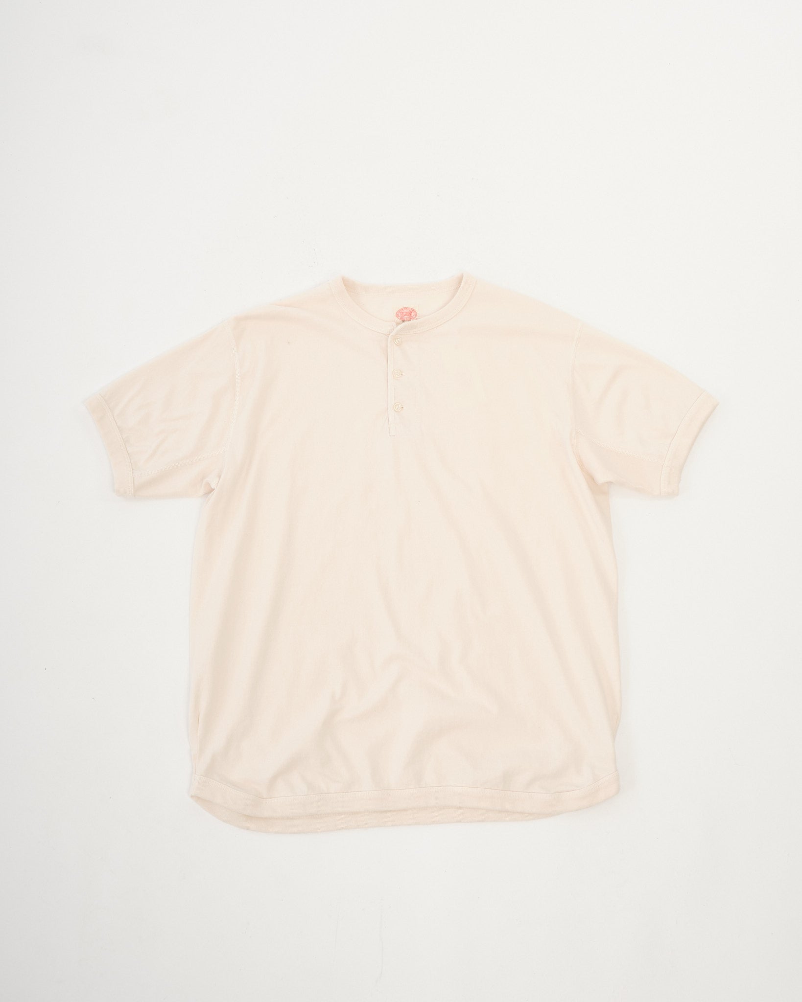 Circular knit to size on vintage machines, this tee has no side seams, giving it a clean fit that molds to your body with wear. The Henley neckline adds versatility, with a finer binder than standard tees for a casual, rugged edge when left open. A unique spinning method traps air inside the yarn, creating a soft-yet-substantial feel, while the 4-needle flat seam stitching ensures irritation-free wear.