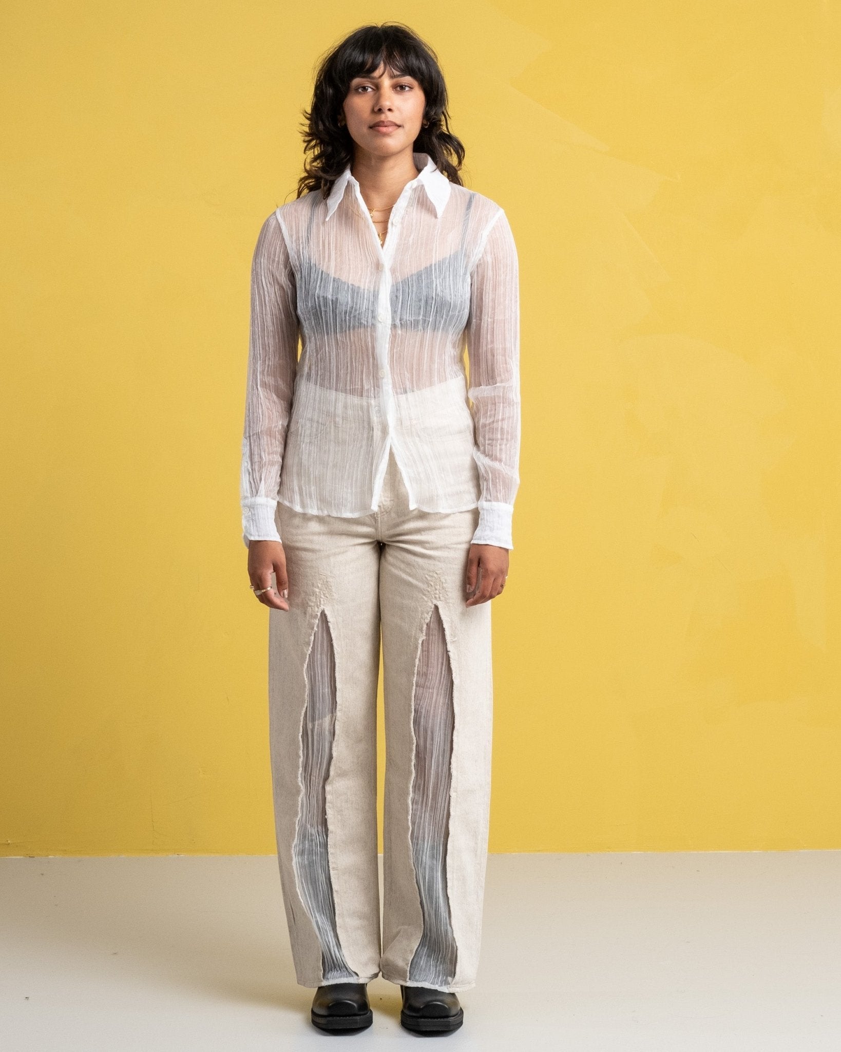 70s Line Shirt Milky Quartz Pleat
