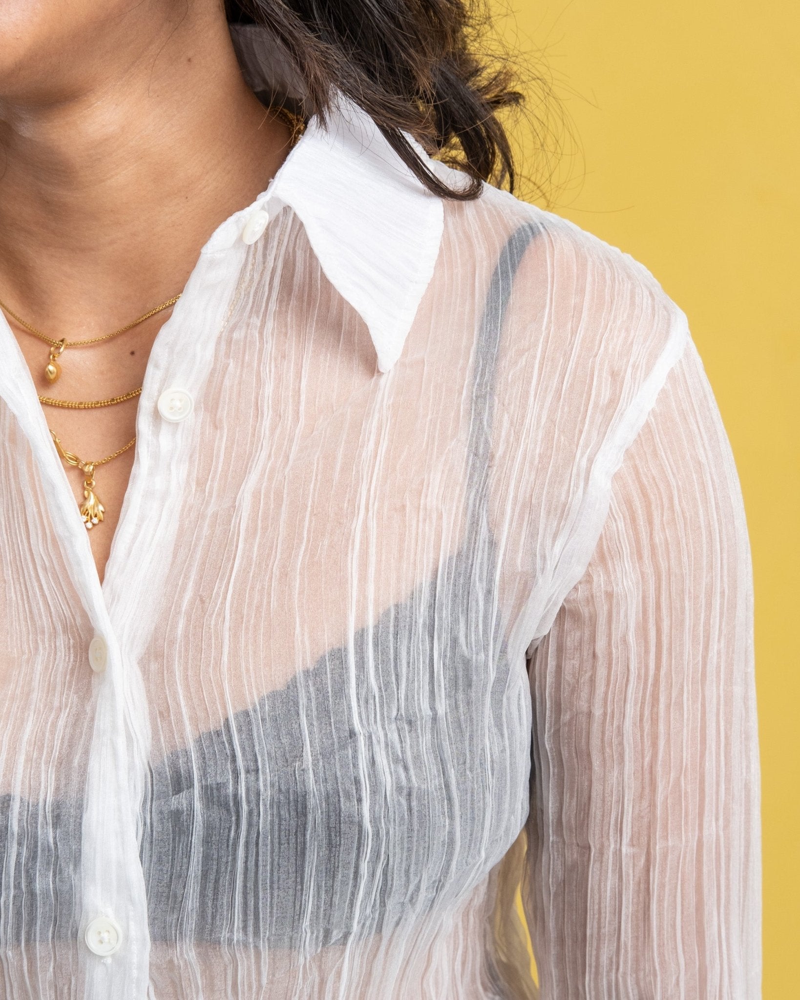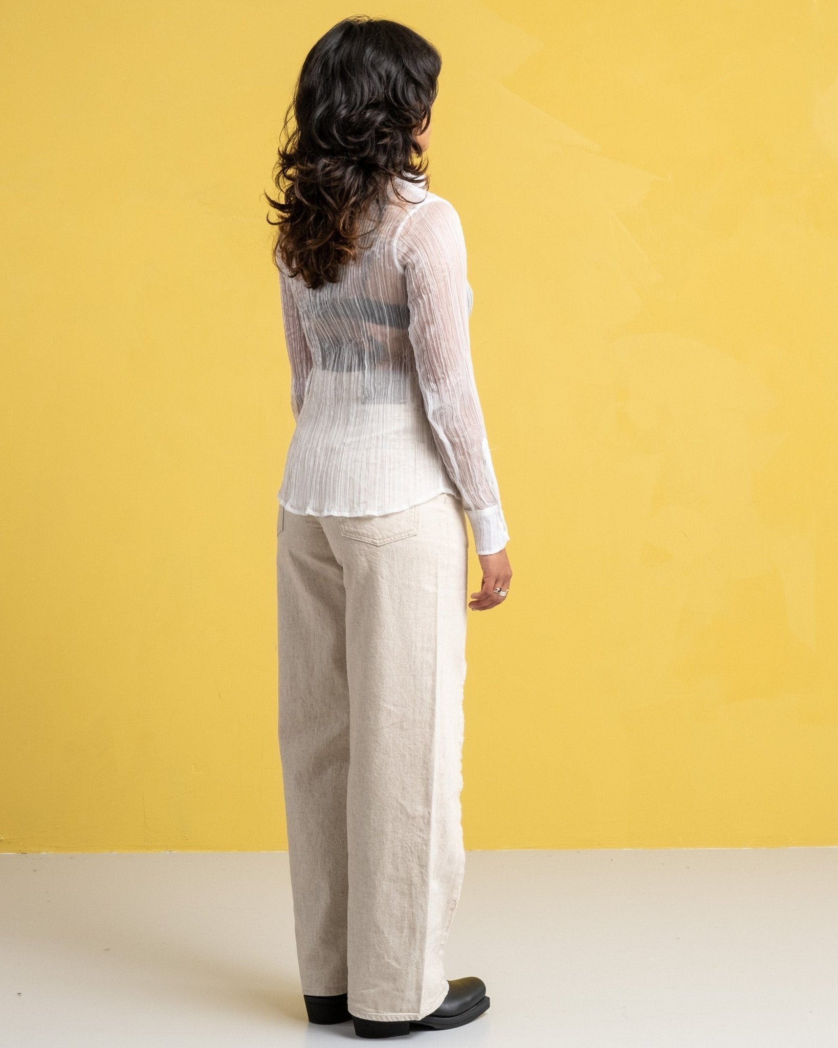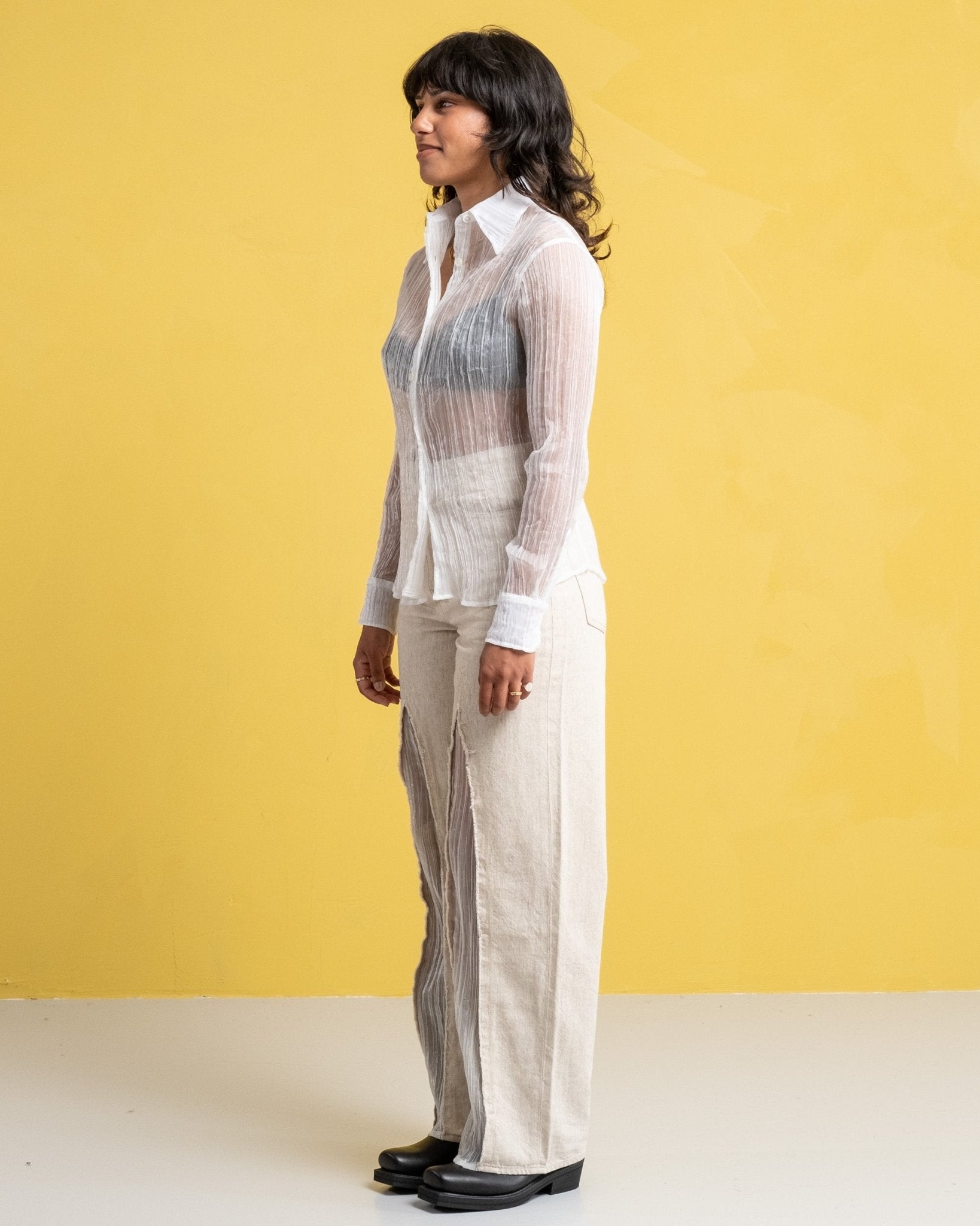 70s Line Shirt Milky Quartz Pleat fra Our Legacy er skåret fra et smukt fransk gennemsigtigt stof med en ren plisseret tekstur. Du har den buede kant, perlemorsknapper og en ret generøs 70'er krave.