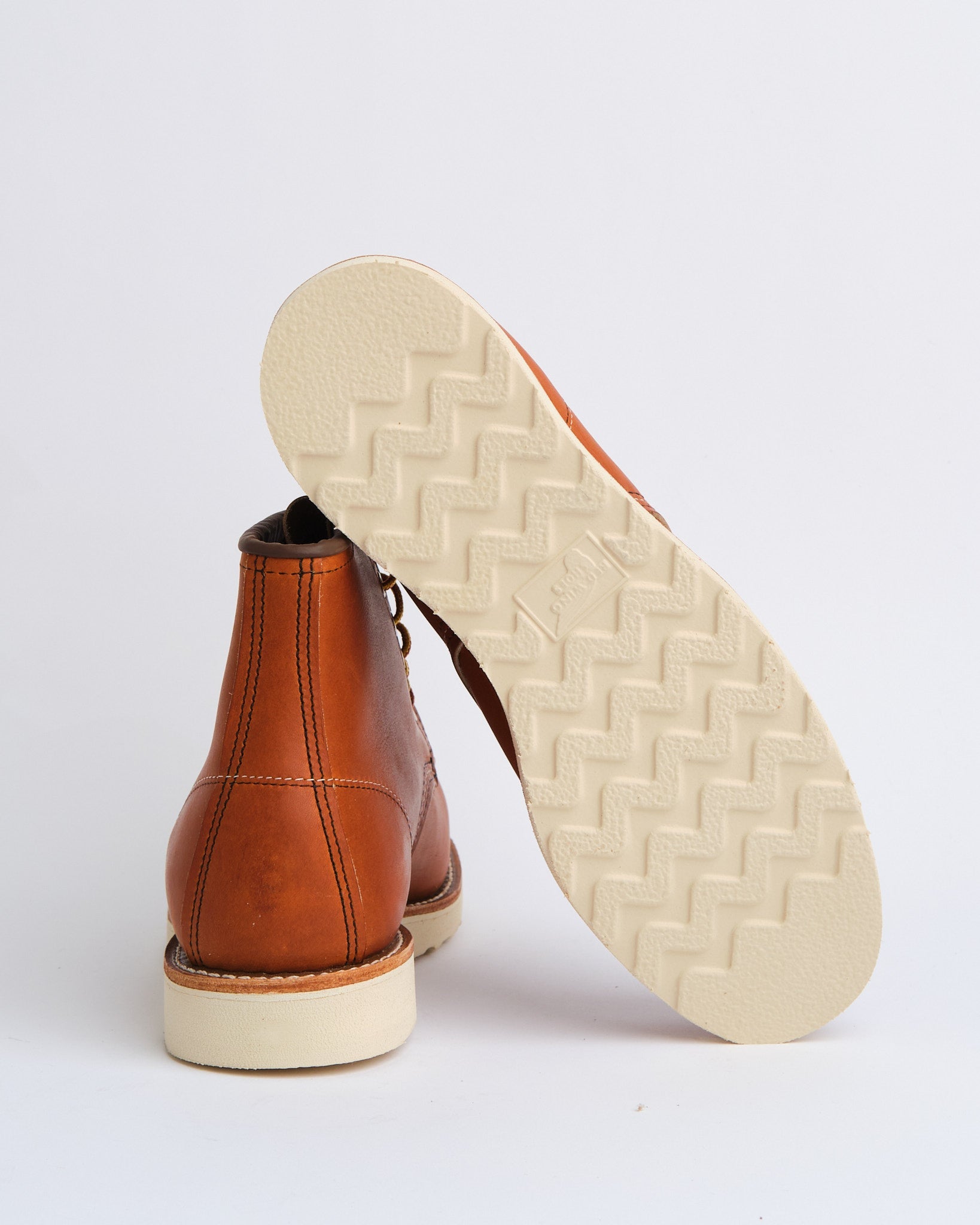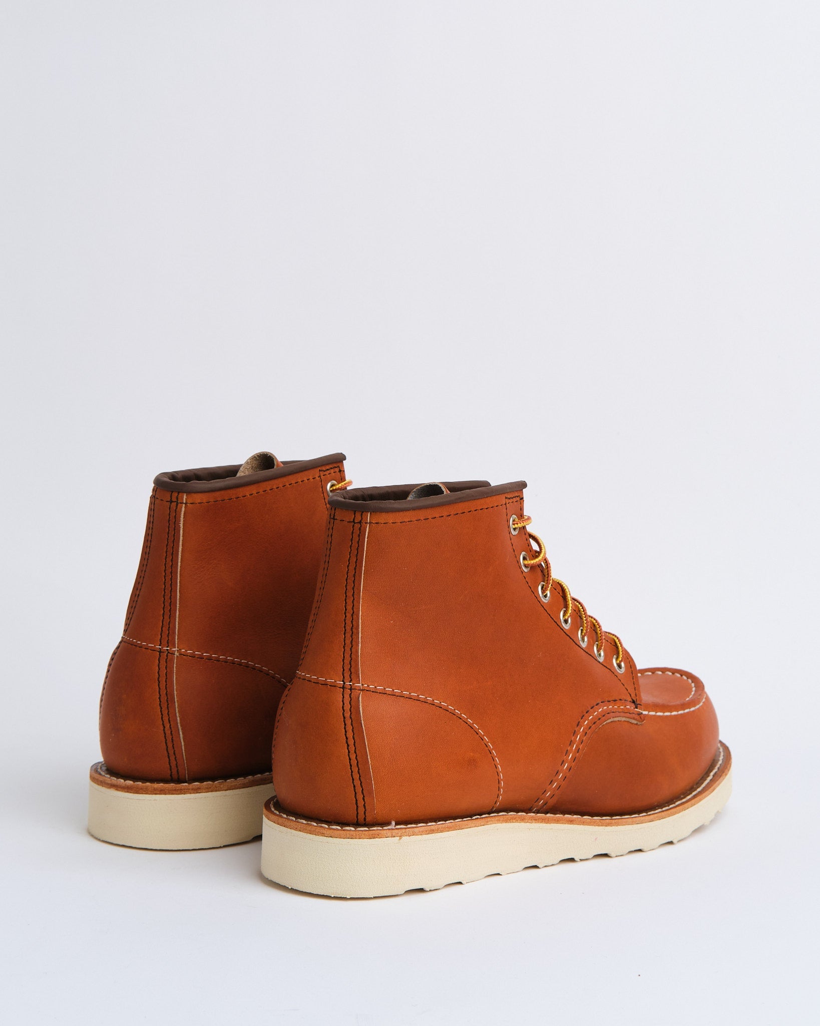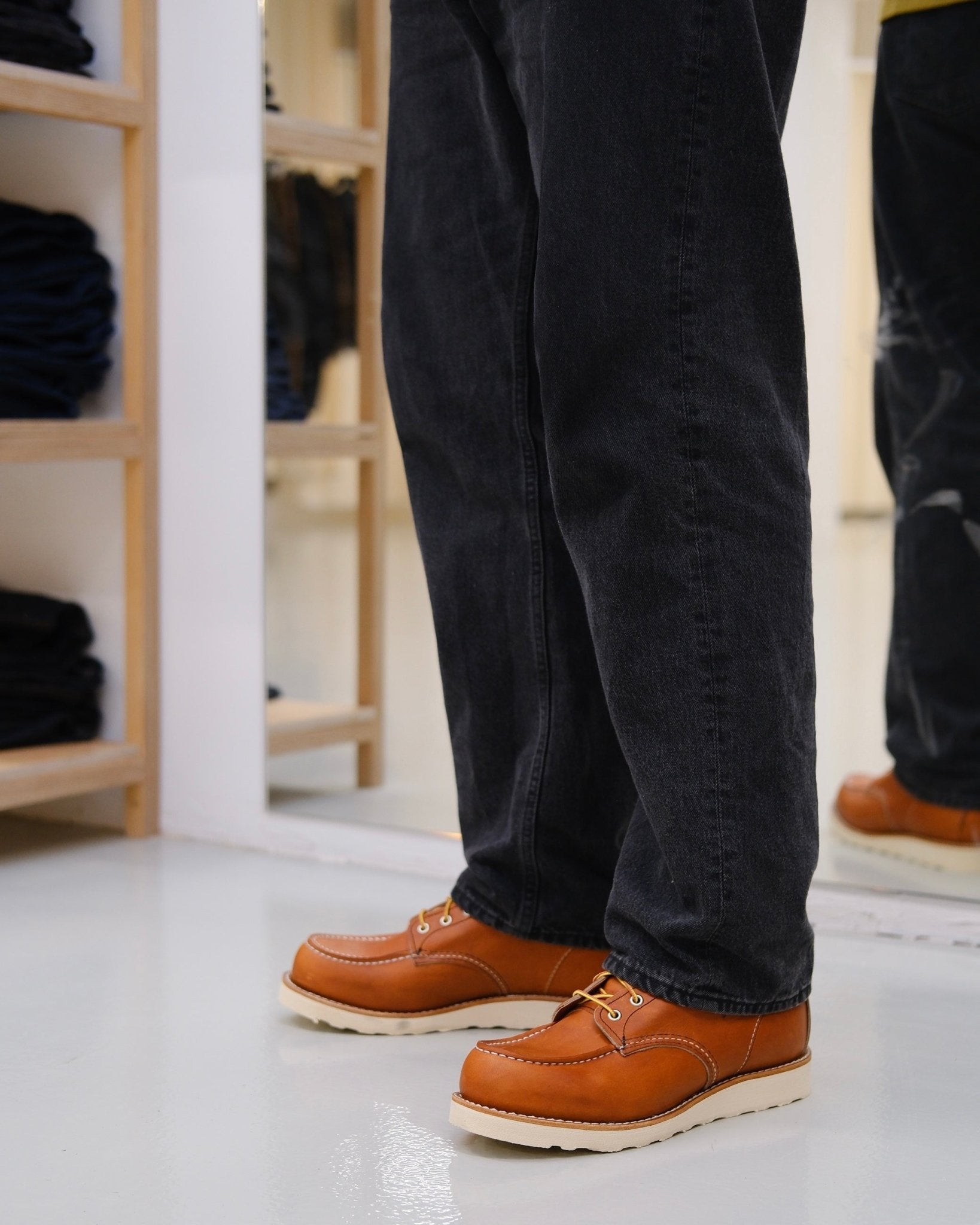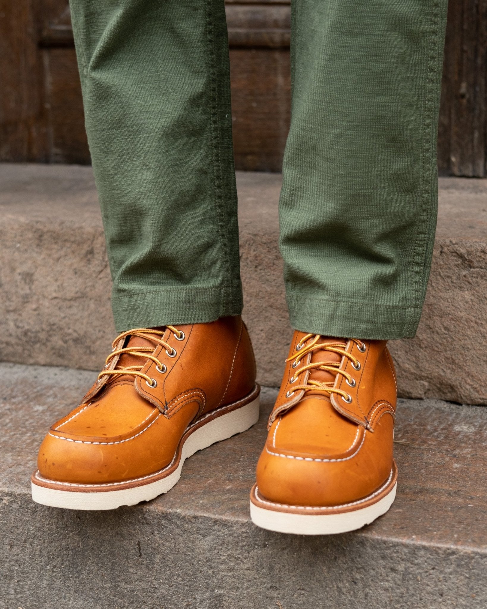 Forvand dig selv i fodtøjets historie med 875 CLASSIC MOC TOE i ORO LEGACY fra RED WING SHOES. Siden dens etablering i 1952 har Classic Moc været en favorit blandt atleter, landmænd og fabriksarbejdere ens, for dens holdbarhed og uovertrufne komfort. I dag fortsætter denne støvle med at kropsliggøre tidløshed ved at kombinere Moc tå konstruktion med de ikoniske Traction Tred gummisåler. Med puritanske syninger og en pålidelig Goodyear welt, eksemplificerer denne støvle vedvarende styrke og tidløs sofistikation.