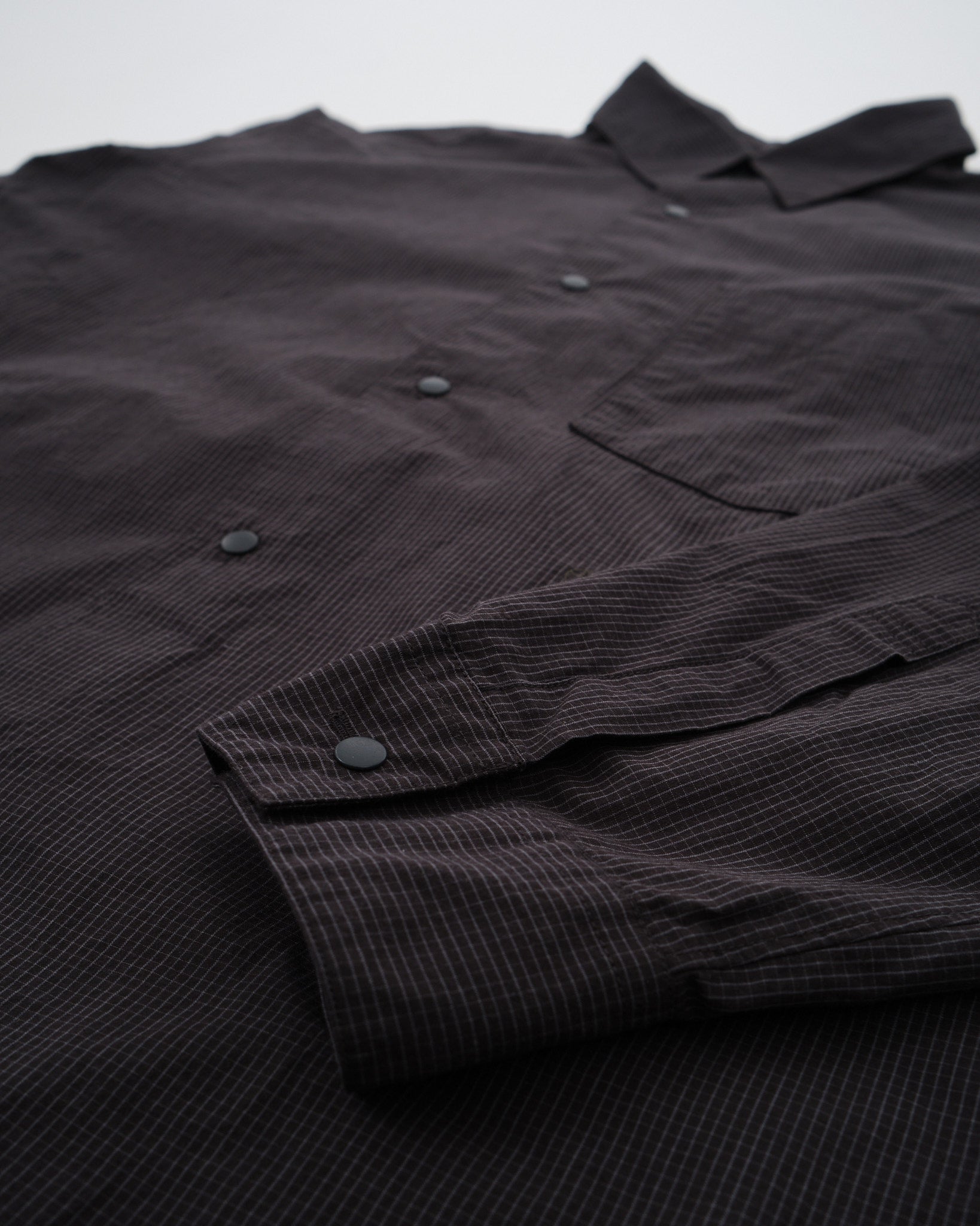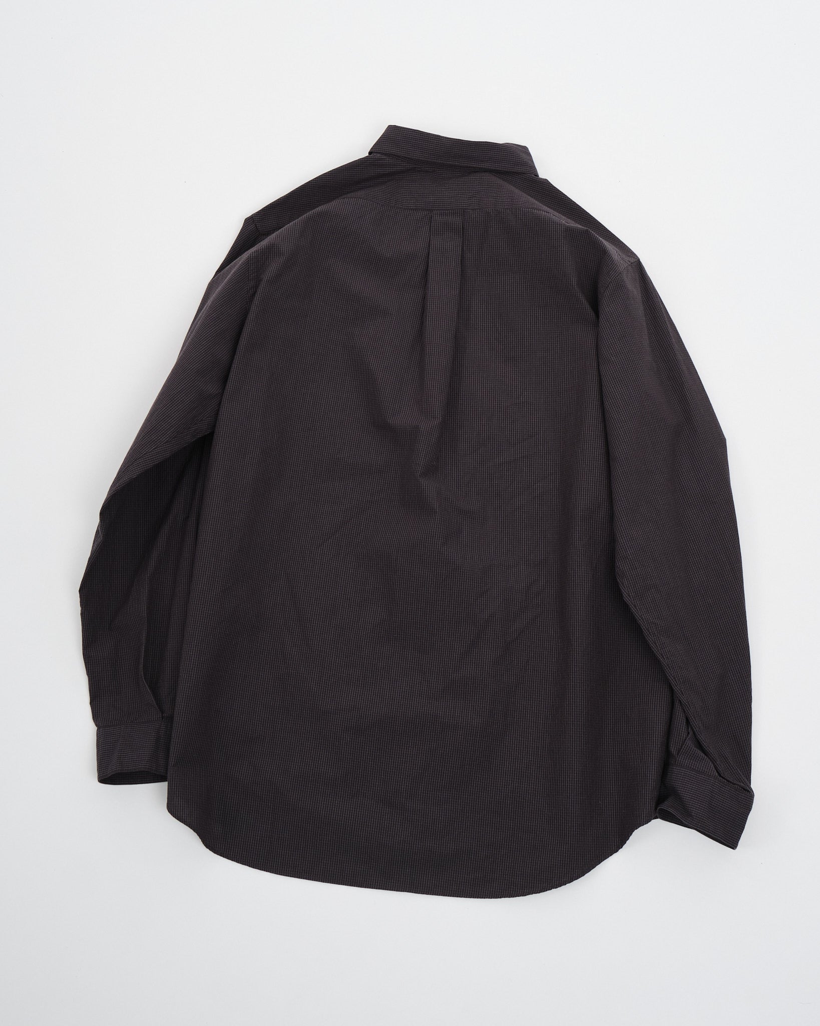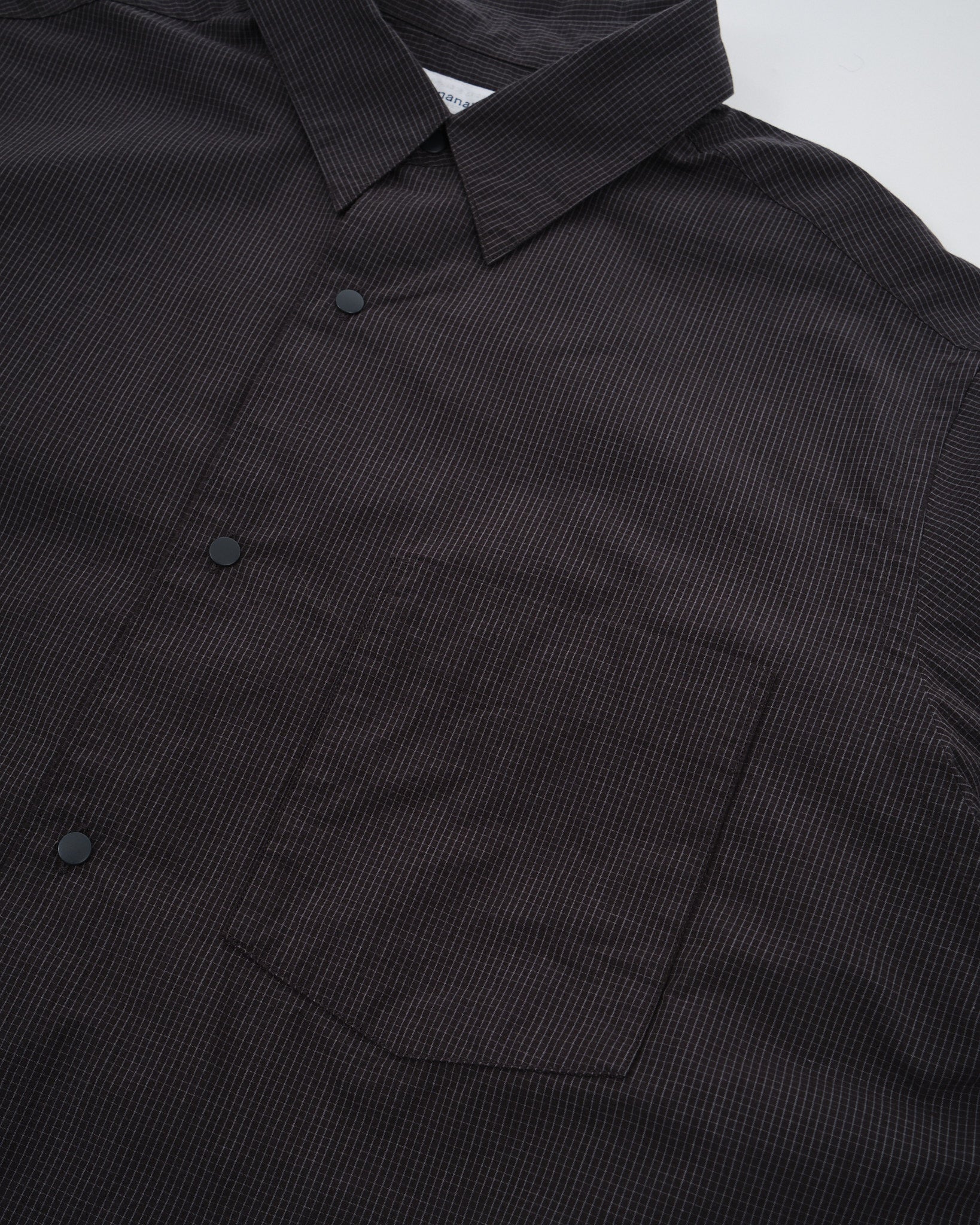 Træd ind i raffineret sofistikation med Nanamicas Regular Collar Wind Shirt i en dyb Charcoal nuance. Skjorten forener traditionel tiltrækning med nutidig elegance. Dets unikke broadcloth stof, fremstillet af dækkende kerneyarn, er tankefuldt designet med bomuld, der omslutter en polyesterkerne. Sammenlignet med standard SUGS307, praler den af en lettere stoftextur og tilbyder en silhuet, der er omtrent en størrelse smallere. Skjorten prydes af et klassisk graf check mønster, der subtilt forhøjer dens æstetiske appel. For at komplementere dens design, er alle knapper stylet som prikknapper, ledsaget af dekorative knaphuller, for det ekstra touch af finesse.