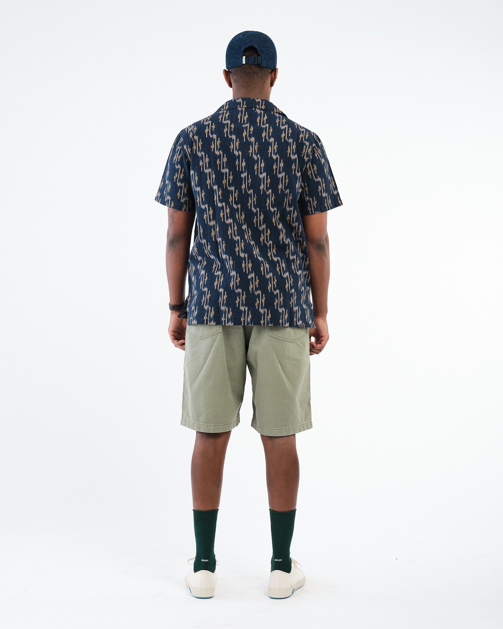 Fremstillet af 100% økologisk bomuld, sikrer Arvid Ikat Skjorten en blød og åndbar oplevelse, der holder dig komfortabel hele dagen. De korte ærmer, camp-krave, og lige kant med sideslidser bidrager til dens afslappede og casual vibe, hvilket gør den til et ideelt valg til varmt vejr.