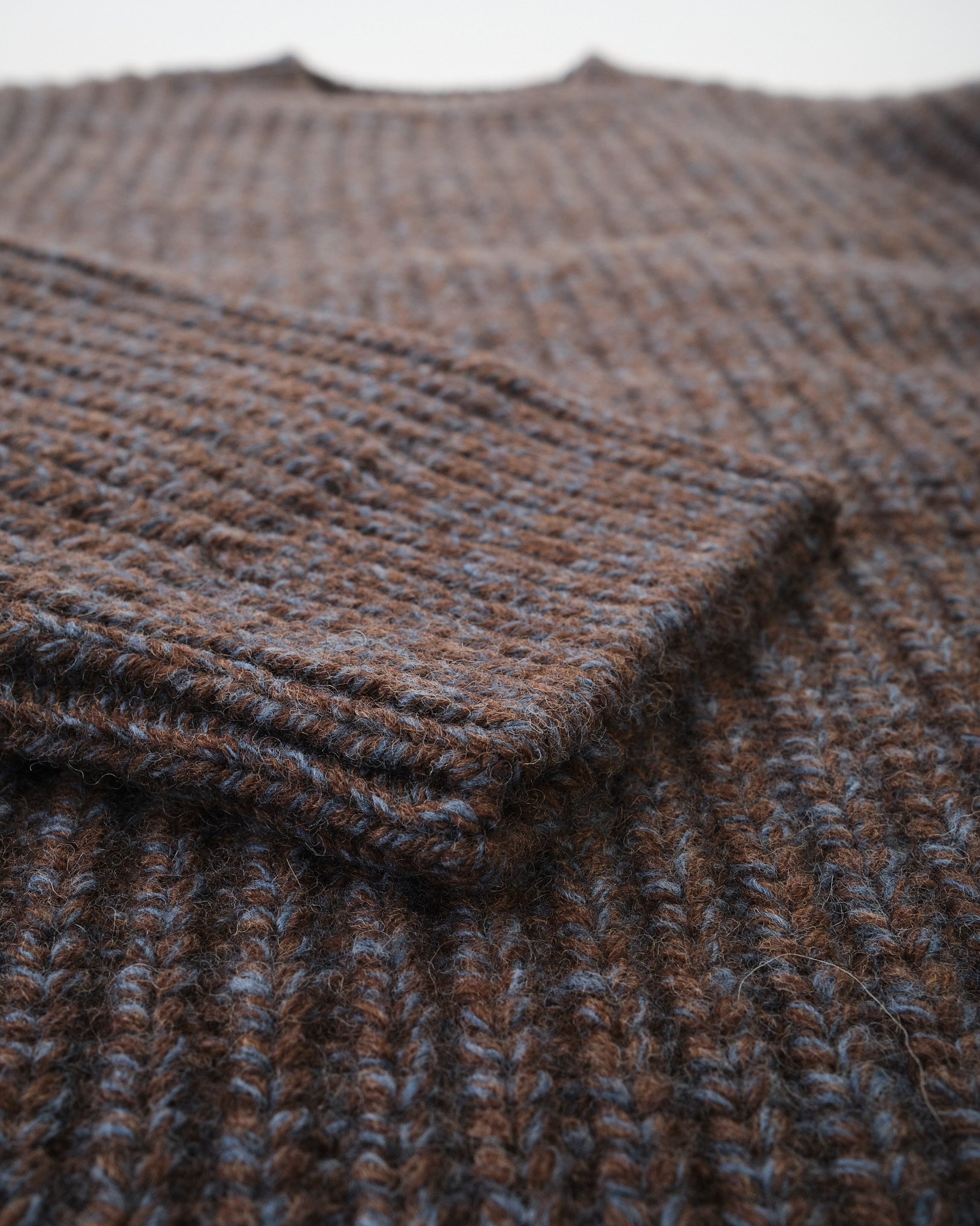 August Chunky Crew Neck Knit i brun bringer seriøs tyngde på den bedste måde. Fremstillet af tyk, blød økologisk uld, handler denne sweater om volumen og varme. Den er strikket i en traditionel fiskerribstrik, der skaber et dybt tekstureret stof med hyggelig løft. Fuldt formet og regelmæssig i pasformen, er August den type strik, der føles både robust og raffineret - uanset om du lægger lag på eller gør den til hovedbegivenheden.