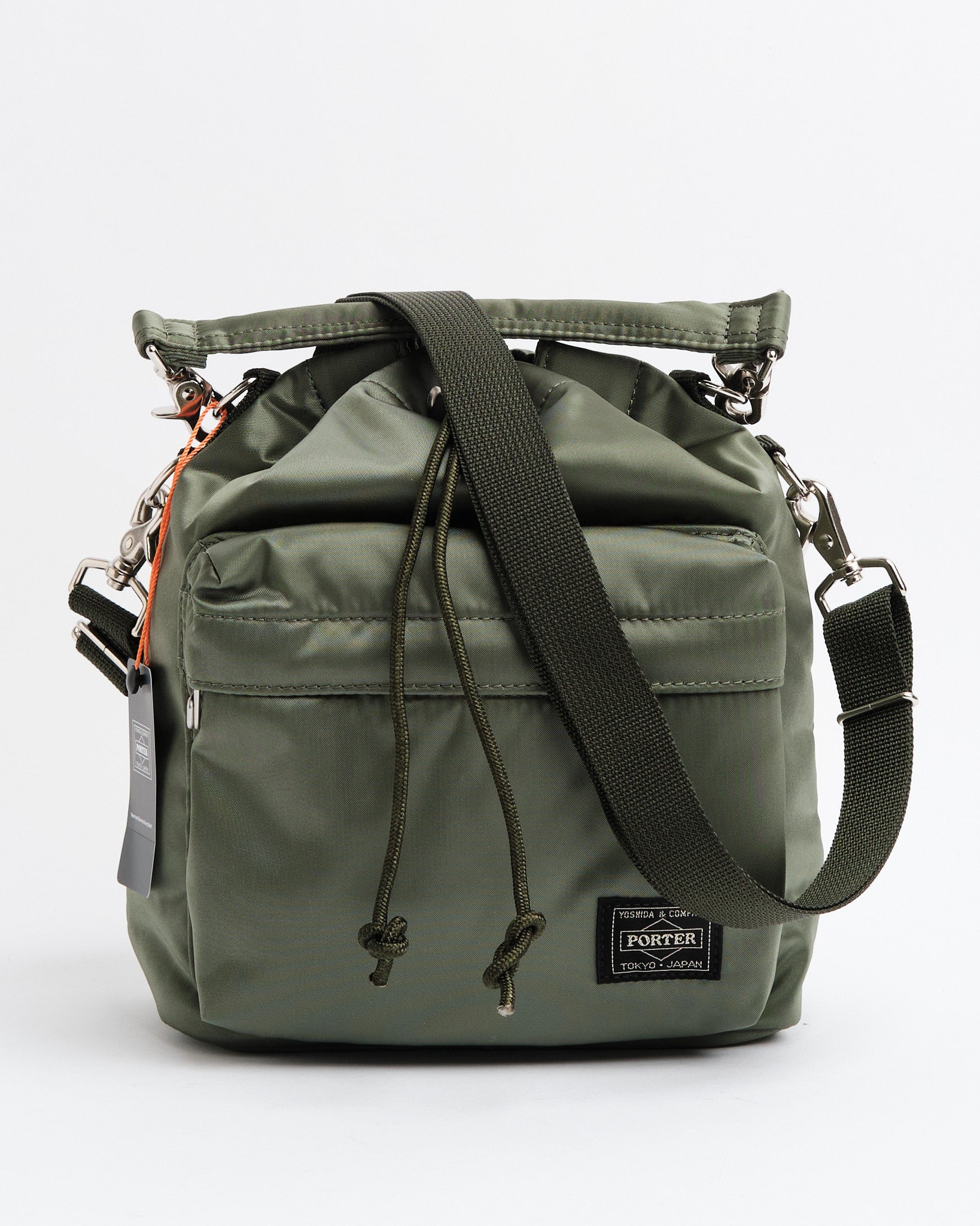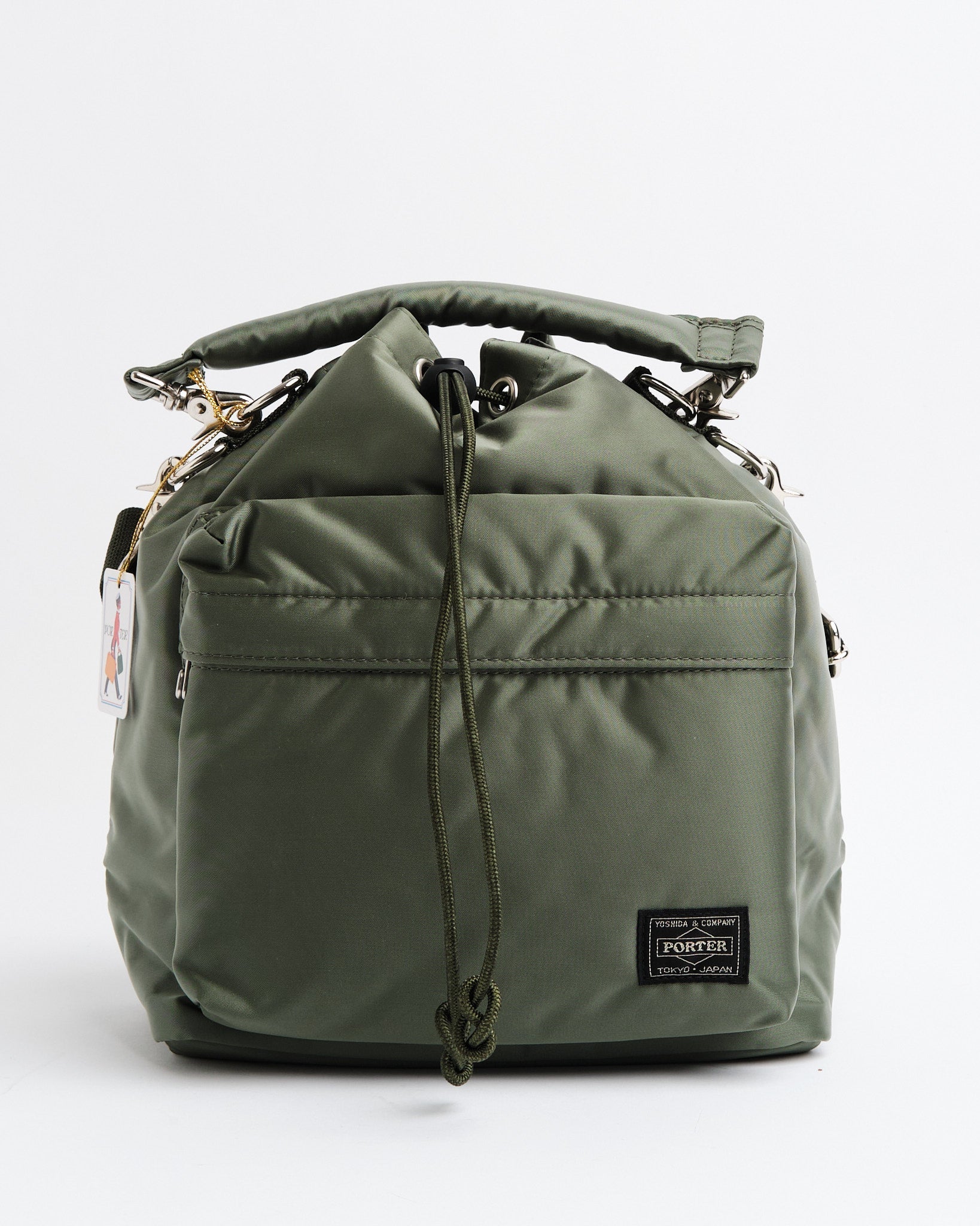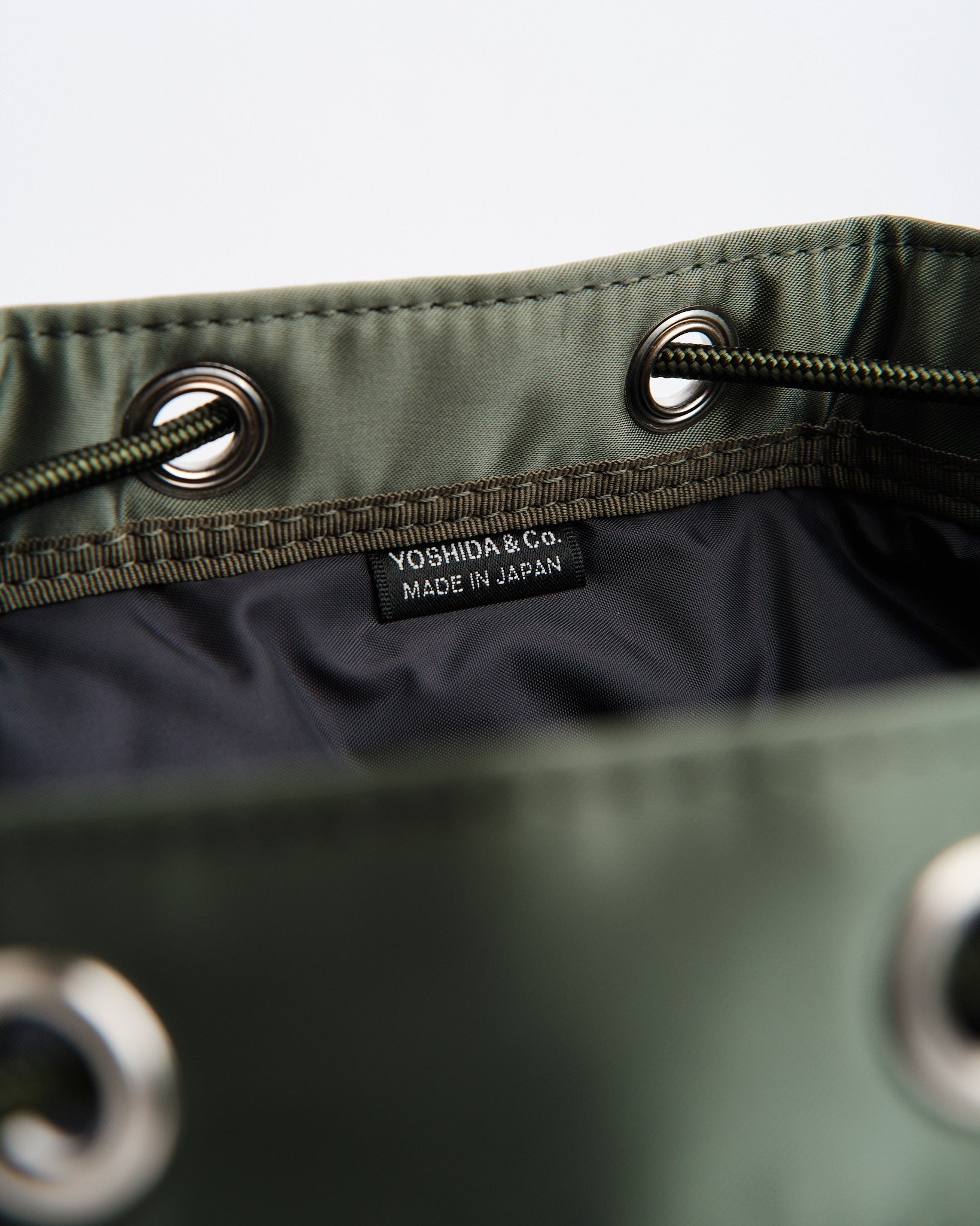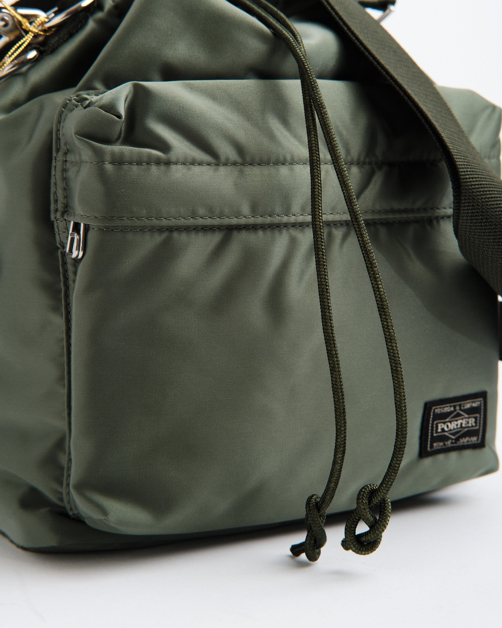 Tjek PORTER YOSHIDA 381-16853-30 BALLOON BAG (L) ud i en dejlig SAGE GREEN skygge. Denne taske henter inspiration fra poser brugt til at bære små genstande og har en unik afrundet form. Fremstillet af nylon twill stof med en bomuldsbindingsproces har den en glans og føles luksuriøst blød at røre ved. Den øverste snørelukning giver adgang til hovedrummet, mens den justerbare snorstopper giver dig mulighed for at tilpasse taskens form. Den leveres med håndtag og en skulderrem for alsidige bæremuligheder. Tasken har to snore, en i orange design og en anden, der matcher taskens farve, hvilket giver fleksibilitet til at matche forskellige stilarter og lejligheder. Interiøret er elegant foret i marineblåt. Med dimensioner på B; 220mm, H; 290mm, D; 130mm (B; 8,7in, H; 11,4in, D; 5,1in) og en vægt på 432g (15,2oz) er denne rummelige taske perfekt til at holde genstande, som en 500ml vandflaske eller tablet.