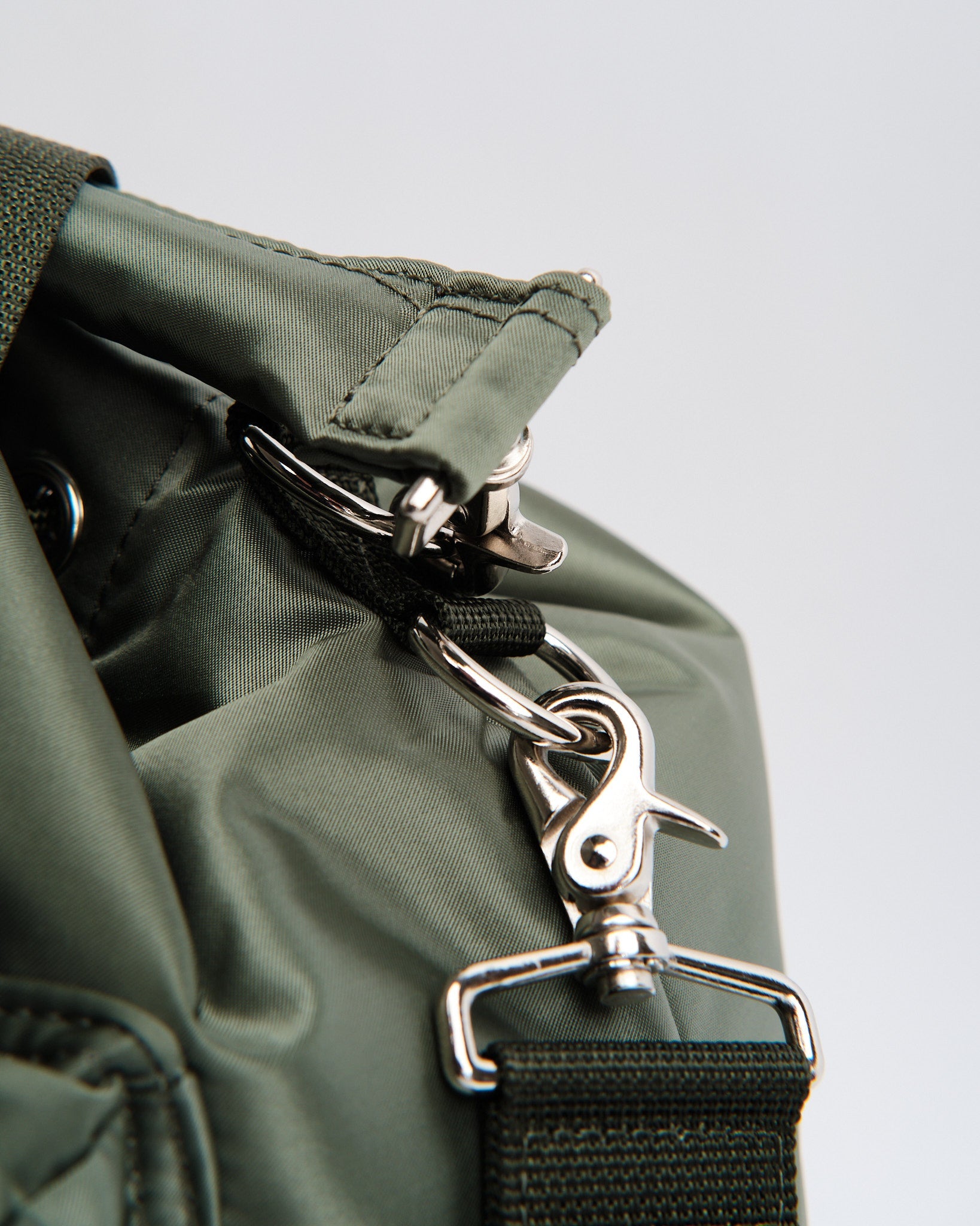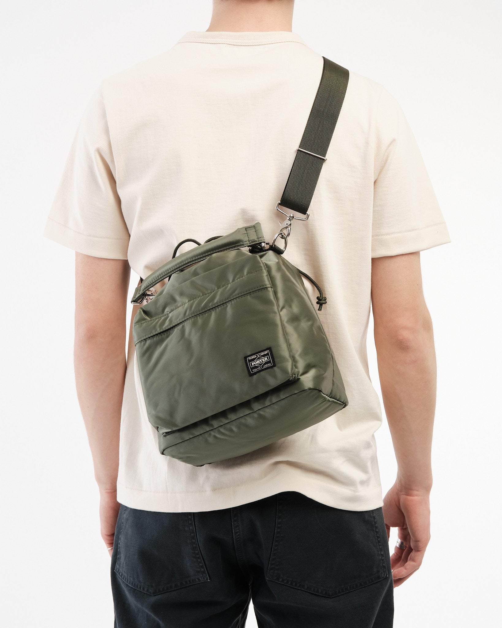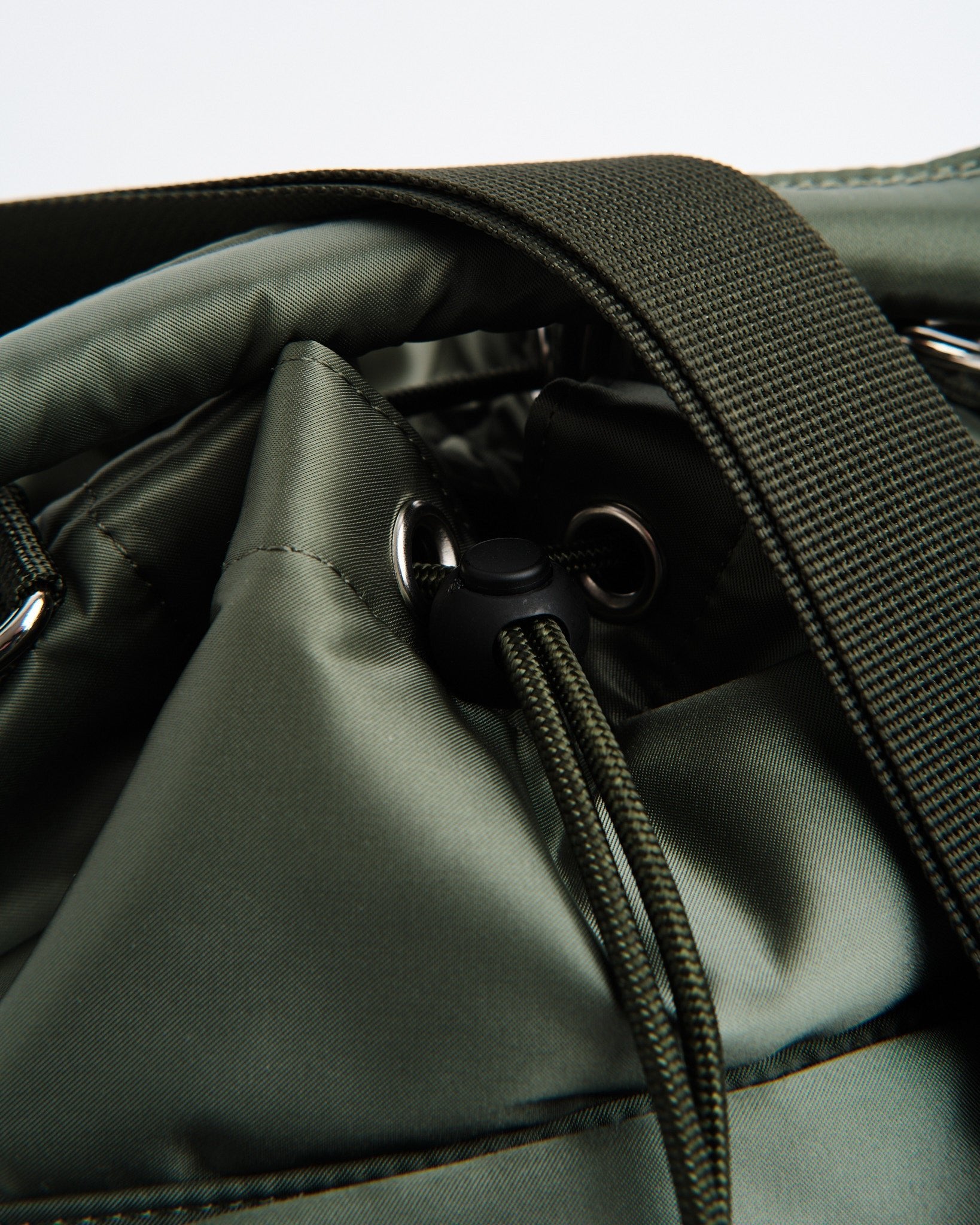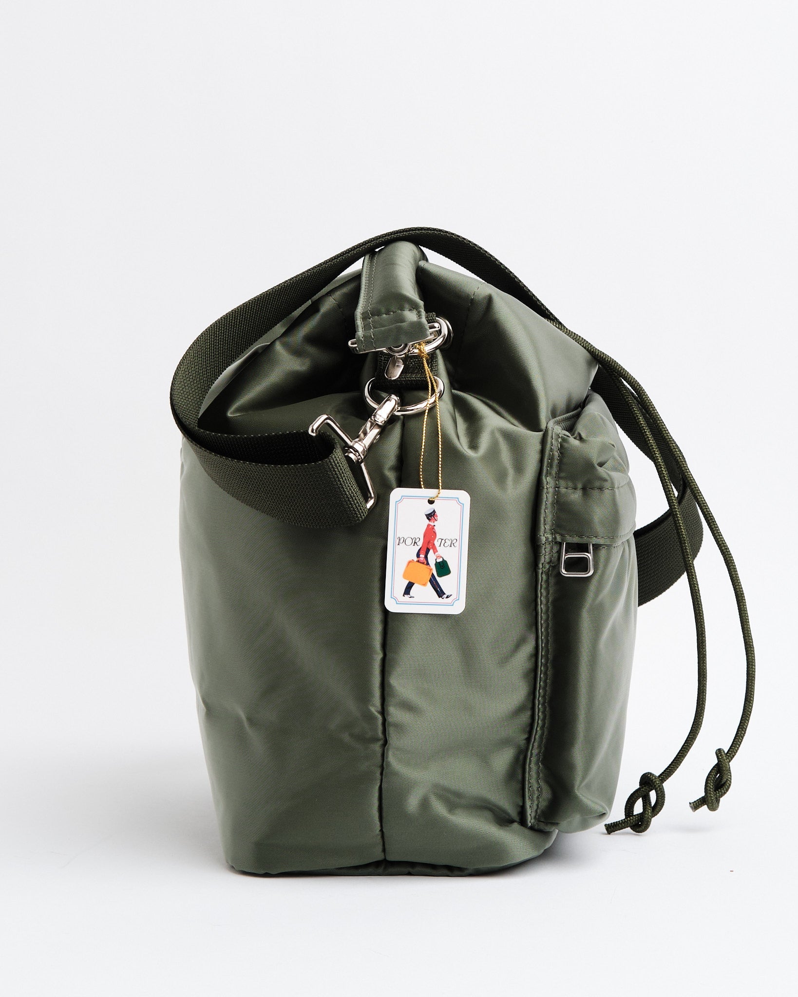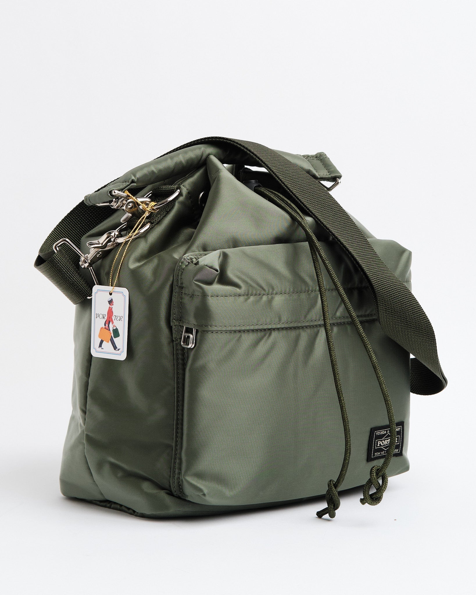 Tjek PORTER YOSHIDA 381-16853-30 BALLOON BAG (L) ud i en dejlig SAGE GREEN skygge. Denne taske henter inspiration fra poser brugt til at bære små genstande og har en unik afrundet form. Fremstillet af nylon twill stof med en bomuldsbindingsproces har den en glans og føles luksuriøst blød at røre ved. Den øverste snørelukning giver adgang til hovedrummet, mens den justerbare snorstopper giver dig mulighed for at tilpasse taskens form. Den leveres med håndtag og en skulderrem for alsidige bæremuligheder. Tasken har to snore, en i orange design og en anden, der matcher taskens farve, hvilket giver fleksibilitet til at matche forskellige stilarter og lejligheder. Interiøret er elegant foret i marineblåt. Med dimensioner på B; 220mm, H; 290mm, D; 130mm (B; 8,7in, H; 11,4in, D; 5,1in) og en vægt på 432g (15,2oz) er denne rummelige taske perfekt til at holde genstande, som en 500ml vandflaske eller tablet.
