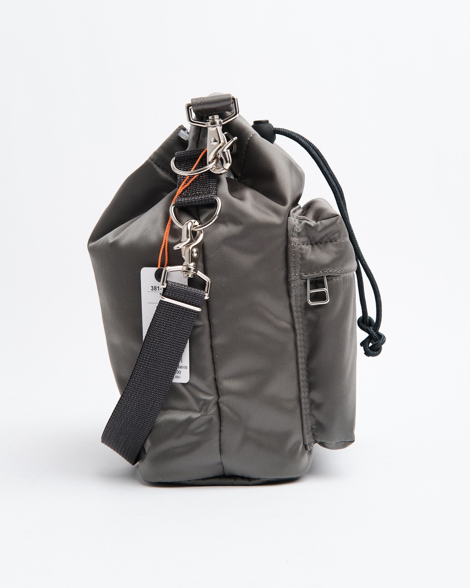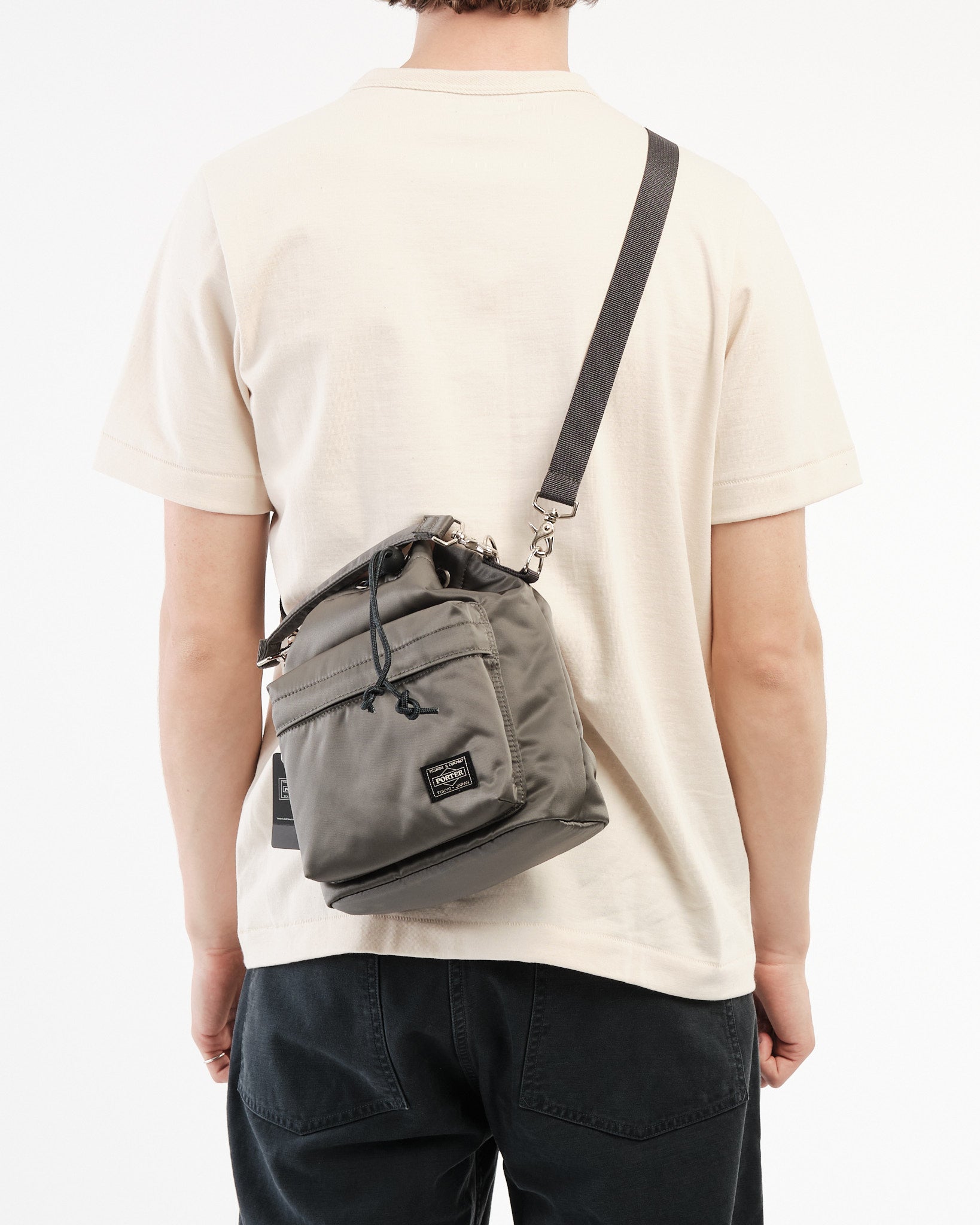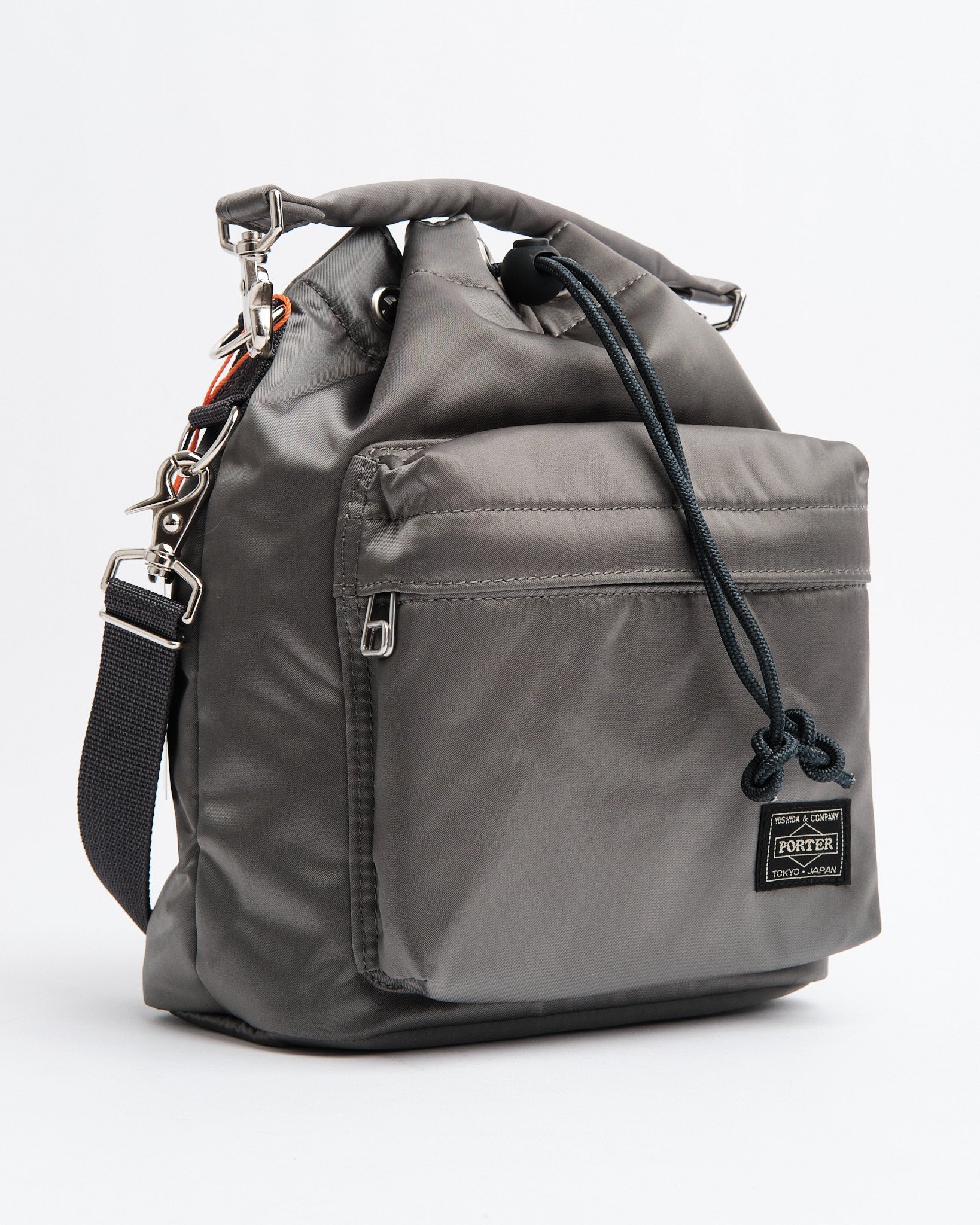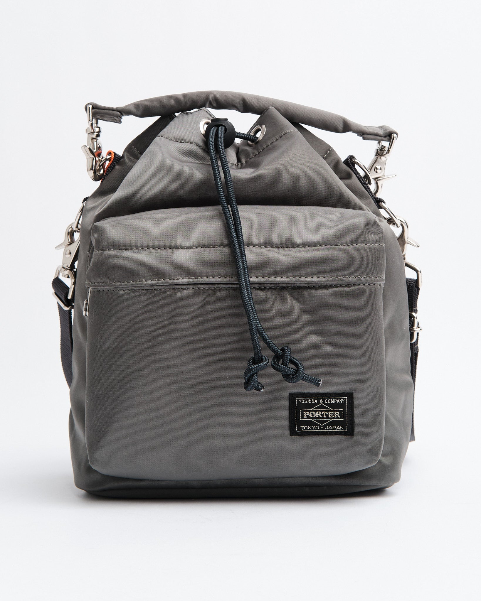 Den PORTER by Yoshida Balloon Bag (S) i Silver Gray er et kompakt og alsidigt tilbehør, der kombinerer minimalistisk design med praktisk funktionalitet. Fremstillet af blank nylon-bomuld twill stof, tilbyder den en subtil glans og blød tekstur, hvilket sikrer både holdbarhed og elegance. Det rummelige hovedrum er sikret med en justerbar bungee toggle-lukning, der holder dine ejendele sikre. Derudover har tasken en forlomme med lynlås for nem adgang til nødvendigheder og en skjult indvendig velcrolomme til værdigenstande. Med aftagelige tophåndtag og en justerbar skulderrem kan den bæres som en håndtaske eller bæres over skulderen. Håndlavet i Japan, eksemplificerer denne Balloon Bag PORTERs forpligtelse til kvalitet og opmærksomhed på detaljer.
