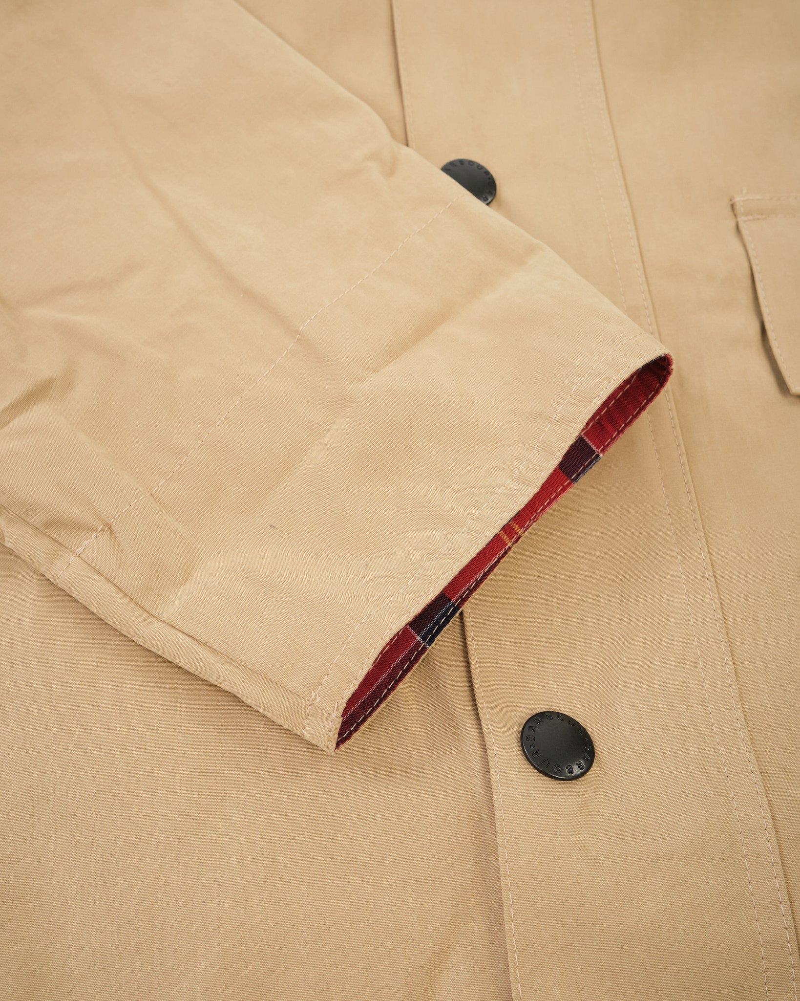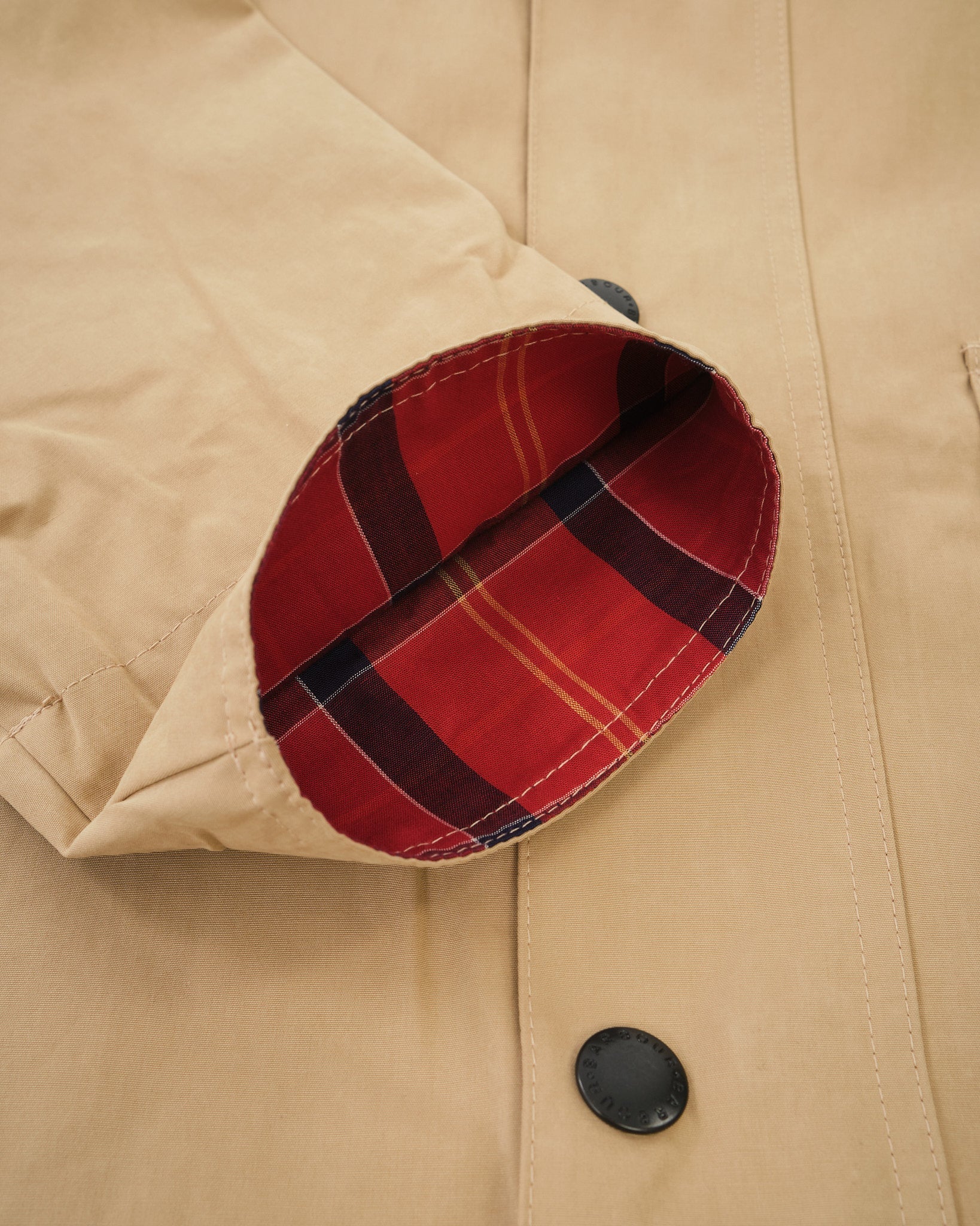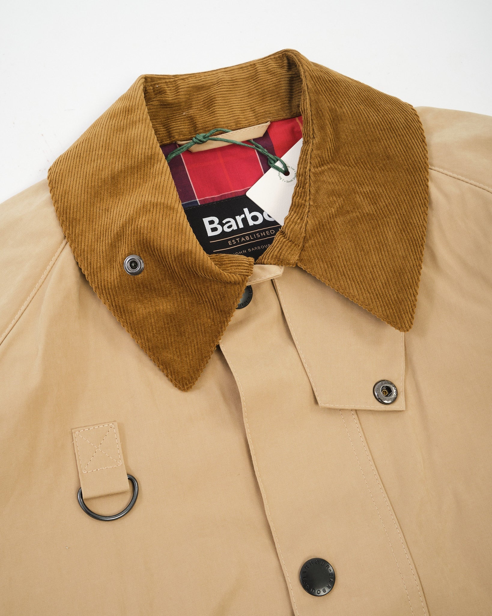 Barbour Solar Spey Casual Jakken i Stone er en begrænset udgave genfortolkning af den klassiske Spey silhuet, udgivet i fejring af det kinesiske nytår. Fremstillet af Barbours signaturvoksede bomulds-touch stof, tilbyder den et letvægts, vejrbestandigt yderlag med en skarp finish. Interiøret har en dristig rød version af Barbours ikoniske tartanfor, som symboliserer god formue i kinesisk kultur. Designdetaljer inkluderer en fløjlskrave med halsrem, to store forlommer med flap, en lynlås foran med snap-luk stormplakette, og en rød topknaplukning ledsaget af et Barbour Lunar New Year nåleemblem. Denne jakke blander arv design med festlige detaljer, hvilket gør den til et fremtrædende stykke for sæsonen.