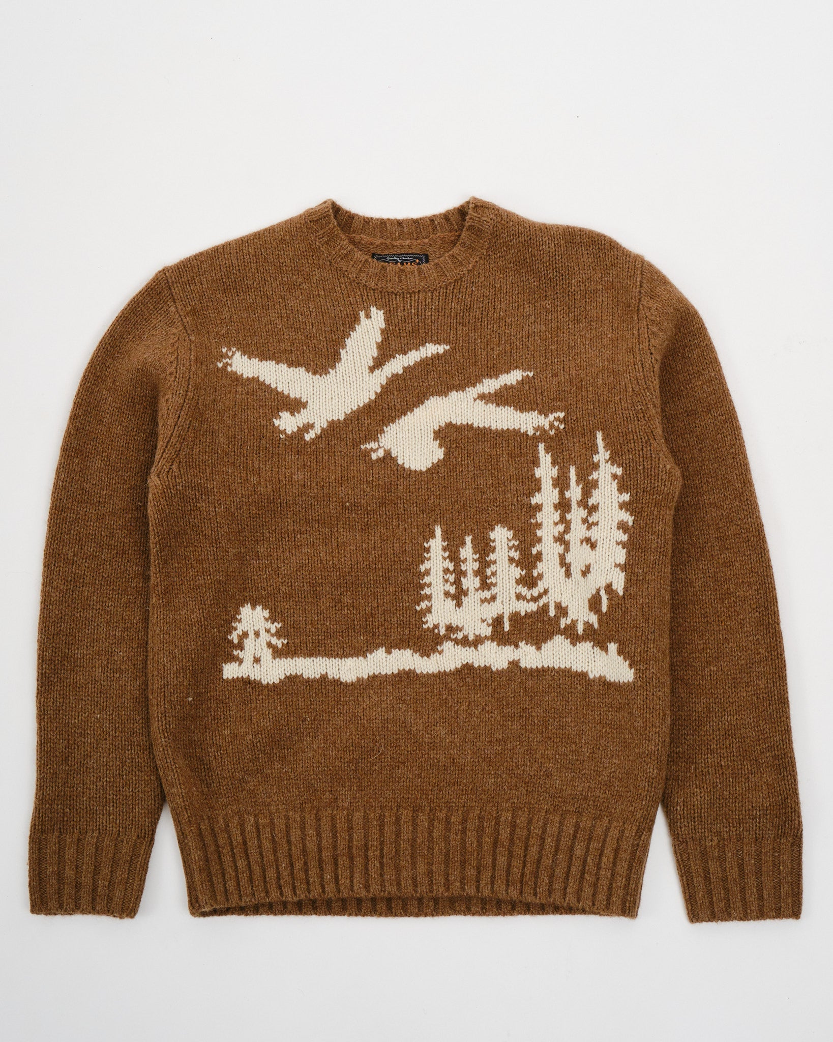 Beams+ Crew Neck Intarsia 3G Brown Duck er et tidløst tilføjelse til enhver tøjsamling. Fremstillet af høj kvalitet Shetland uld har denne sweater et fængslende ændedesign, der gør den virkelig iøjnefaldende. Det er vigtigt at nævne, at størrelserne er en smule små, så det er rådeligt at gå en størrelse op, hvis du foretrækker en mere afslappet fornemmelse. Sweaterens holdbarhed og komfort forbedres yderligere af dens ribstrikkede krave, manchetter og kant, hvilket giver et stilfuldt lag, der er perfekt til enhver afslappet lejlighed.