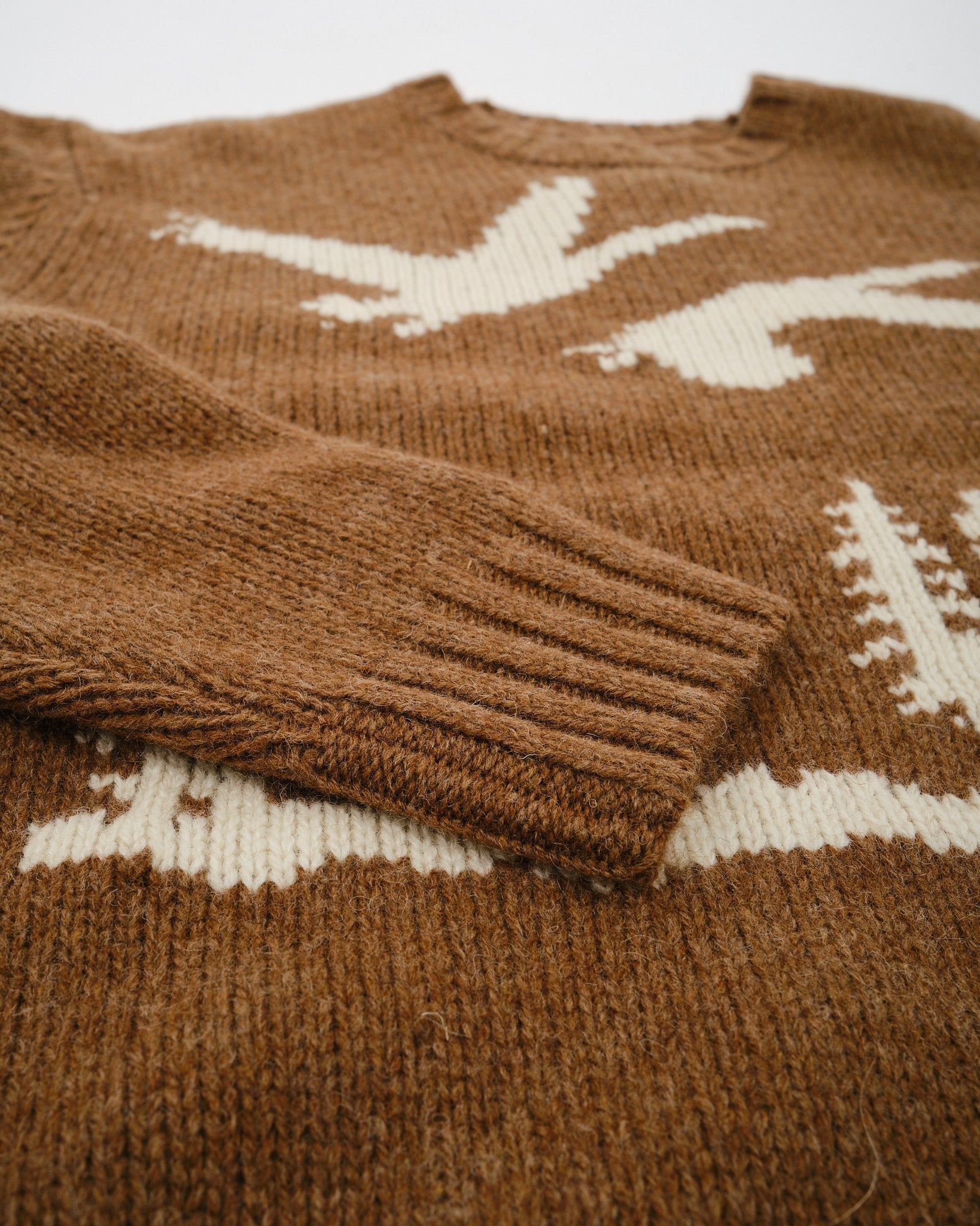 Unikt Intarsia Design: Har et detaljeret og iøjnefaldende intarsia andedesign, der adskiller det fra typisk striktøj.