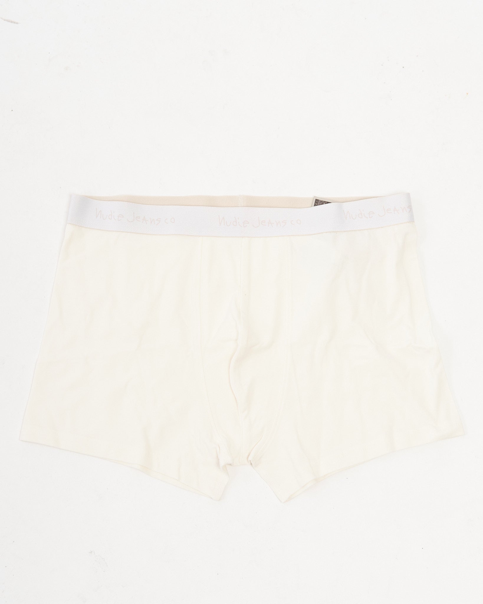 The Nudie Jeans Co Boxer Briefs 3-pack i Offwhite kombinerer komfort, kvalitet og bæredygtighed. Fremstillet af 95% økologisk bomuld og 5% elastan, er disse boksershorts bløde, åndbare og giver en perfekt pasform med ekstra stræk for nem bevægelse. Den neutrale offwhite farve tilføjer et rent, tidløst look til dine essentielle. Med en komfortabel elastisk taljebånd med Nudie Jeans Co logoet, er disse boksershorts designet til hverdagsbrug. Fremstillet med Nudies dedikation til miljøbevidst produktion, tilbyder denne 3-pak pålideligt, holdbart undertøj, der prioriterer både komfort og ansvarlig mode.