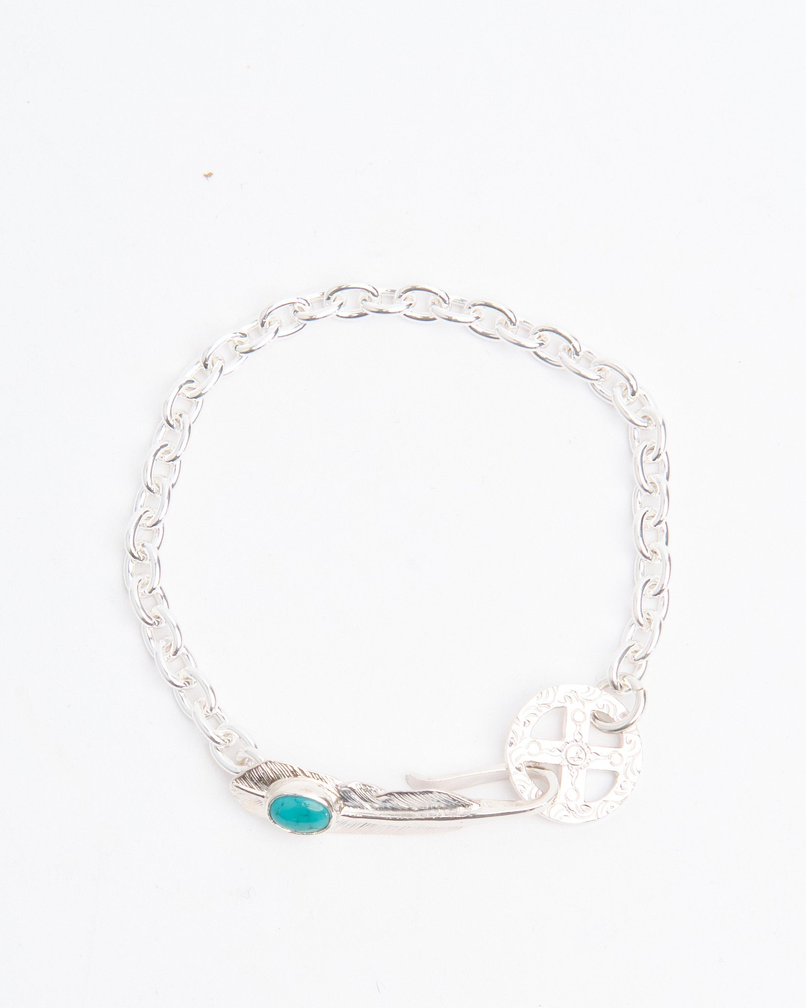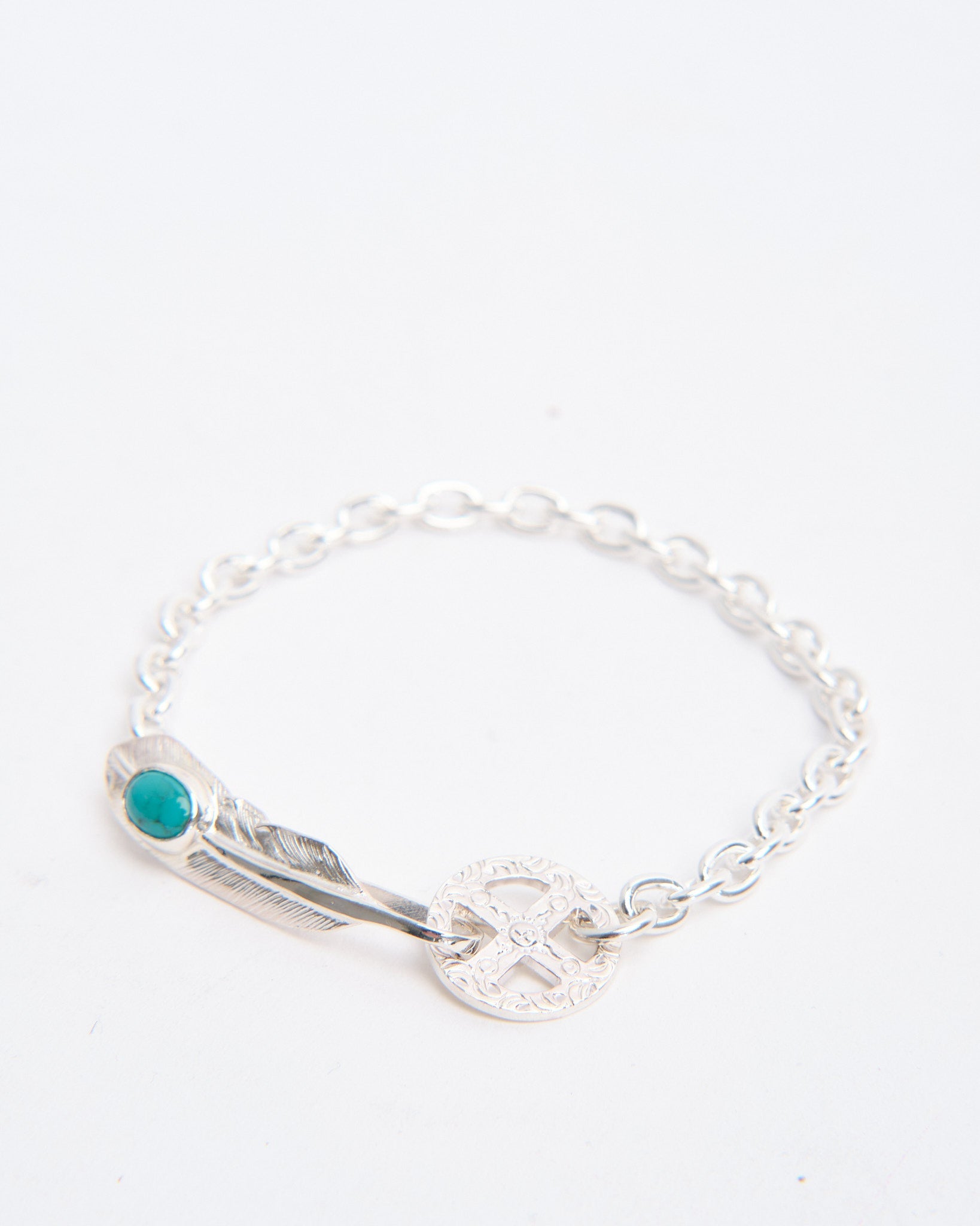 BR-307 S FEATHER HOOK+MEDICINE WHEEL CHAIN BRACELET WITH TURQUOISE Msize