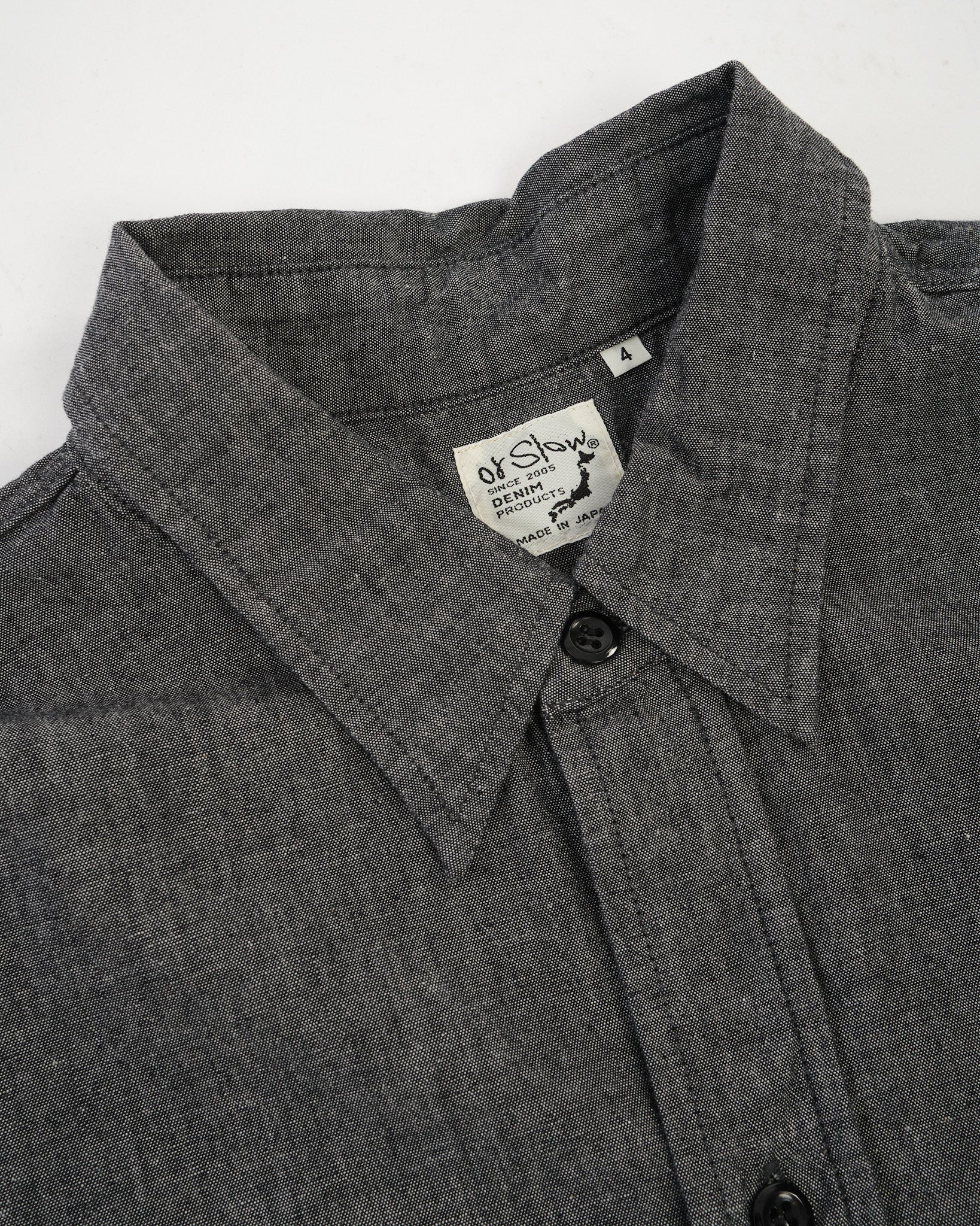 Den orSlow Chambray Arbejdsskjorte i Sort (01-8064-61) er en moderne fortolkning af den klassiske arbejdstøj. Fremstillet i Japan af let bomuld chambray, tilbyder den den perfekte balance mellem holdbarhed og åndbarhed. Subtil tekstur, tredobbelt-nål syning, og praktisk lommedetalje gør denne skjorte til en, der vil ældes smukt med brug. Den afslappede pasform sikrer komfort og alsidighed - nem at lag-på, nem at leve i. Et tidløst stykke, lavet med orSlows signatur dedikation til langsom, omhyggelig produktion.