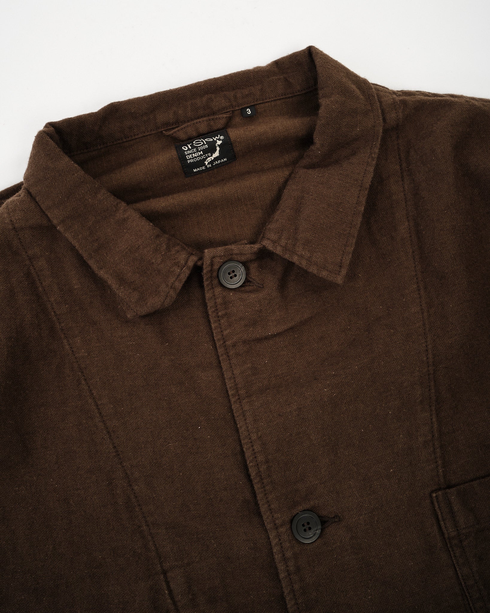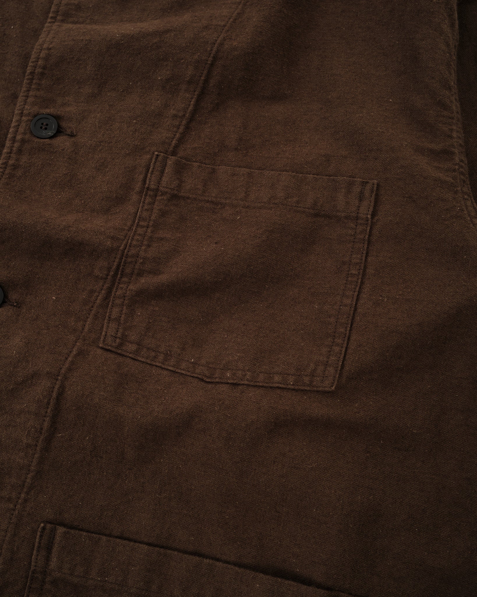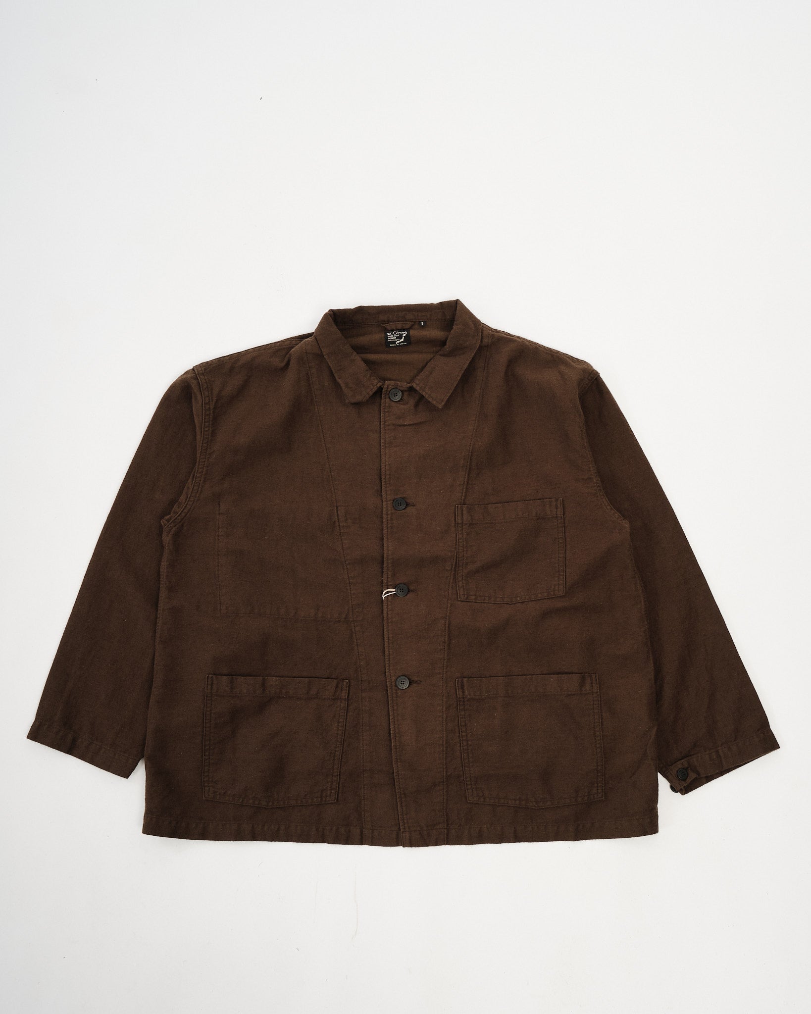 COTTON LINEN MOLESKIN RELAX FIT SIMPLE WORK JACKET COFFEE BROWN
