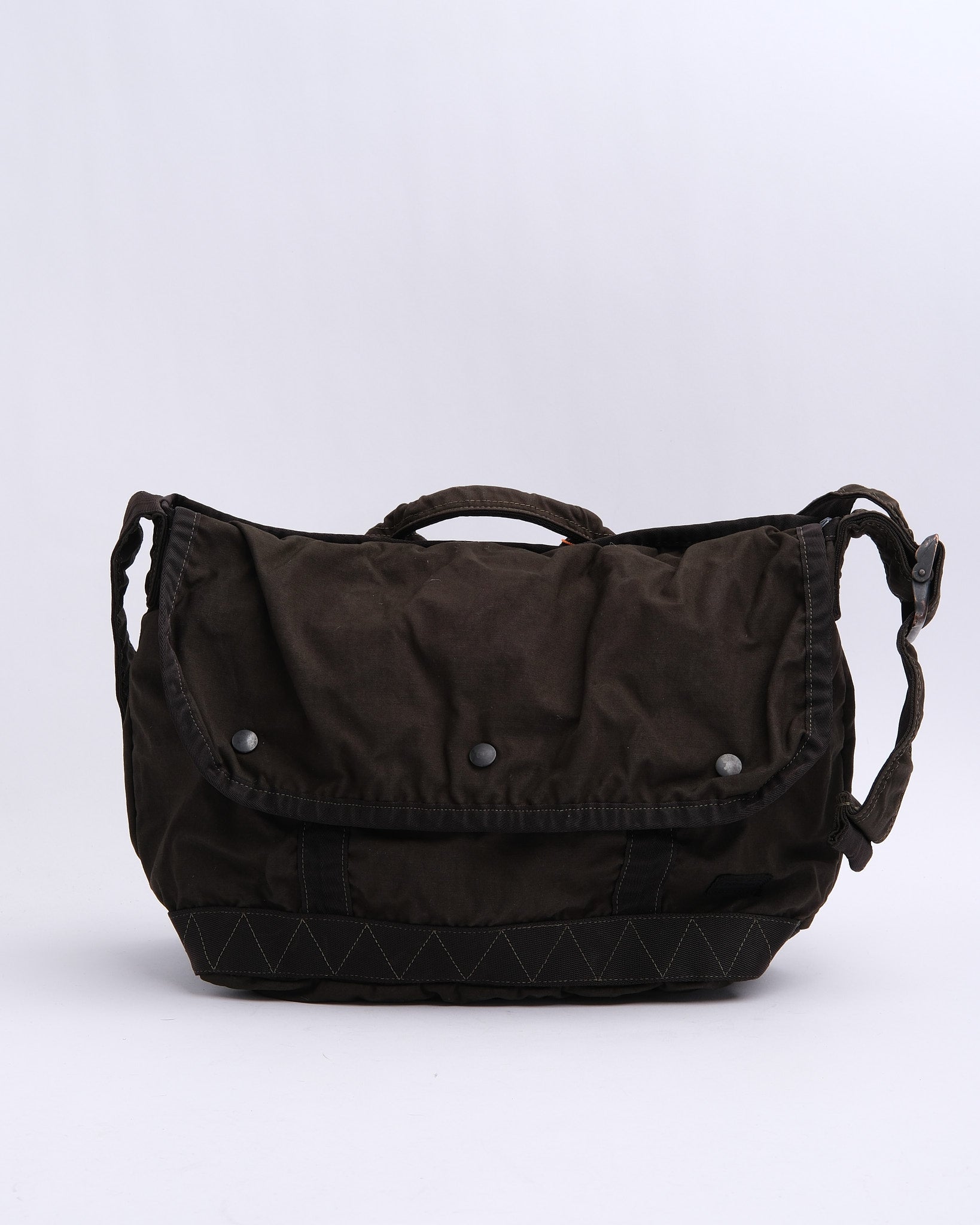 PORTER BY YOSHIDA Crag Messenger Taske (M) i Khaki er en del af PORTER CRAG-serien, kendt for sin karakteristiske produktfarvningsteknik, der producerer en rig dybde af farve og tekstur. Fremstillet af bagsatin stof, en højdensitetsblanding af nylon og bomuld, denne messenger taske har den holdbarhed og tekstur, der gør den bemærkelsesværdig. Den to-bads farvnings-proces sikrer en dyb, flerdimensionel farve, hvilket giver hver taske en unik og levende finish.