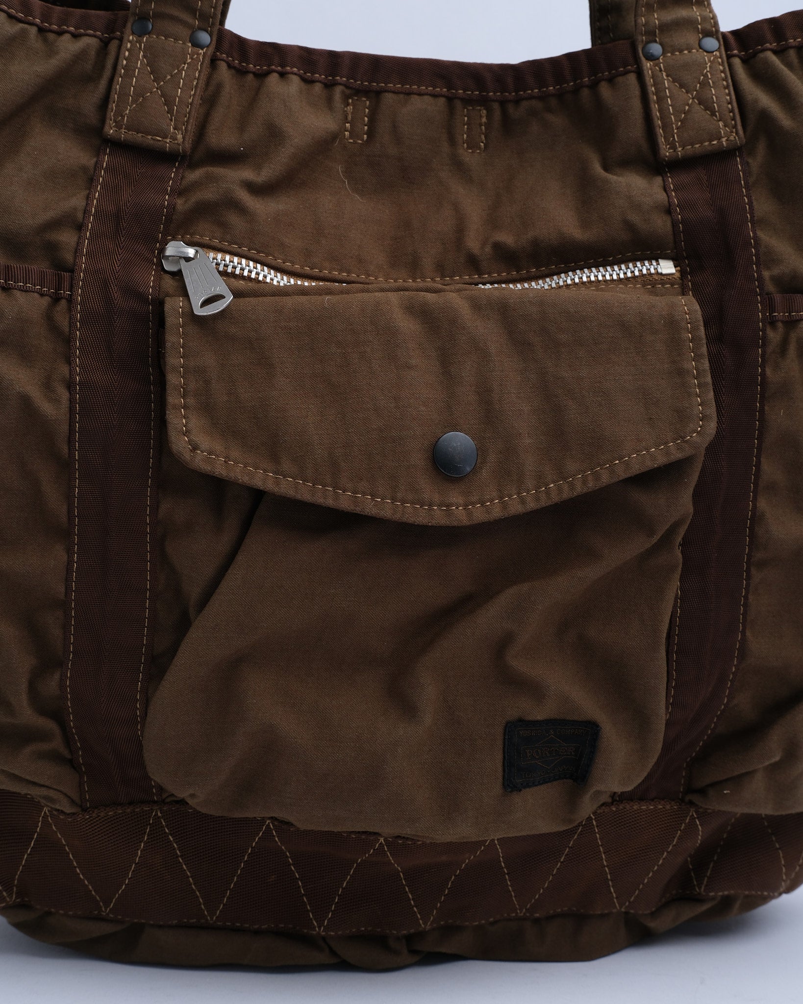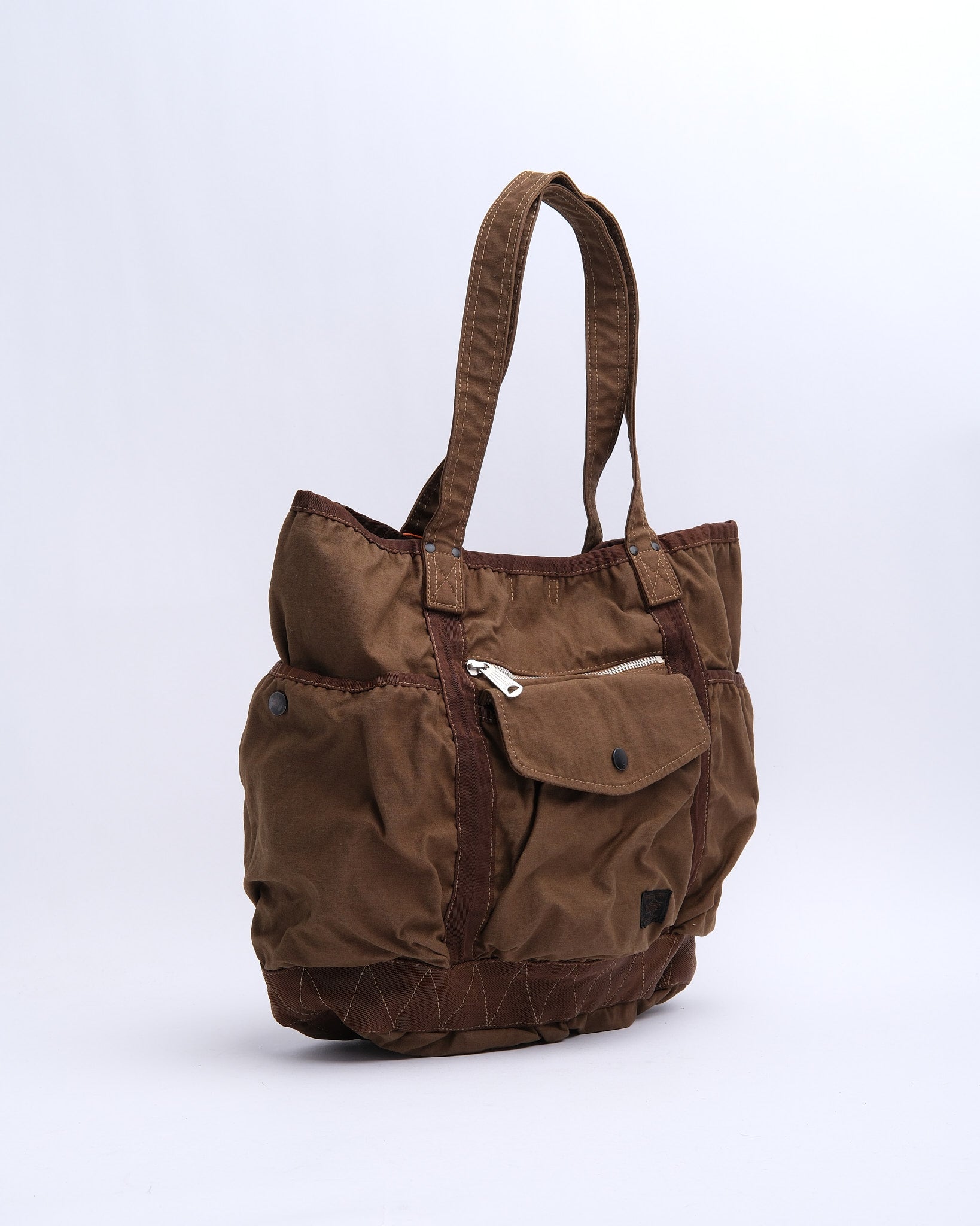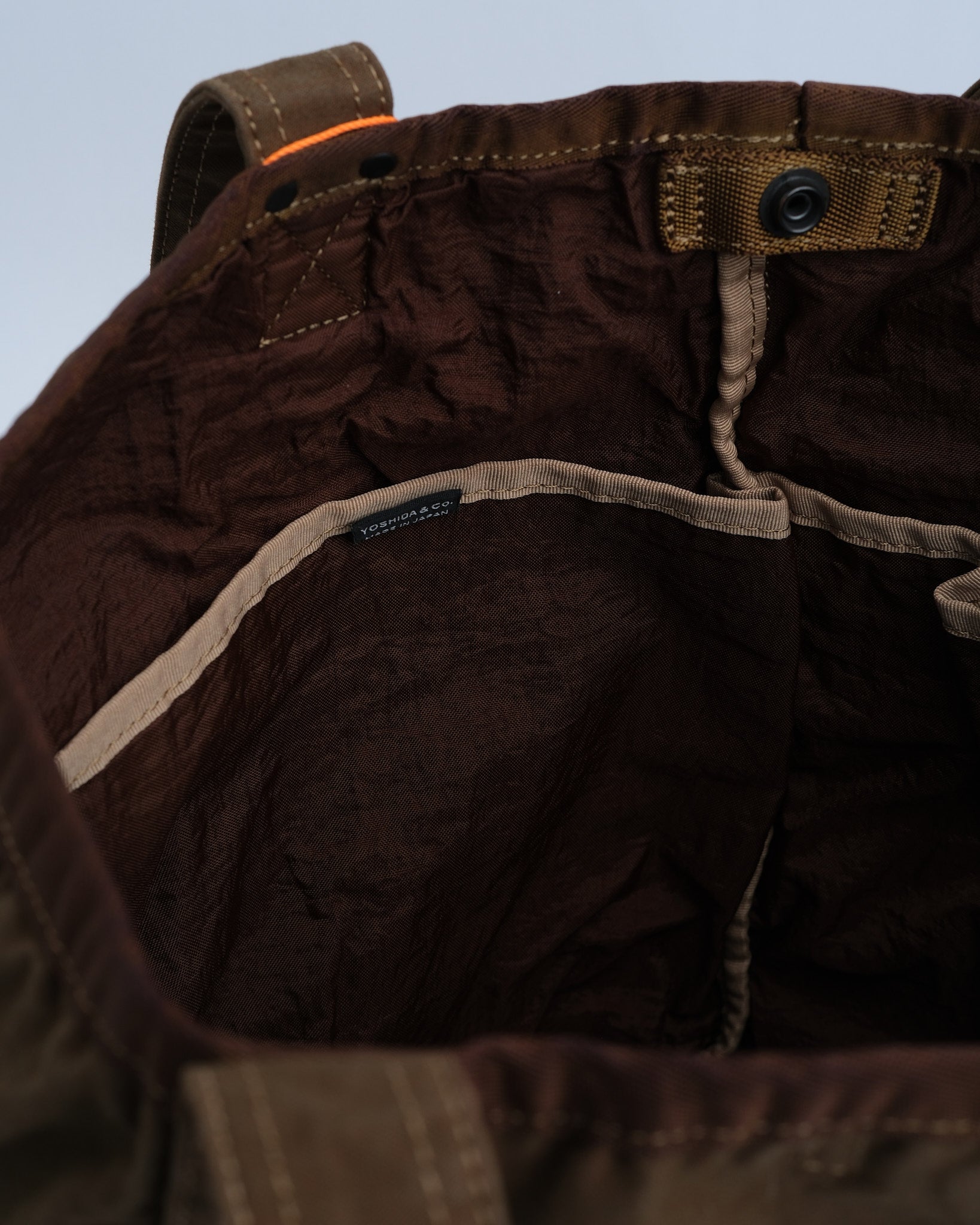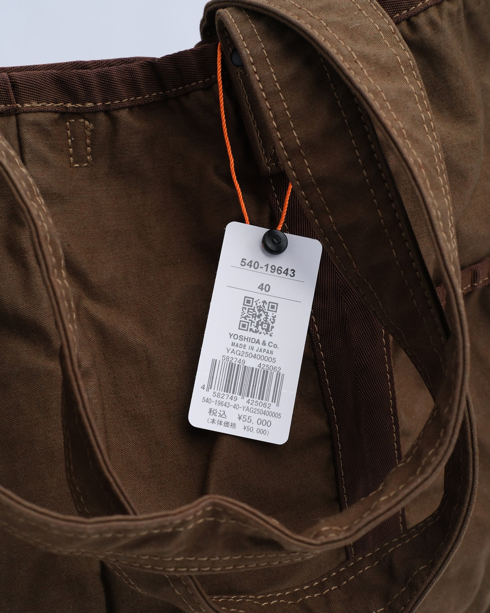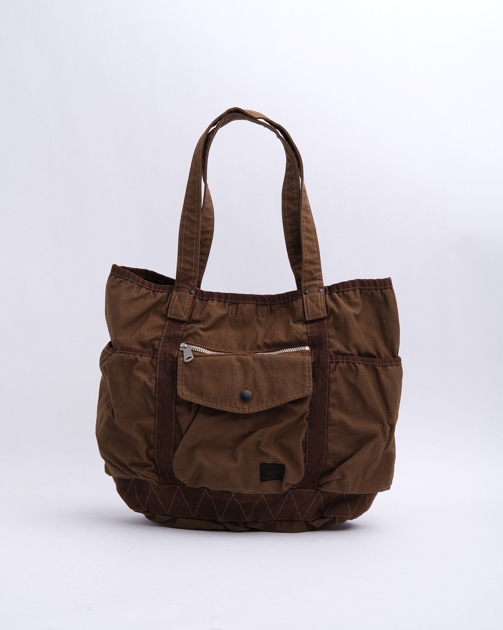 Den PORTER BY YOSHIDA Crag Tote Bag (540-19643-40) er en del af PORTER CRAG serien, kendt for sin unikke produktfarvningsproces, der skaber dybe, rige farver og teksturer. Fremstillet af bagsatin stof, en højdensitetsblanding af nylon og bomuld, er tasken både holdbar og let. Den to-bad farvnings teknik sikrer flerdimensionelle nuancer og naturlige variationer, hvilket gør hver taske unik.