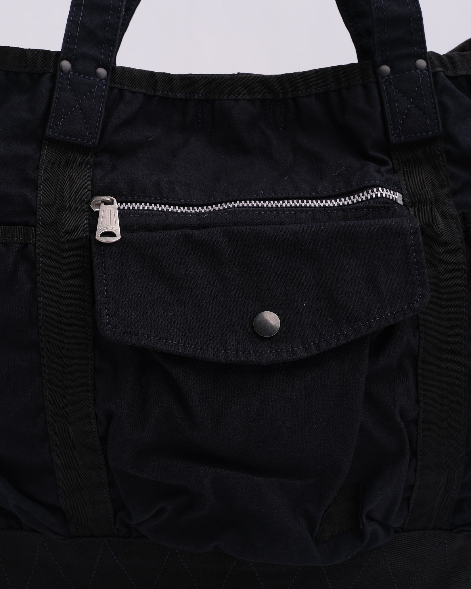 PORTER BY YOSHIDA Crag Tote Bag (540-19643-50) er en del af PORTER CRAG-serien, kendt for sin unikke produktfarvningsproces, der skaber dybe, rige farver og teksturer. Fremstillet af bagsatin stof, en højdensitetsblanding af nylon og bomuld, er tasken både holdbar og let. To-bads farvnings-teknikken sikrer flerdimensionelle nuancer og naturlige variationer, hvilket gør hver taske unik.