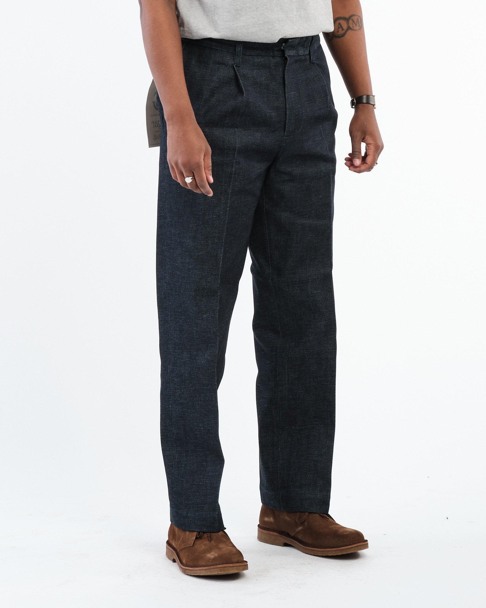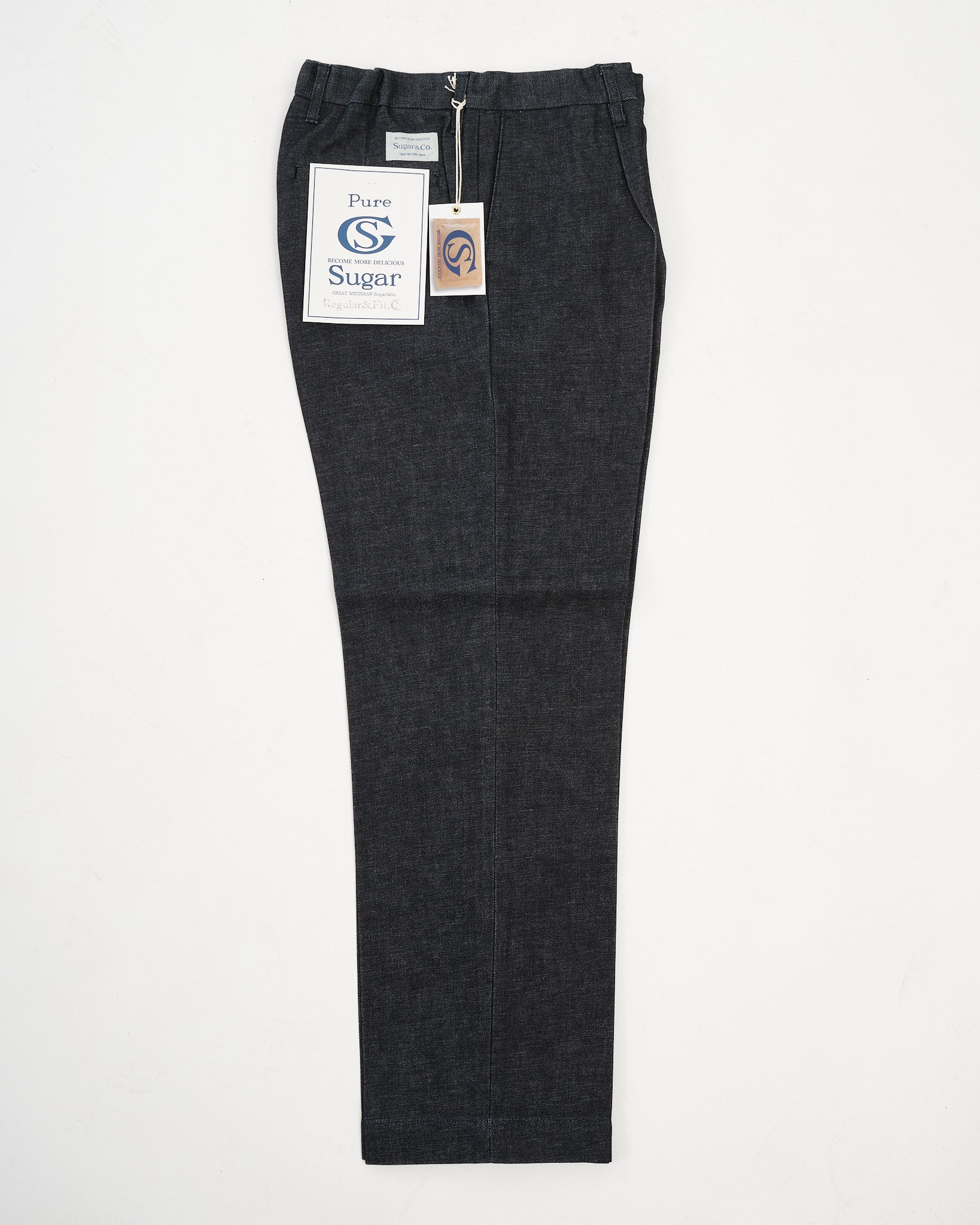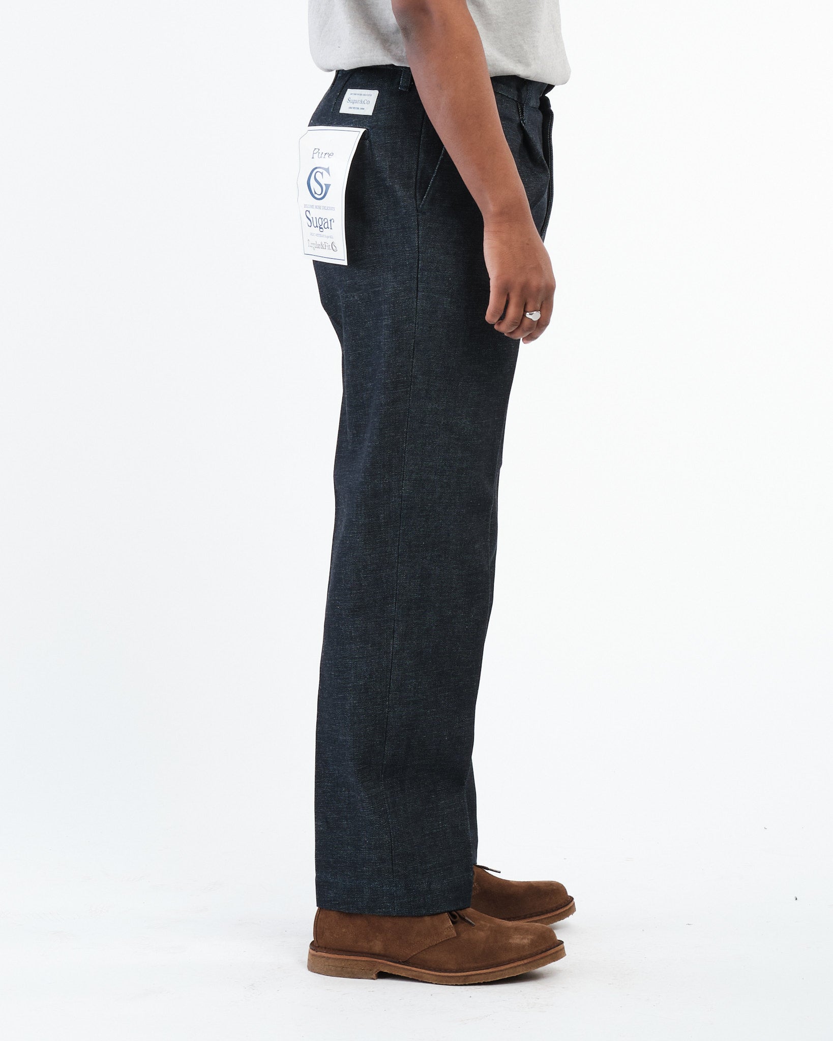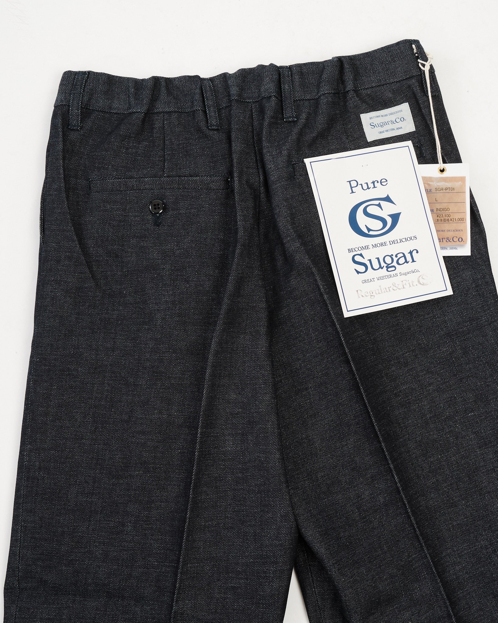 Præsenterer SUGAR & CO. DADDY'S PANTS i en rig Indigo nuance. Disse bukser er en flagskibsmodel fra Sugar & Co., der viser mærkets dedikation til kvalitet og tidløst design. Fremstillet i Japan af 100% amerikansk bomuld, tilbyder stoffet en robust, men tør tekstur, der bliver mere behagelig med tiden. Den dybe indigo farve, opnået ved brug af garner med betydelig variation, sikrer unikke falmnings- og ældningsegenskaber, hvilket tillader bukserne at udvikle en personlig patina over tid.