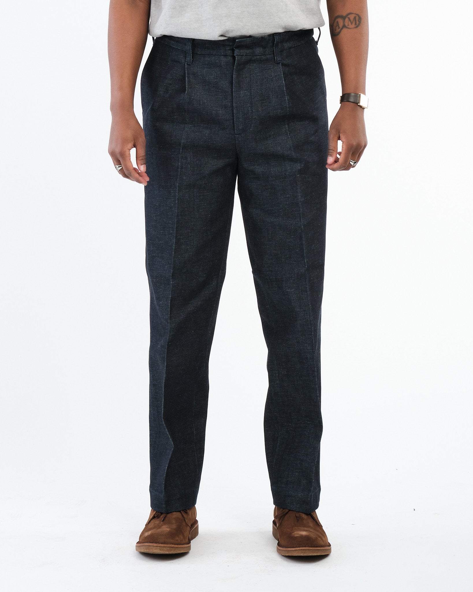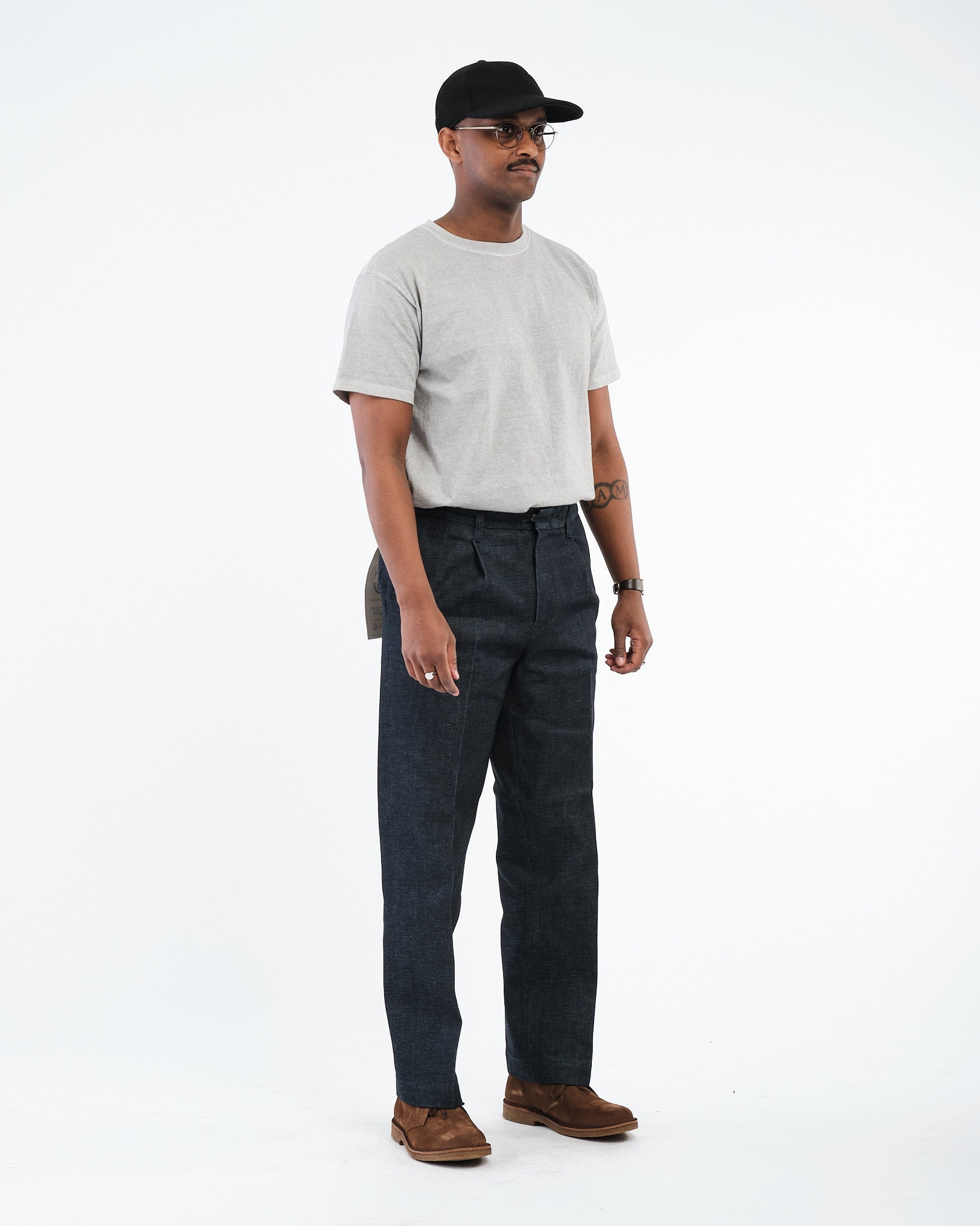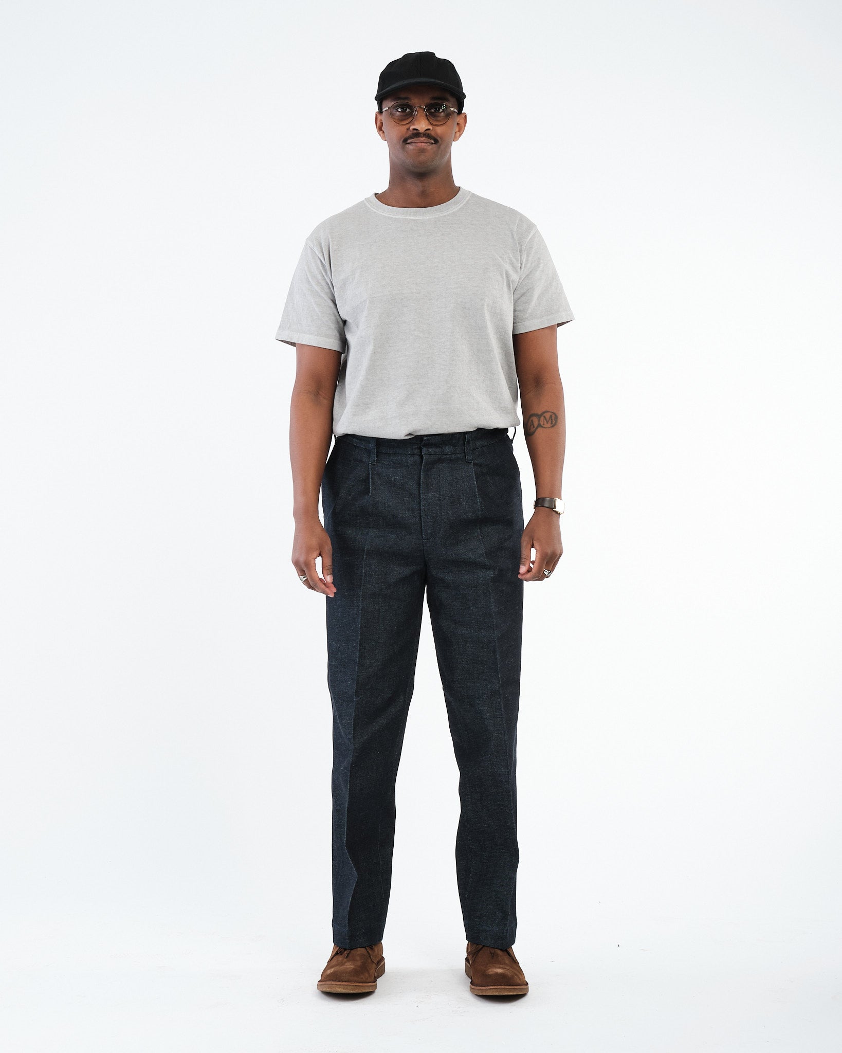 • Dyb indigofarvning – Anvender garn med betydelig variation for unik falming og ældning.