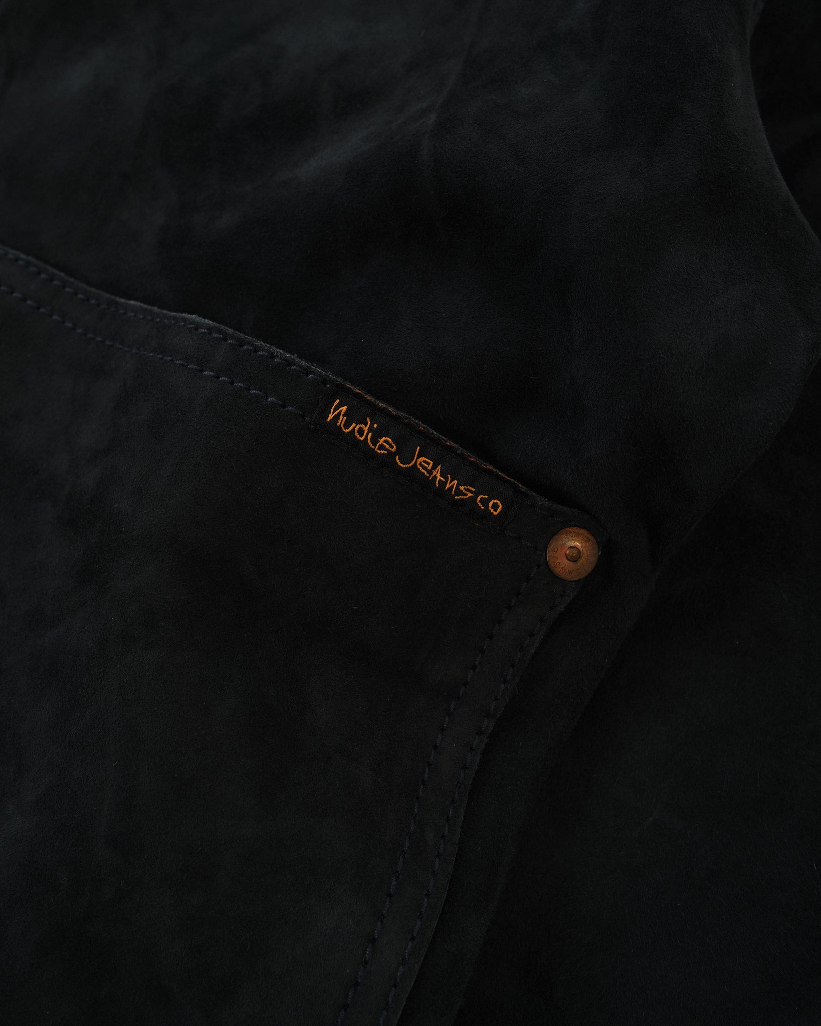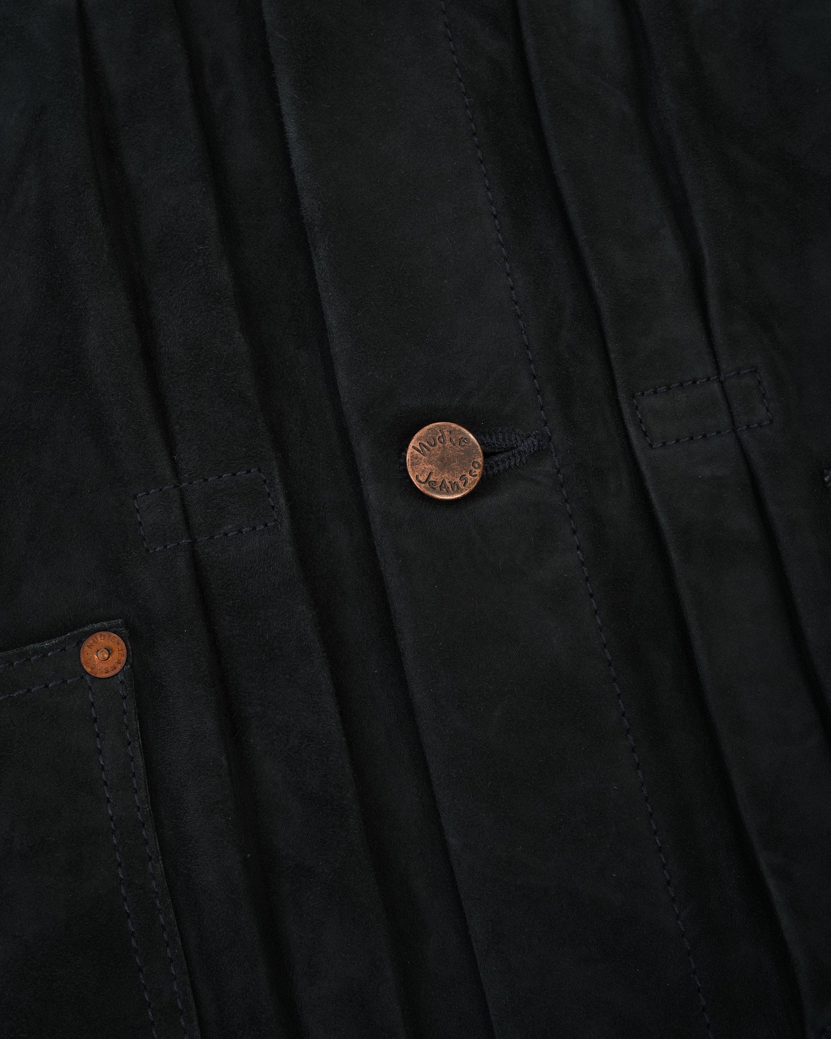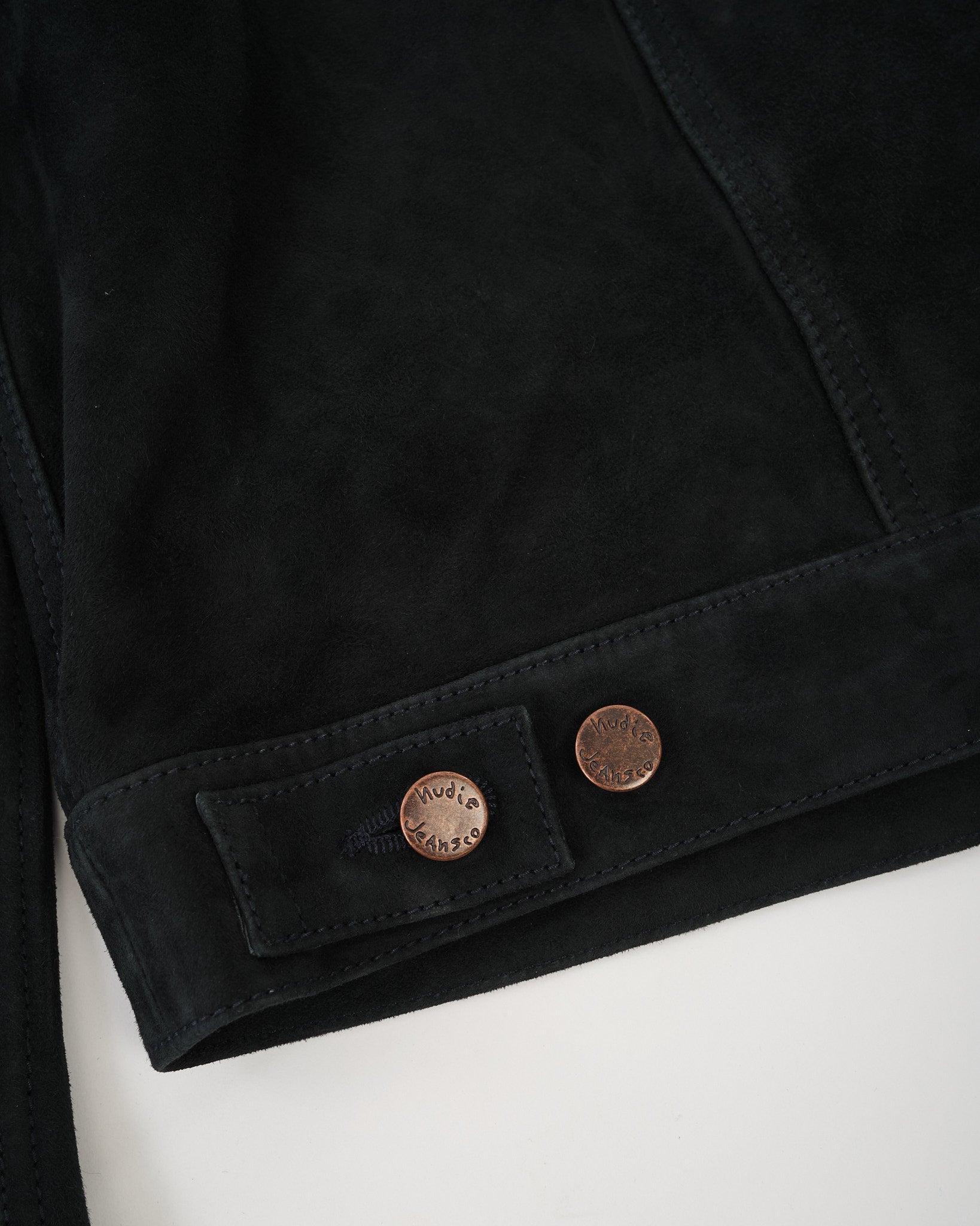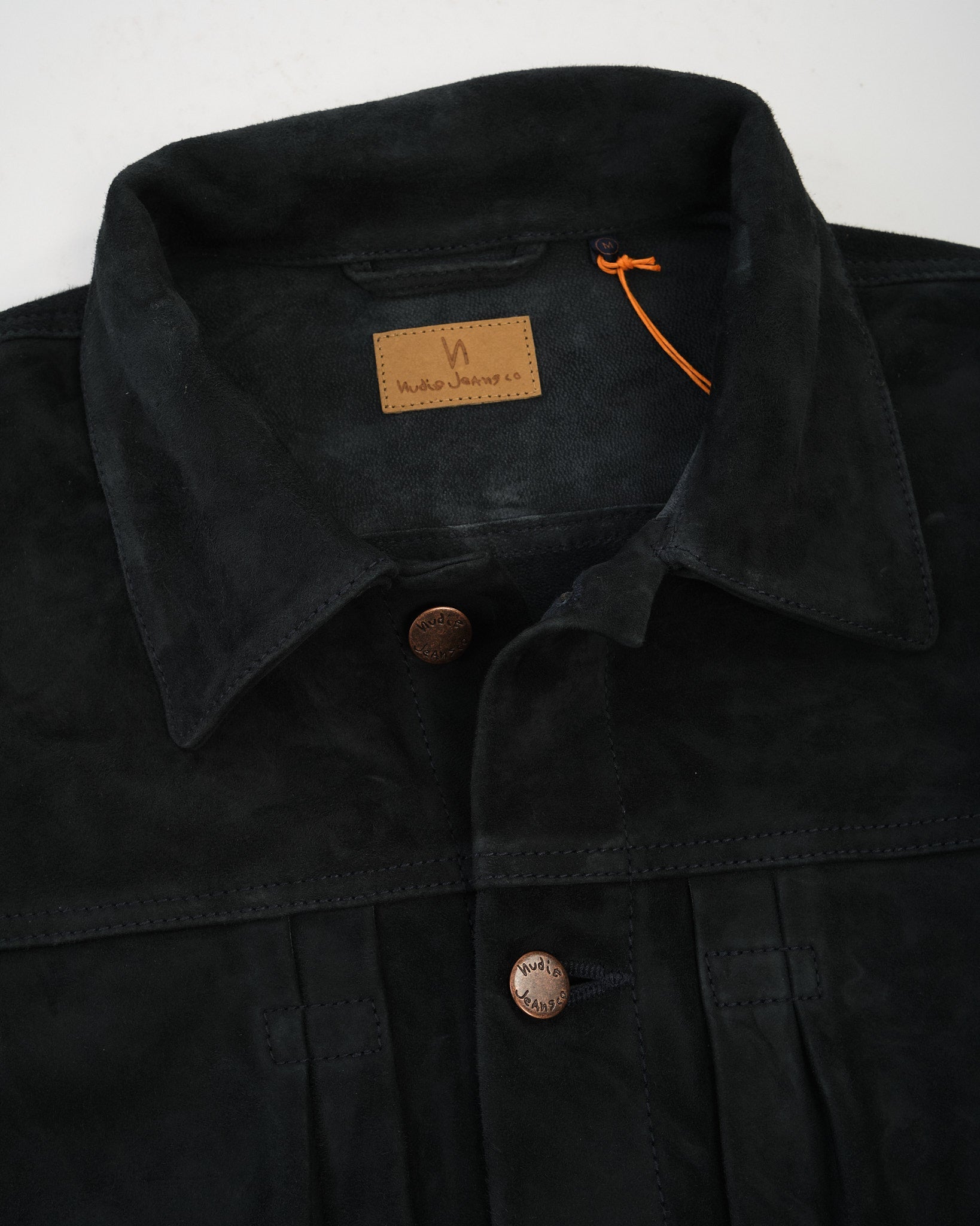 Den NUDIE JEANS CO. DANTE II SUEDE JAKKE NAVY er en raffineret version af den klassiske denimjakkesilhuet, fremstillet af utroligt blødt og smidigt gedeskind. Den mørke, blege blå nuance forstærker ruskindets rige tekstur og giver det et ubesværet sofistikeret udseende.