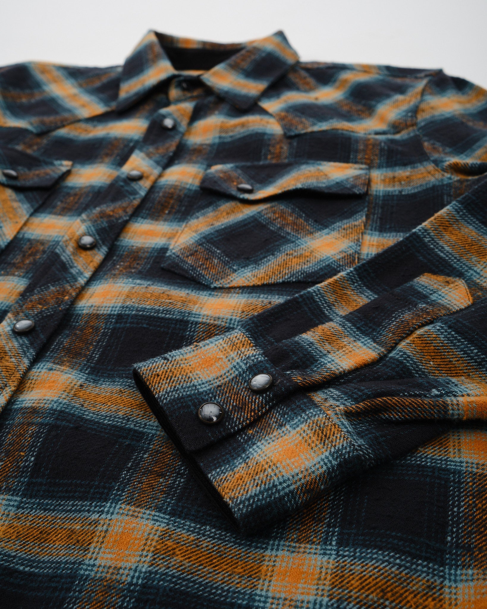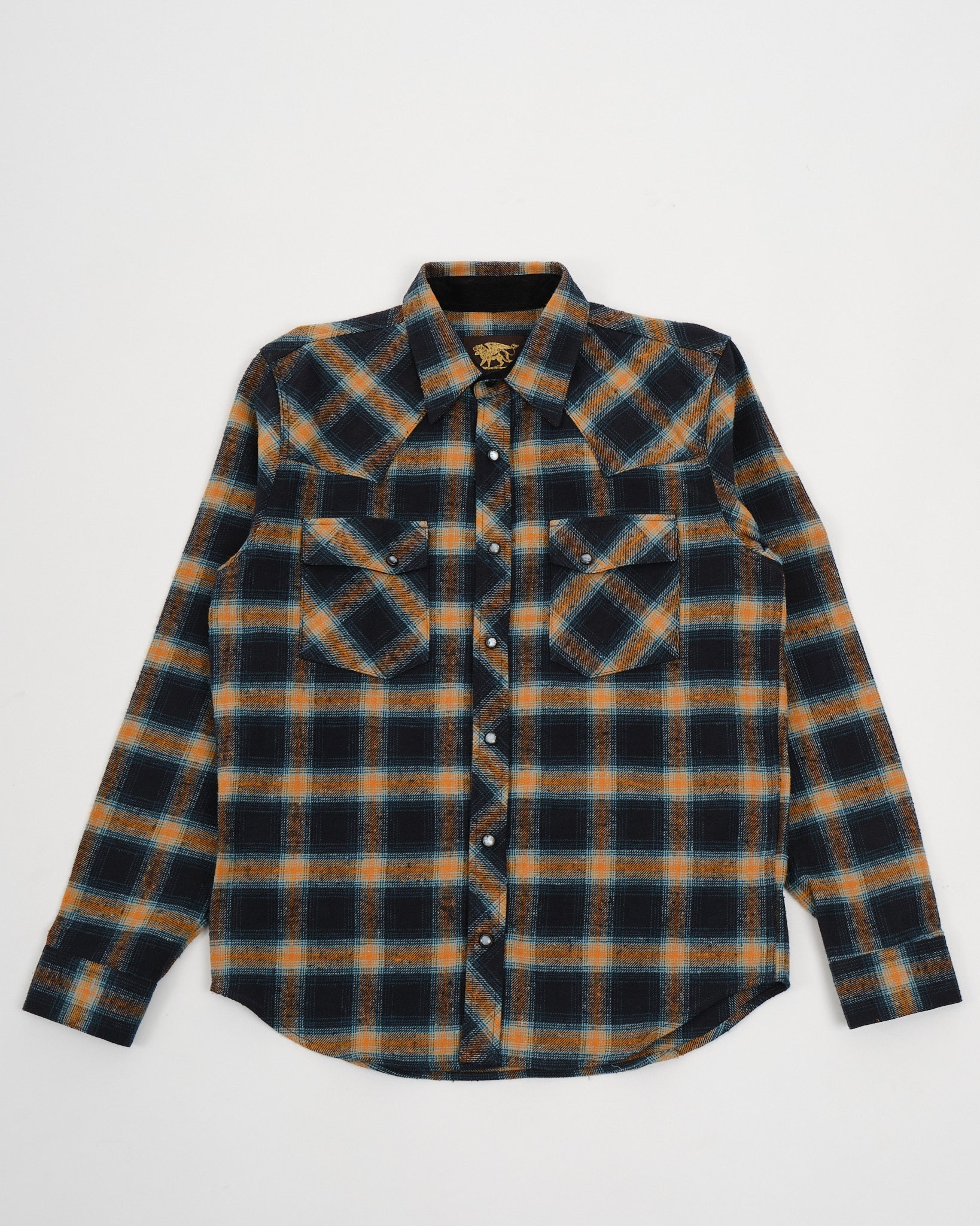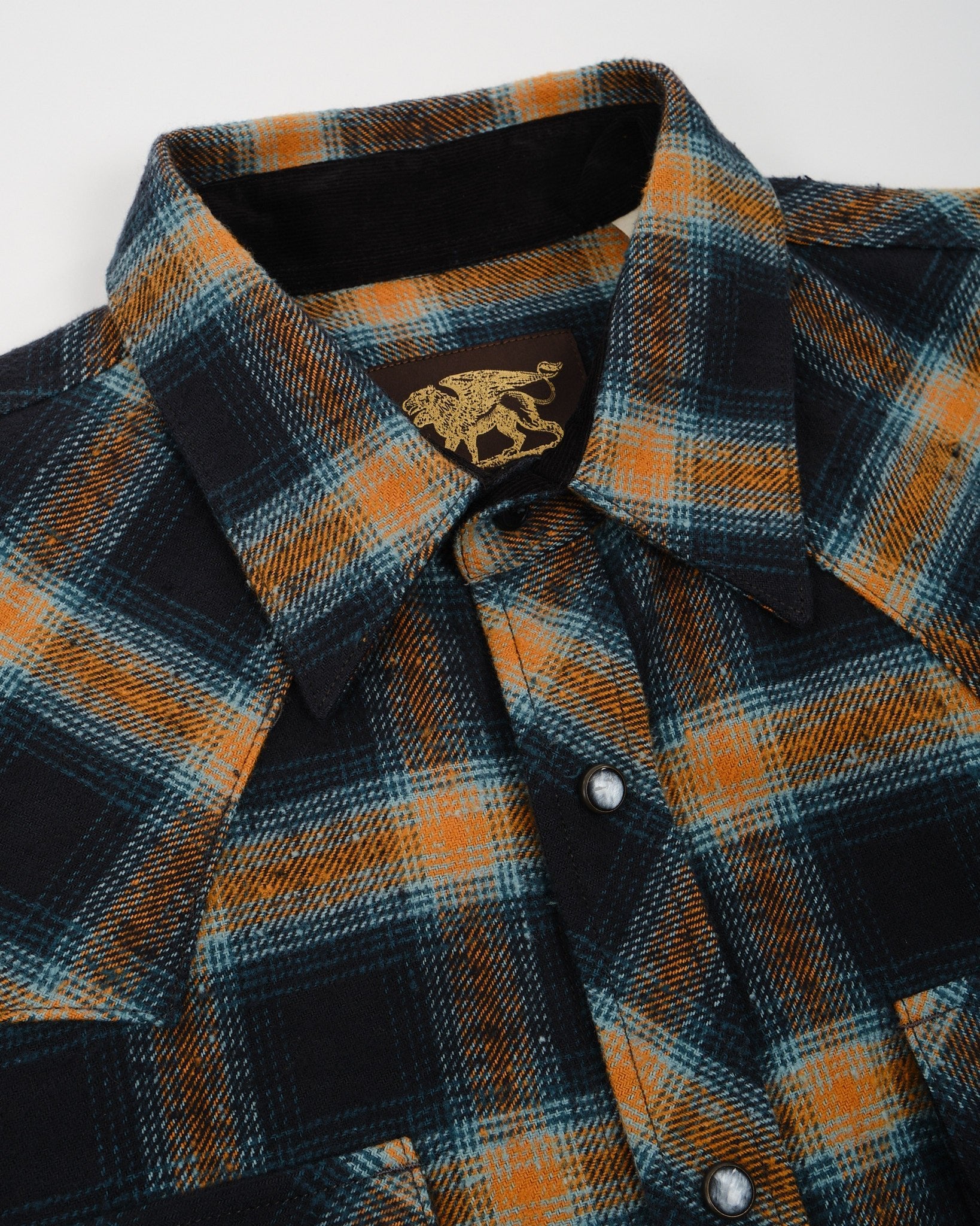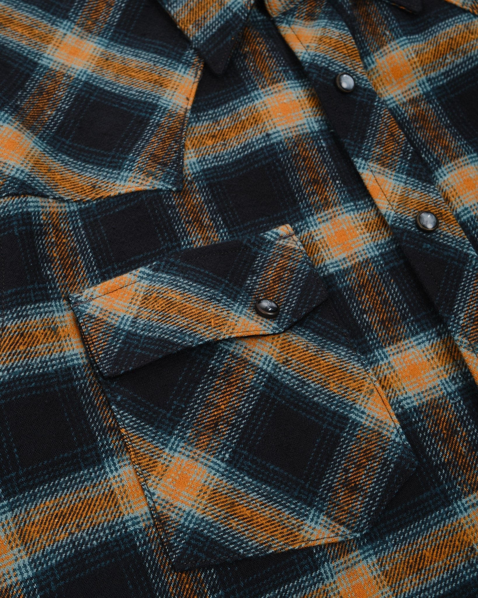 Dawson Flannel Black/Petrol/Rust Check fra Indigofera Jeans.