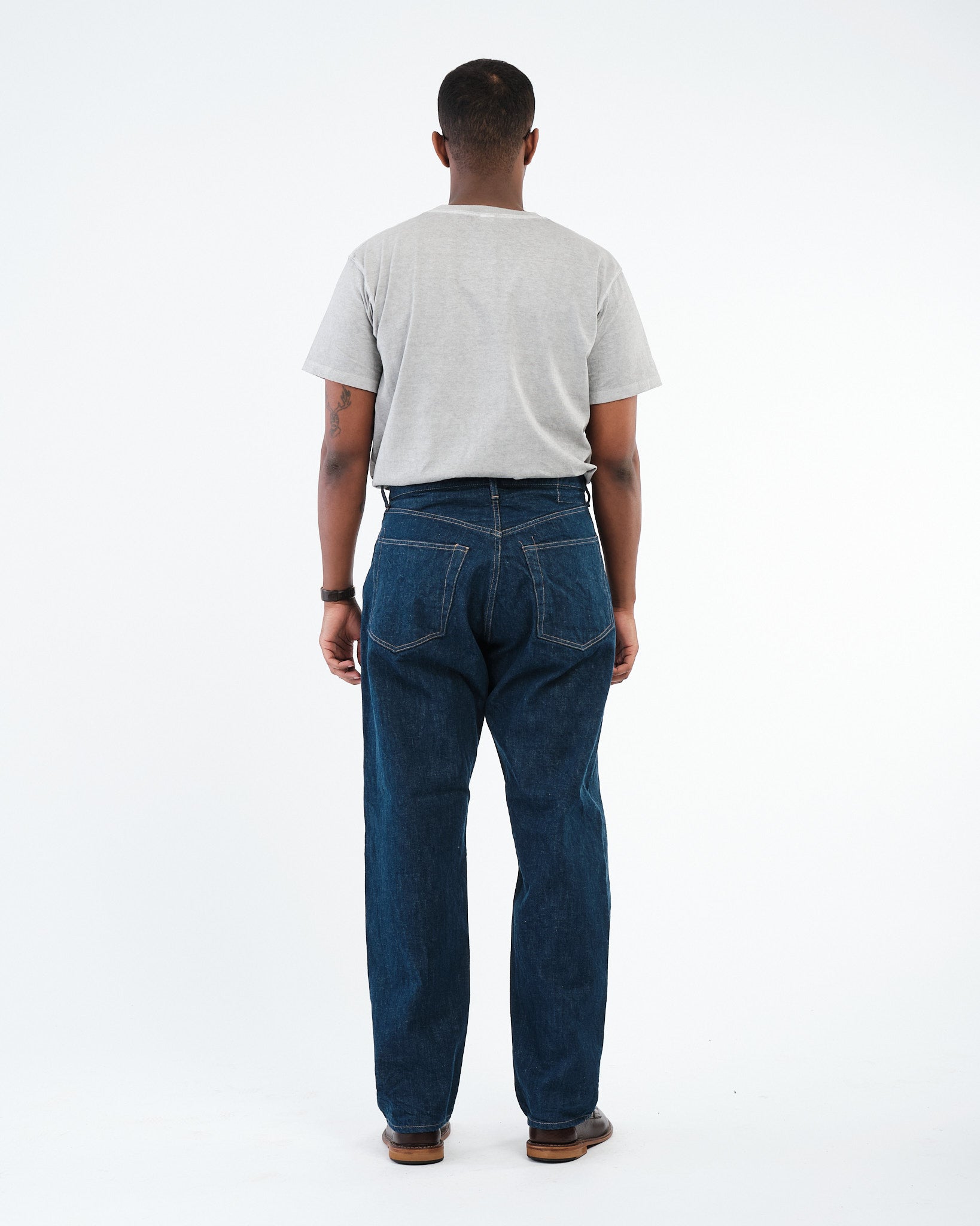 Disse 5-lomme denim bukser er en hyldest til de dybe rødder i japansk indigo håndværk. Fremstillet af selvkant denim vævet på vintage skyttelvæve, har stoffet garn farvet med naturligt fermenteret “Sukumo Ai” indigo, dyrket og forarbejdet af det legendariske Watanabe værksted i Tokushima, Japan. Fra dyrkning og høst af indigoplanten til fermentering og håndfarvning af garnet, er denne traditionelle proces en del af en kulturel arv, der fortjener at blive bevaret for fremtidige generationer.