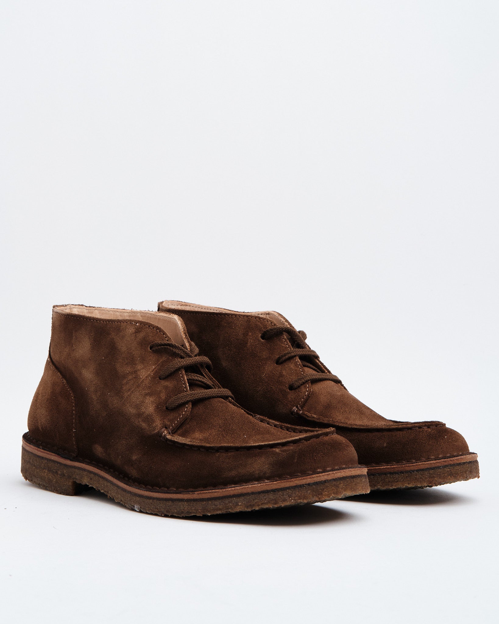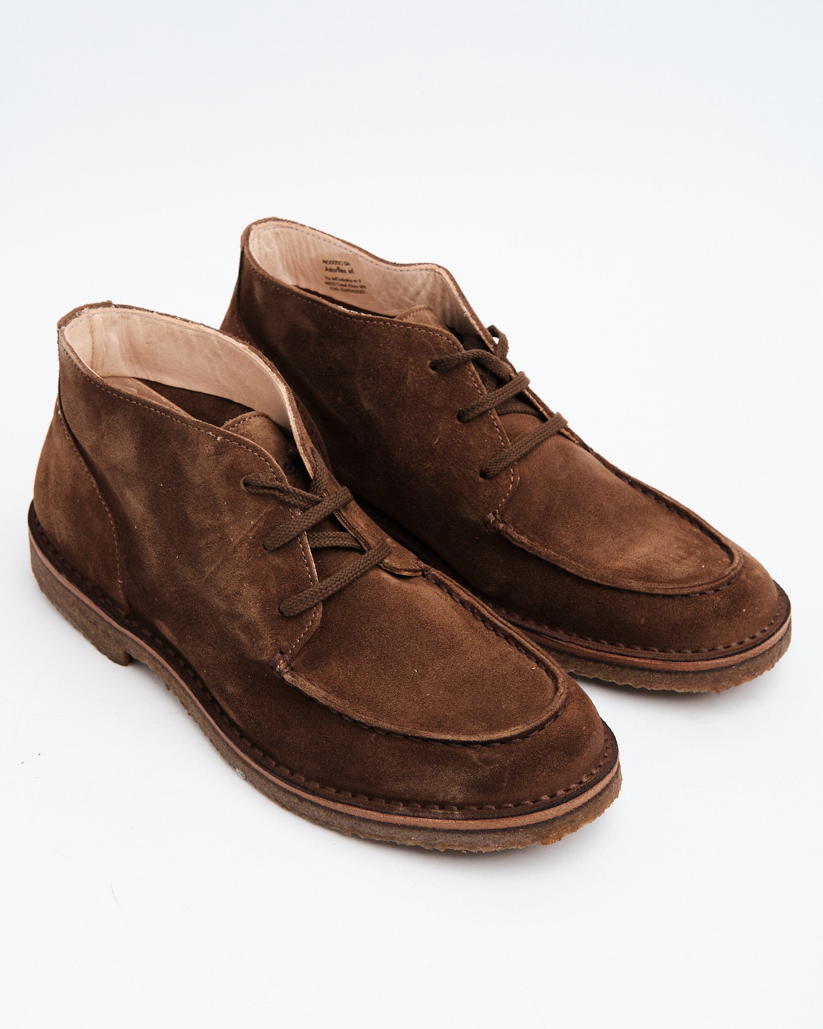 Mærke: Astorflex Stilnavn: Deukeflex Chukka Boot Farve: Mørk Khaki Materiale: Blødt ruskindsoverlæder fra Toscana Fremstilling: Håndlavet i Italien Design: Elastiske sidepaneler for nem påføring Sål: Fuldt kreppet gummisål for polstring og trækkraft Interiør: Læderfor og fodseng for øget komfort Bæredygtighed: Fremstillet med vegetabilsk garvede læder og miljøvenlige materialer Alsindighed: Velegnet til både afslappede og semi-formelle lejligheder