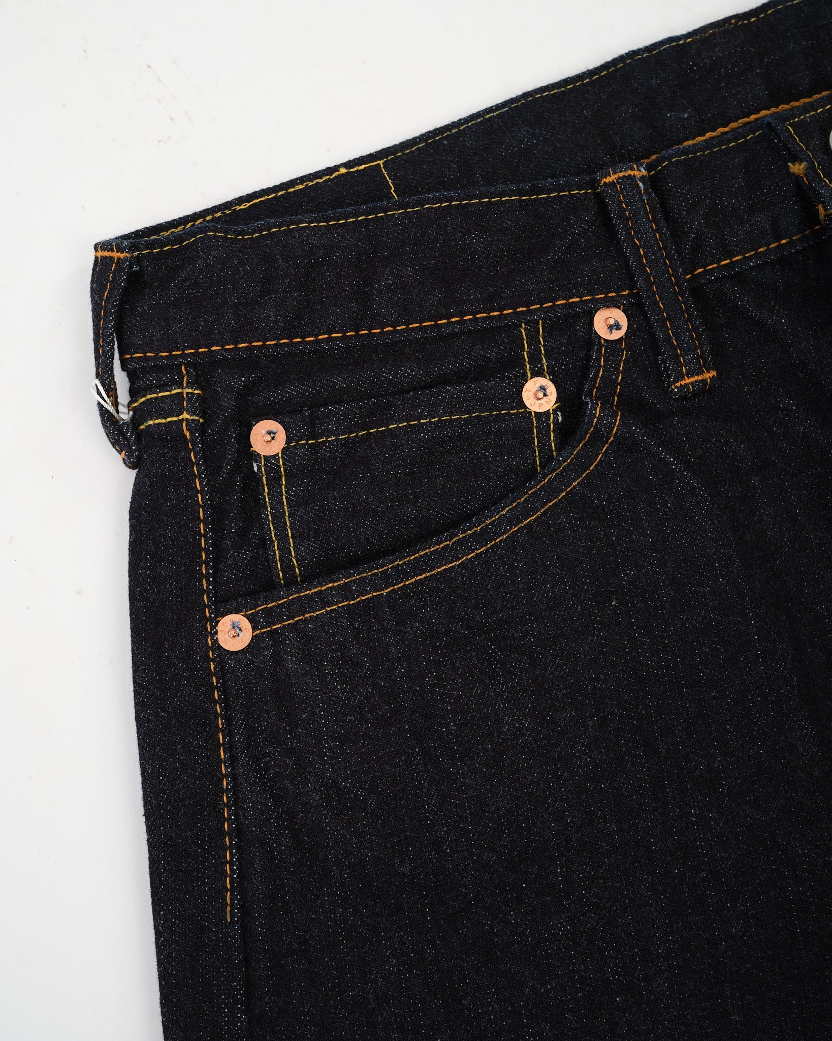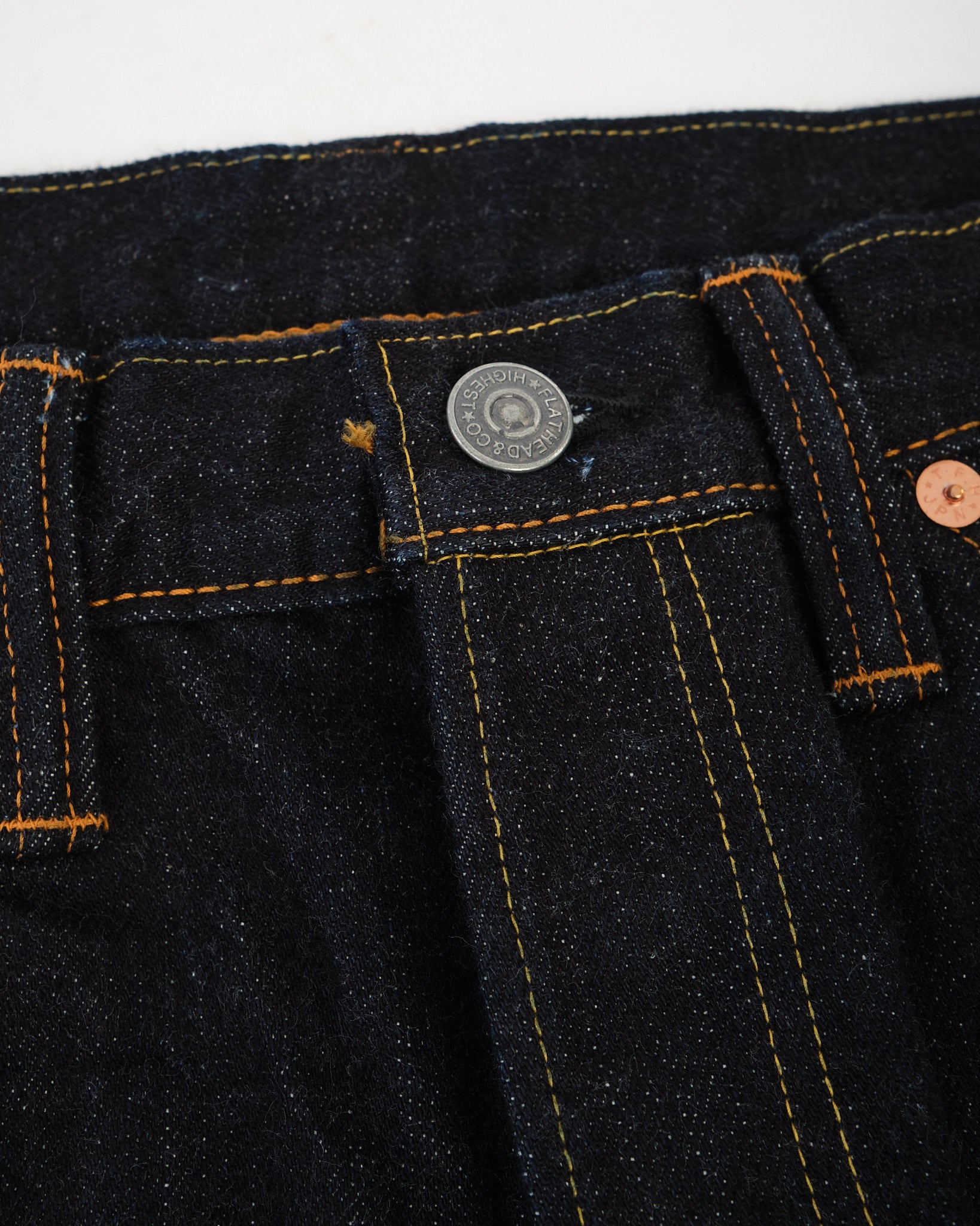 • 14,5 oz selvedge denim, vævet på traditionelle skyttevæve
