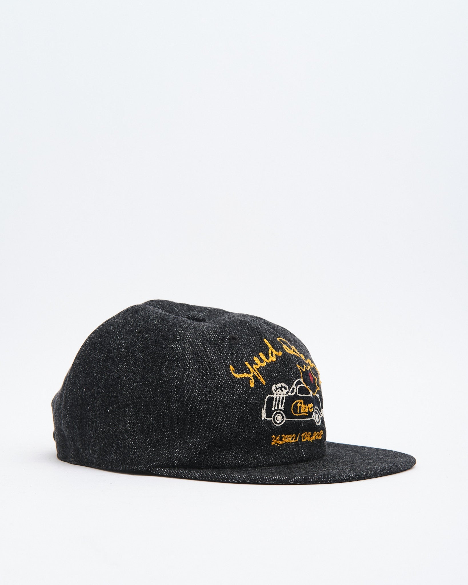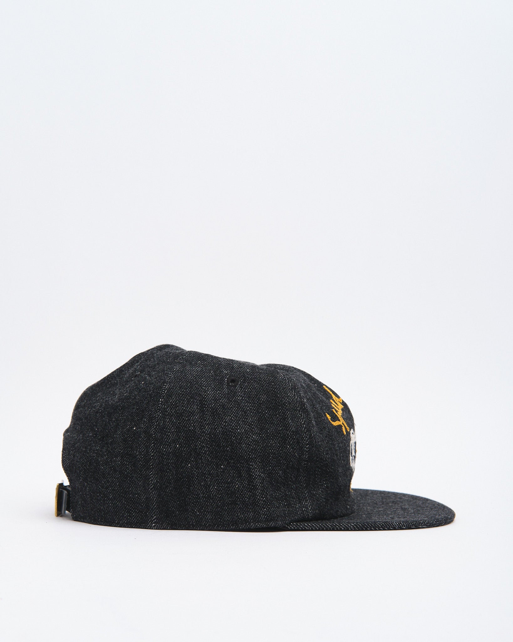 Den FLAT HEAD FN-HC008 Denim Tracker Cap er en omhyggeligt udformet kasket, der kombinerer klassisk arbejdstøjæstetik med førsteklasses japansk denimhåndværk. Fremstillet af højkvalitets sort denim, tilbyder denne kasket holdbarhed, struktur og et tidløst robust udseende.