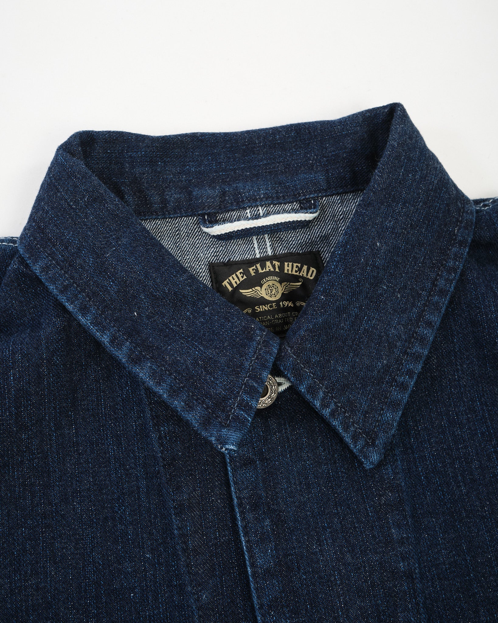 Construction details underline The Flat Head’s uncompromising approach to craftsmanship. Rolled stitching reinforces the main seams, while iron donut buttons add durability and period-correct character. Finished with a one-wash treatment, this coverall offers dependable comfort and a balanced fit straight off the rack—built to be worn hard and appreciated for years to come.
