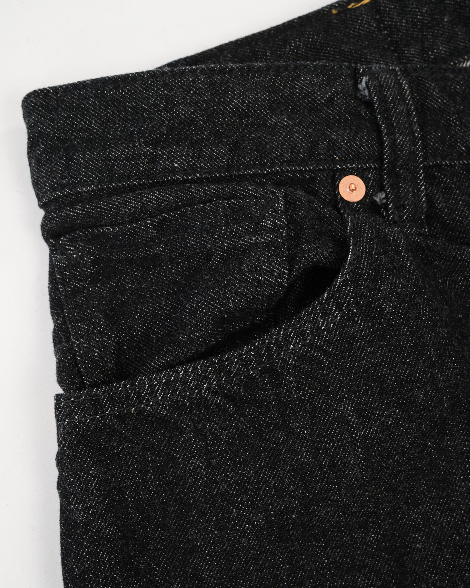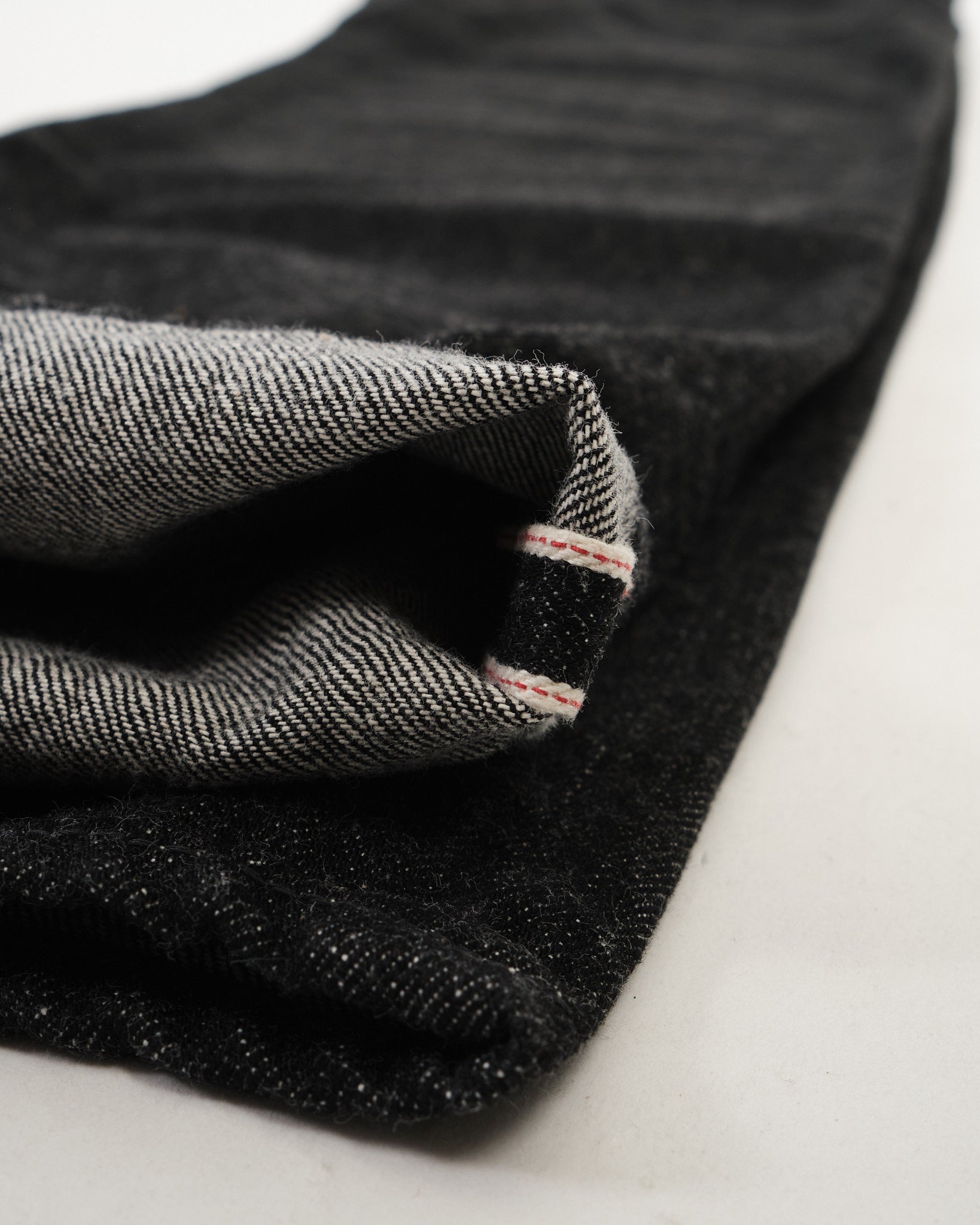 • 12,5 oz sort selvedge denim, vævet på traditionelle shuttle vævstole