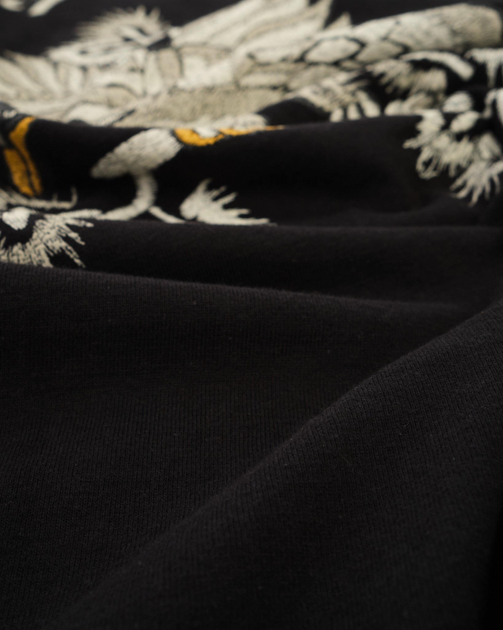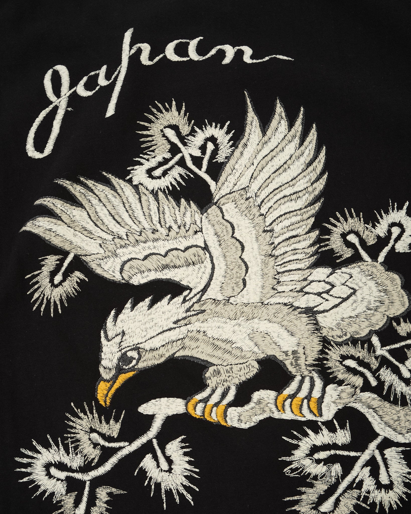 The Flat Head brings its iconic Sukajan-inspired “Eagle” motif to this THC Series T-shirt, combining bold Japanese artistry with heritage craftsmanship. The detailed foam print captures the texture and depth of real embroidery, giving the design a striking three-dimensional feel.