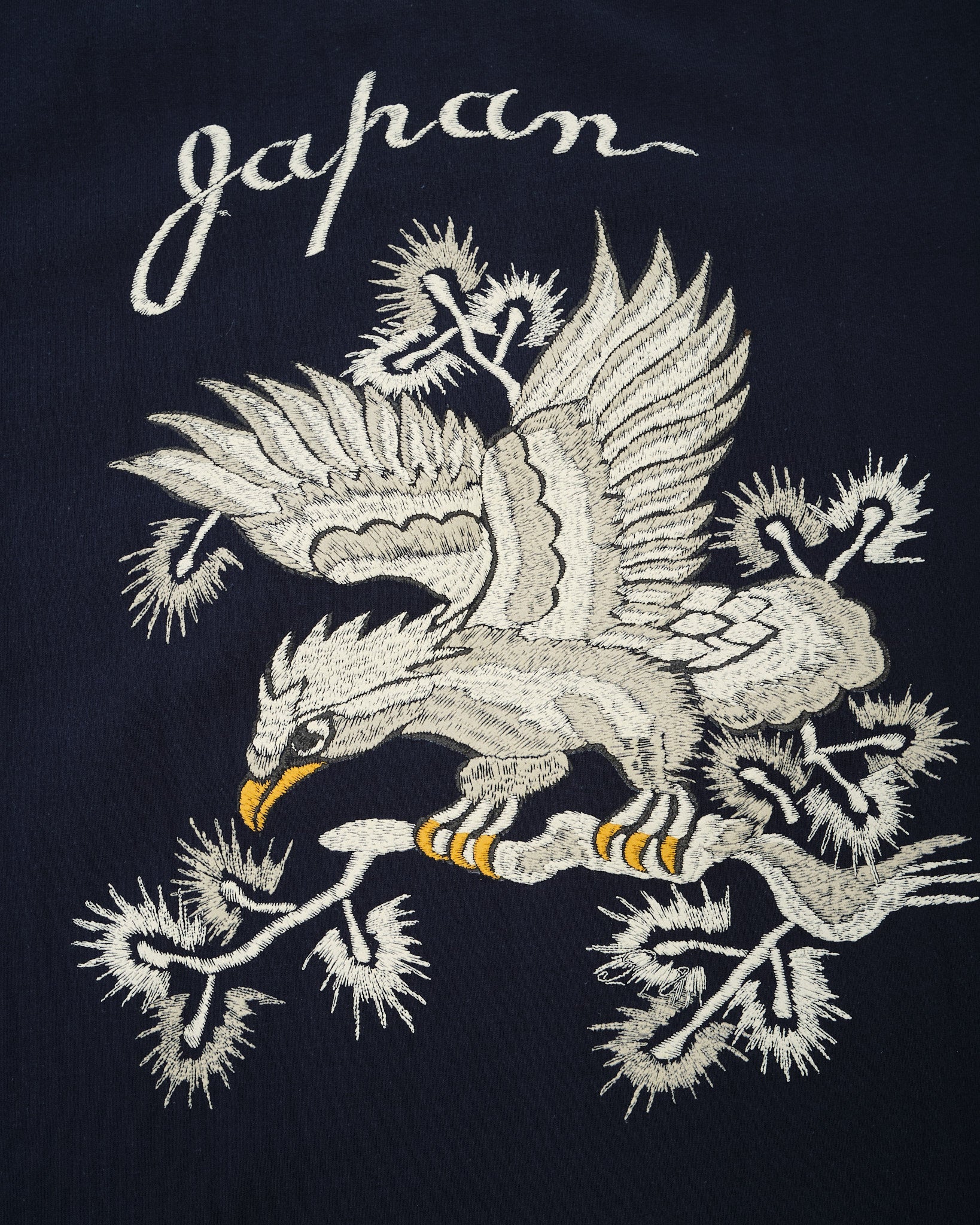 A tribute to Japan’s legendary Sukajan culture, this Flat Head T-shirt features the brand’s iconic “Eagle” motif — a striking print that mimics the depth and dimension of real embroidery. Made from Flat Head’s signature THC Series body, it’s tightly woven from 100% cotton in a tubular construction that resists twisting and feels substantial yet breathable.