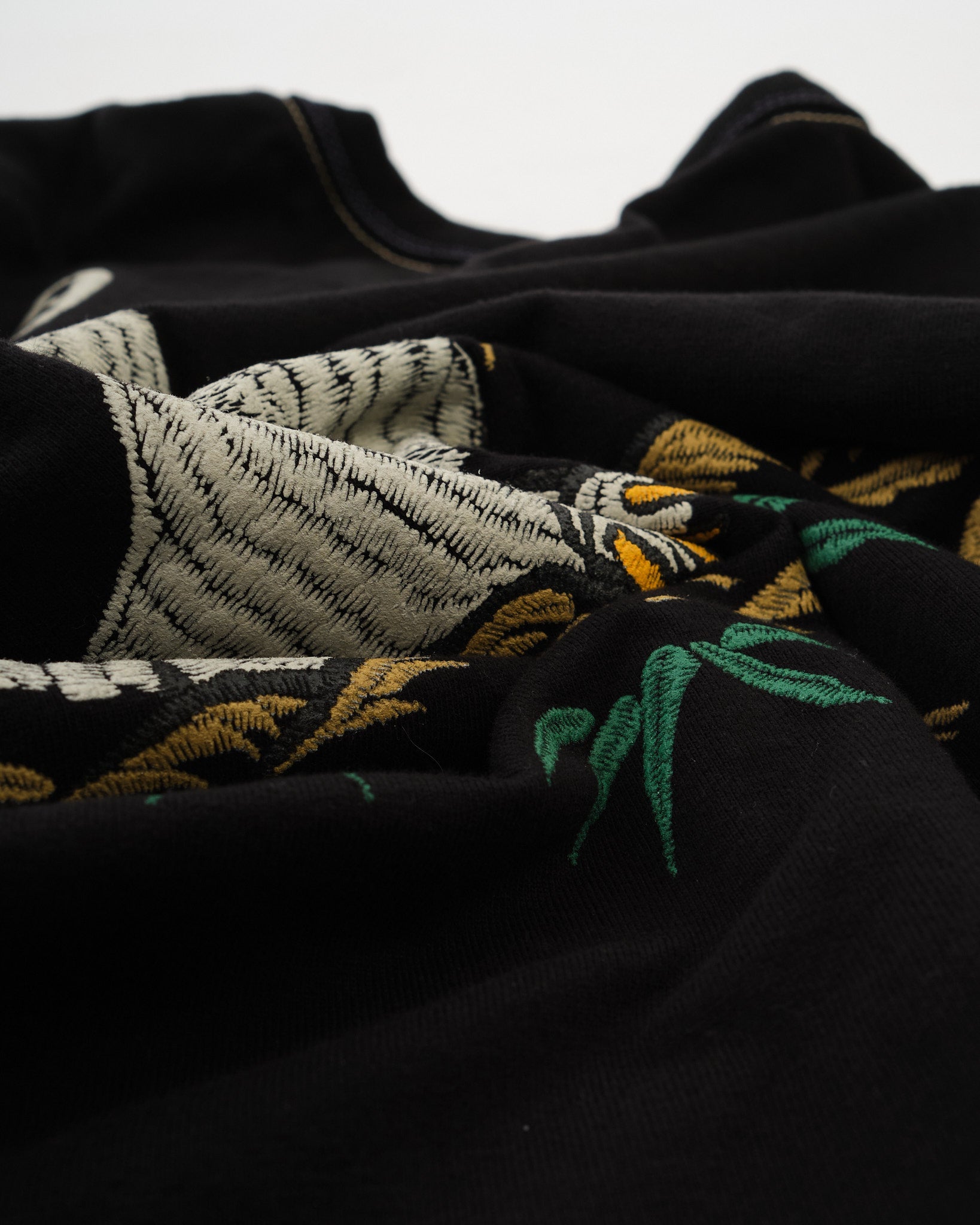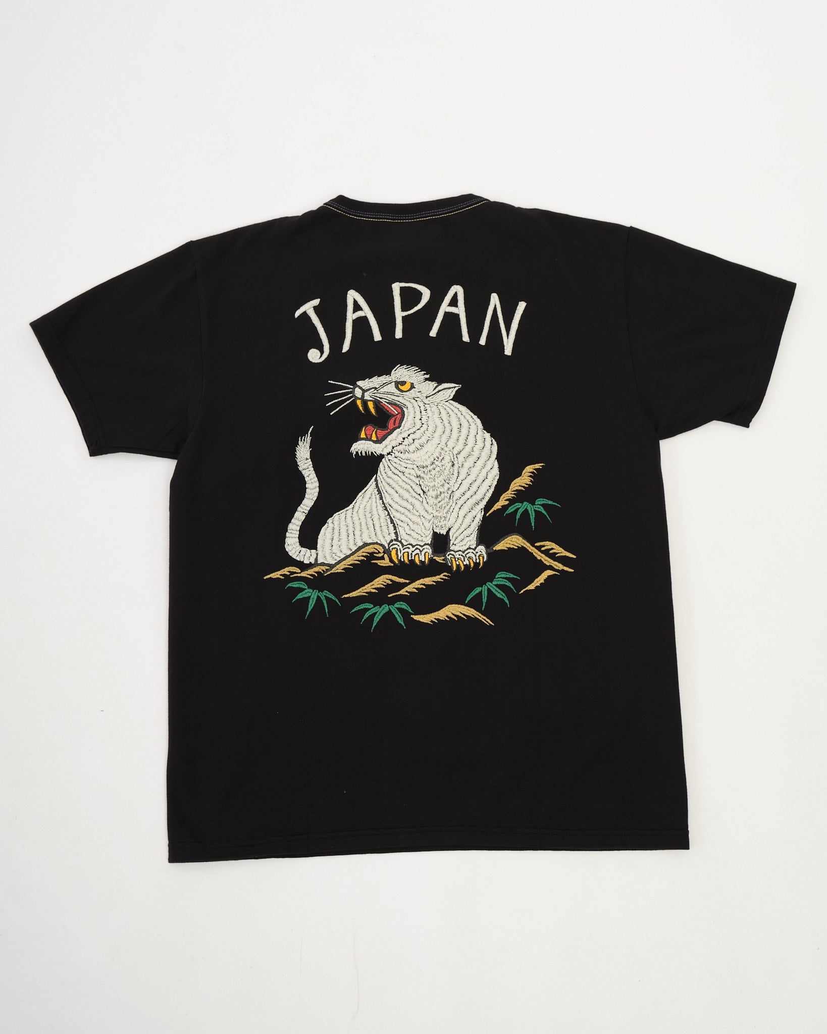 The FLAT HEAD FN-THC-060SP Tiger SS T-Shirt er fremstillet til ekstraordinær holdbarhed og komfort, med et modigt tigerprint, der inkarnerer japansk håndværk og arvæstetik. Lavet af 100% ren bomuld, tilbyder dette 9.7oz kraftigt stof en struktureret fornemmelse, sikrer langvarig brug samtidig med at udvikle en unik karakter over tid.